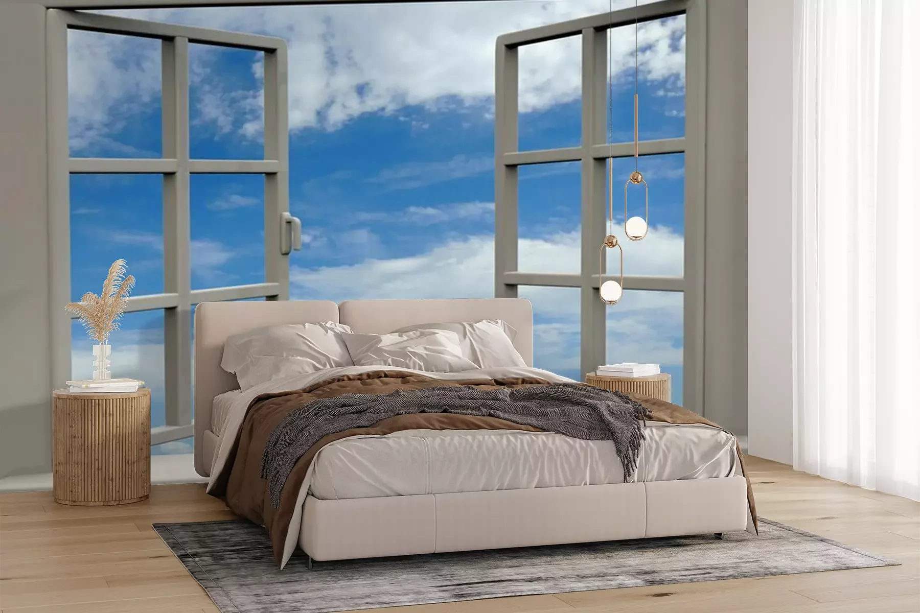 Het materiaal Premium+ is een gestructureerd vinyl op vlies met een gewicht van 255 g/m², dat kleine oneffenheden in de muur effectief camoufleert. De subtiele structuur van fijn zand geeft het oppervlak een exclusieve uitstraling, terwijl de halfmatte afwerking de diepte van de kleuren benadrukt. Het materiaal is dampdoorlatend, waardoor het ook in de keuken en badkamer kan worden gebruikt. De maximale breedte van één baan bedraagt 100 cm – bij grotere afmetingen wordt het fotobehang in meerdere gelijke banen verdeeld. De lijm wordt direct op de muur aangebracht en het behang wordt rand-aan-rand geplakt, wat zorgt voor een esthetisch resultaat zonder zichtbare naden. Het oppervlak kan gemakkelijk worden schoongemaakt door het voorzichtig af te nemen met een vochtige doek.