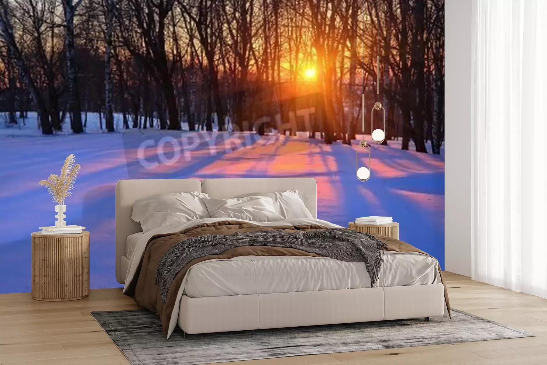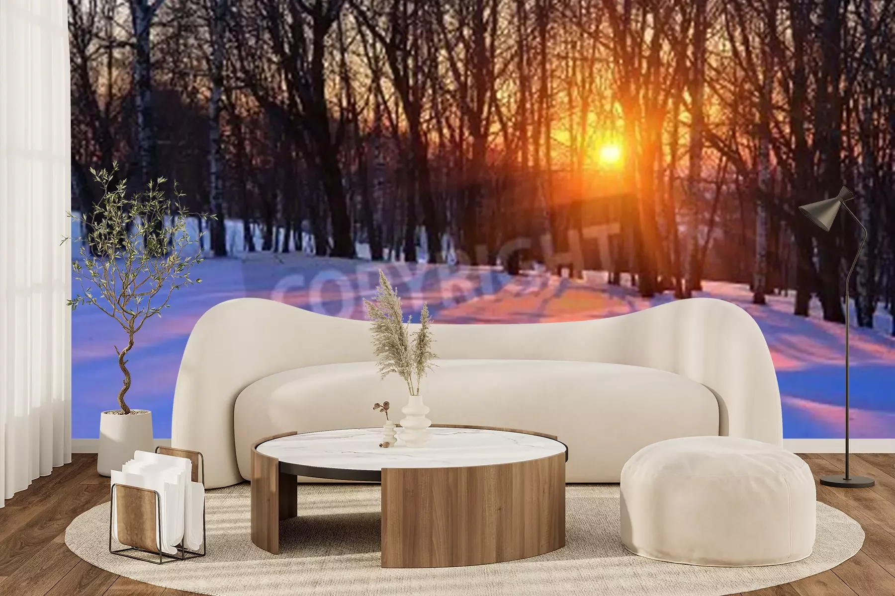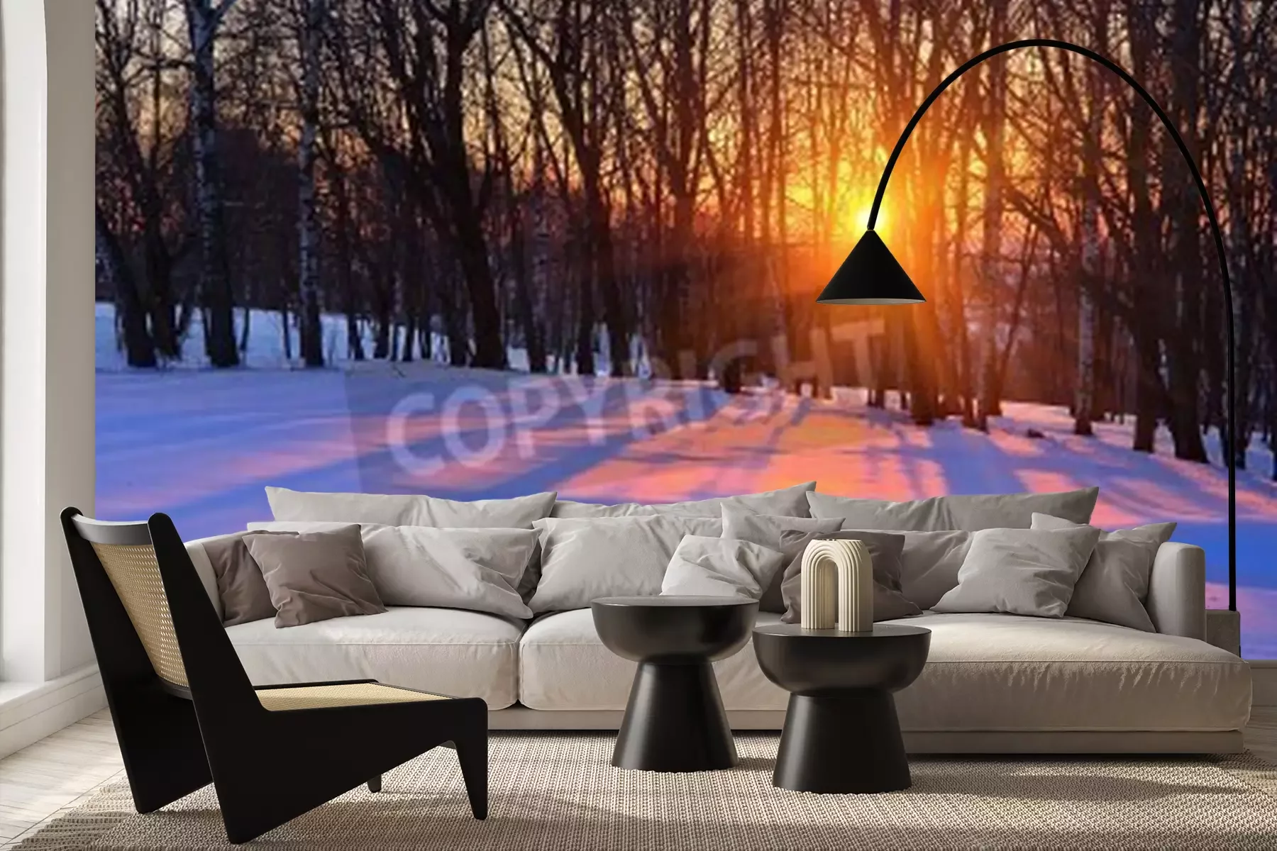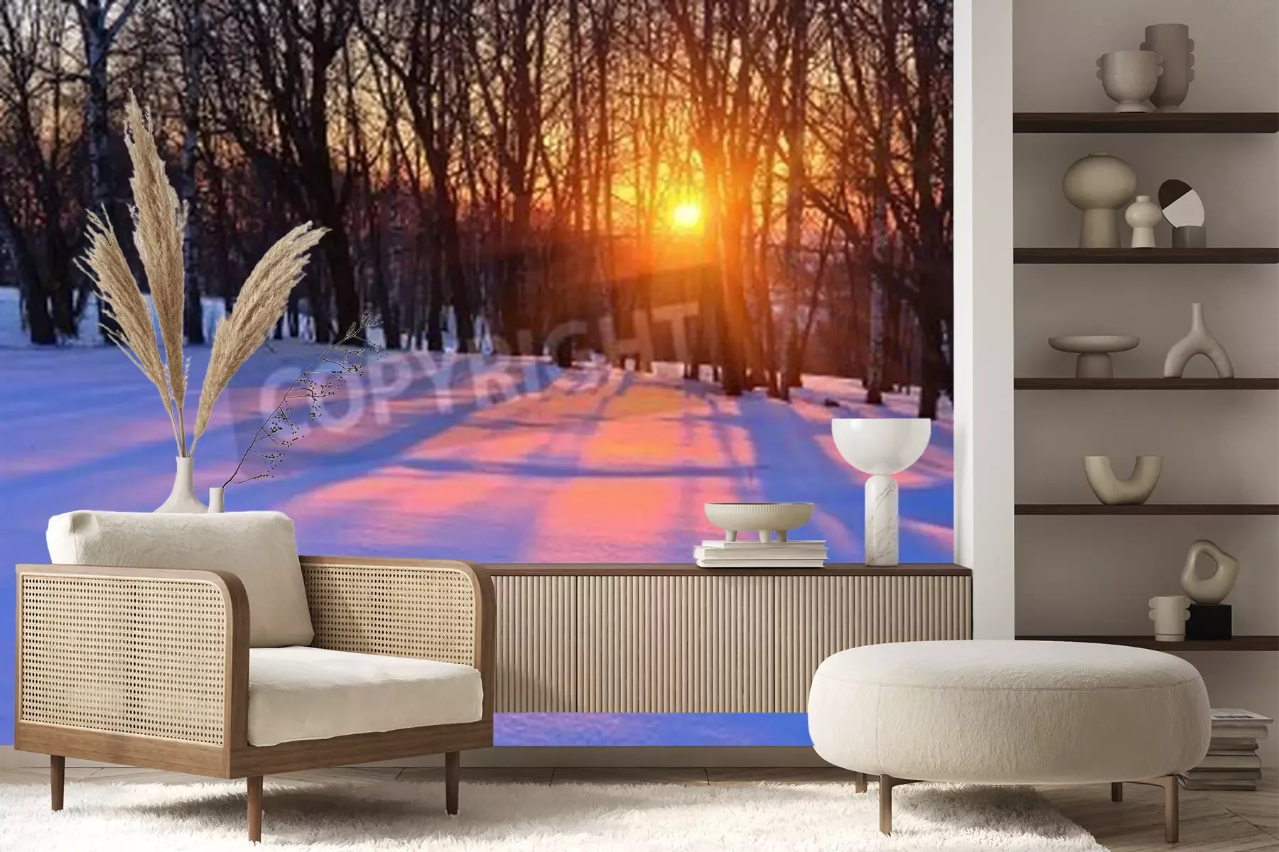 Fotobehang Winterberk en zonsondergang
