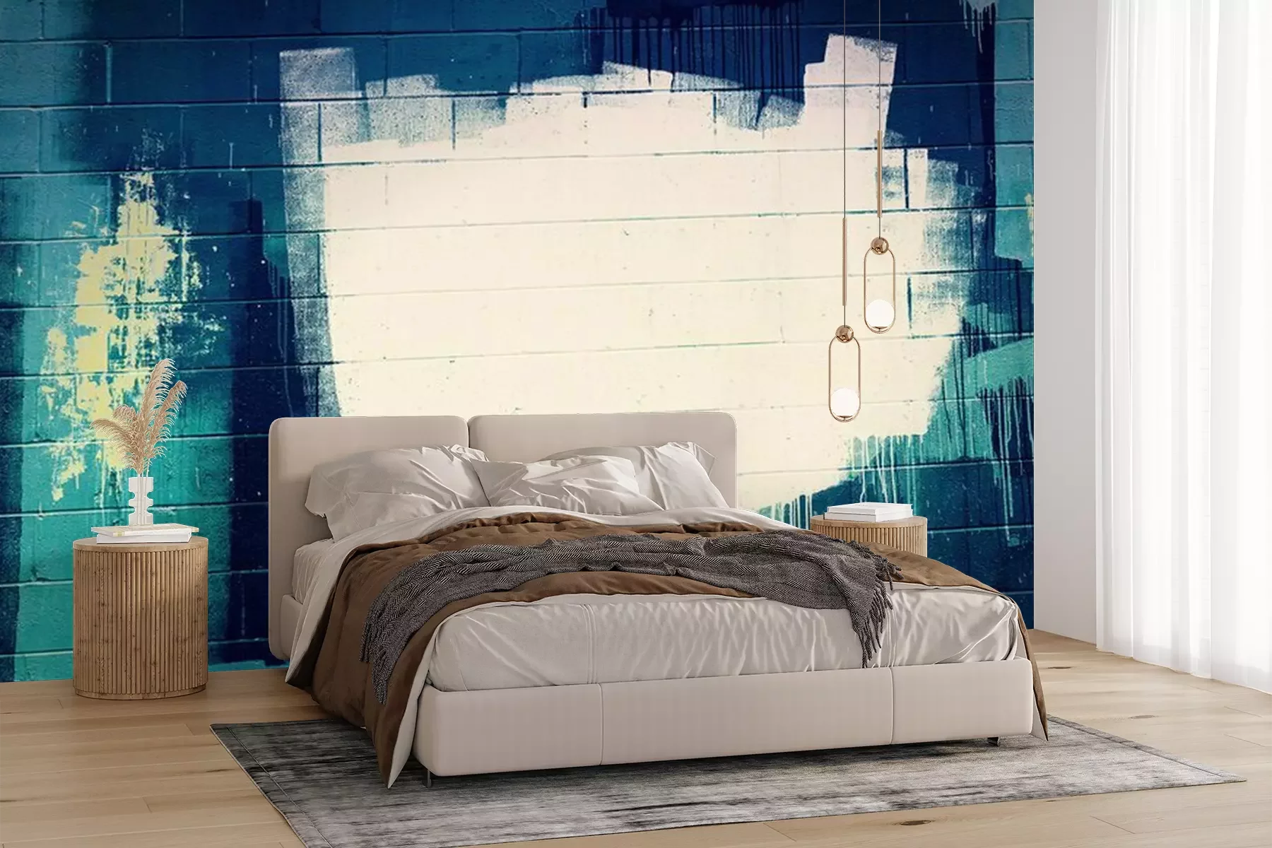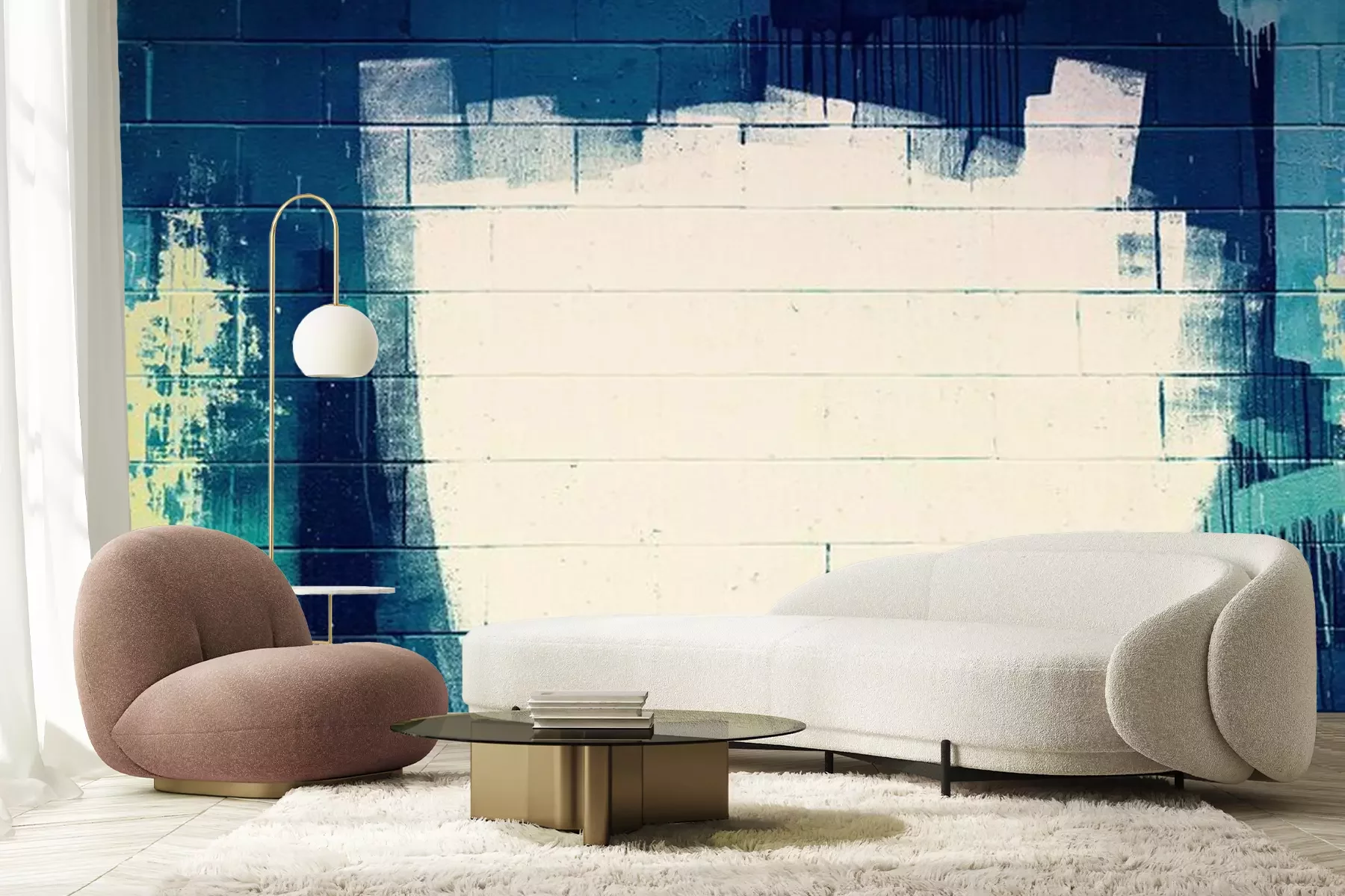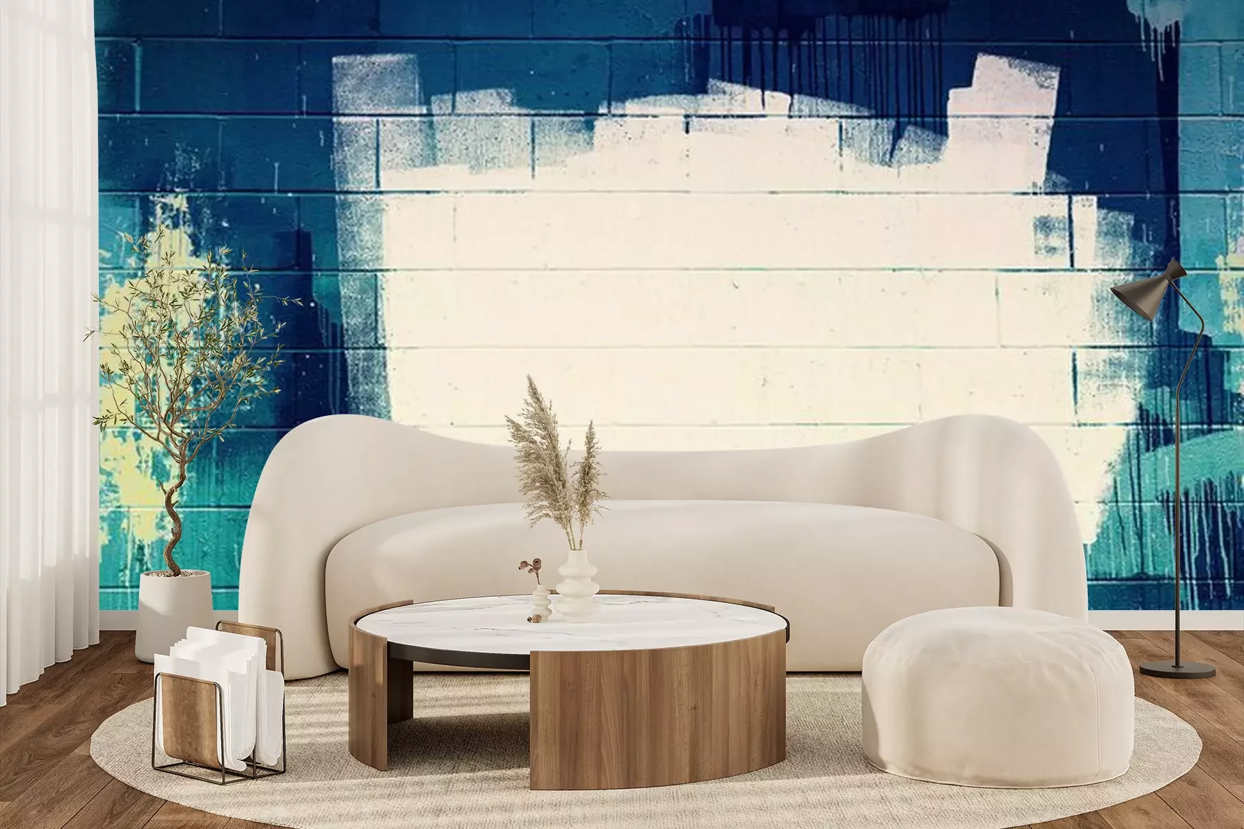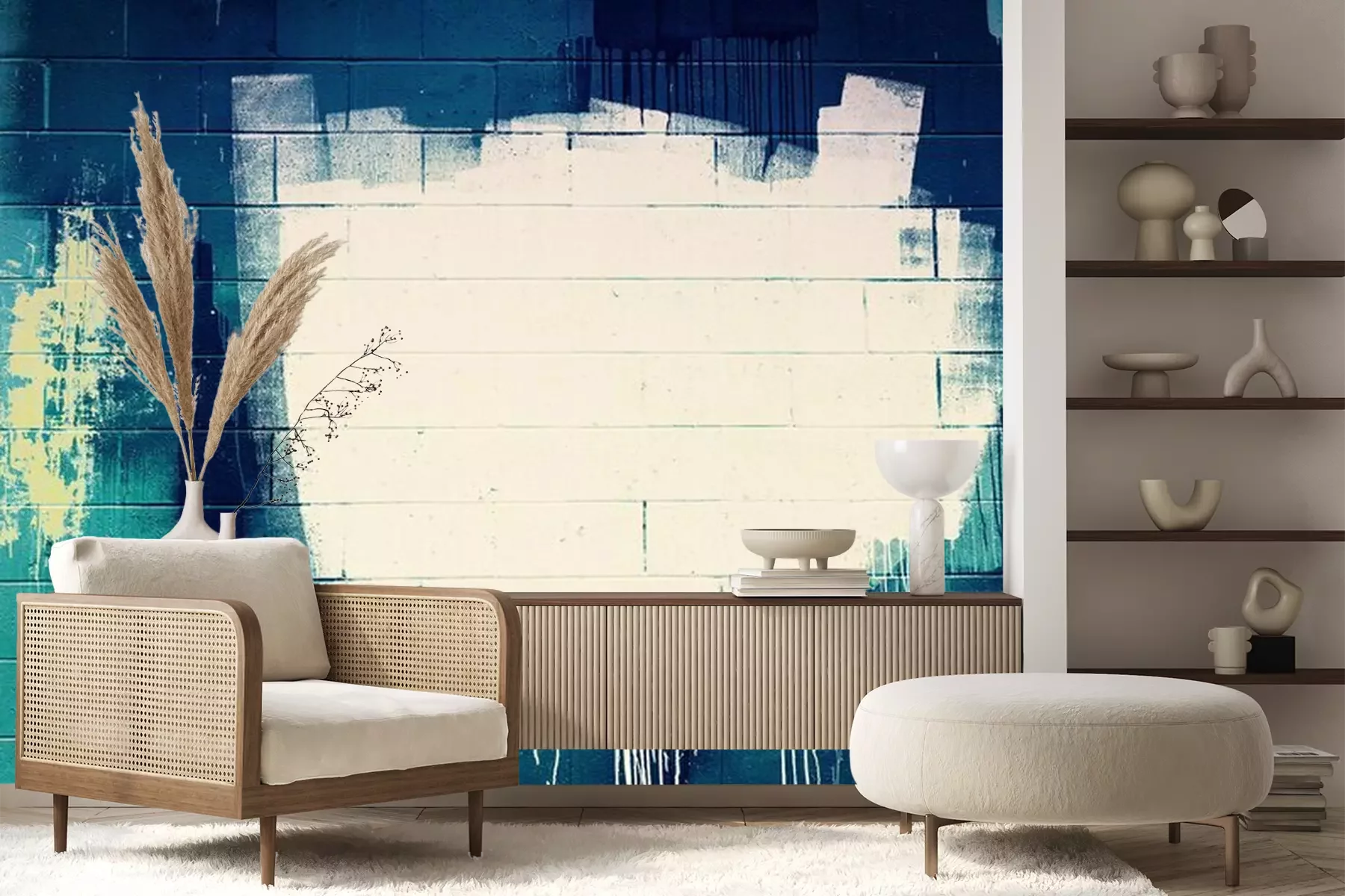 Fotobehang Wit en blauwe graffiti
