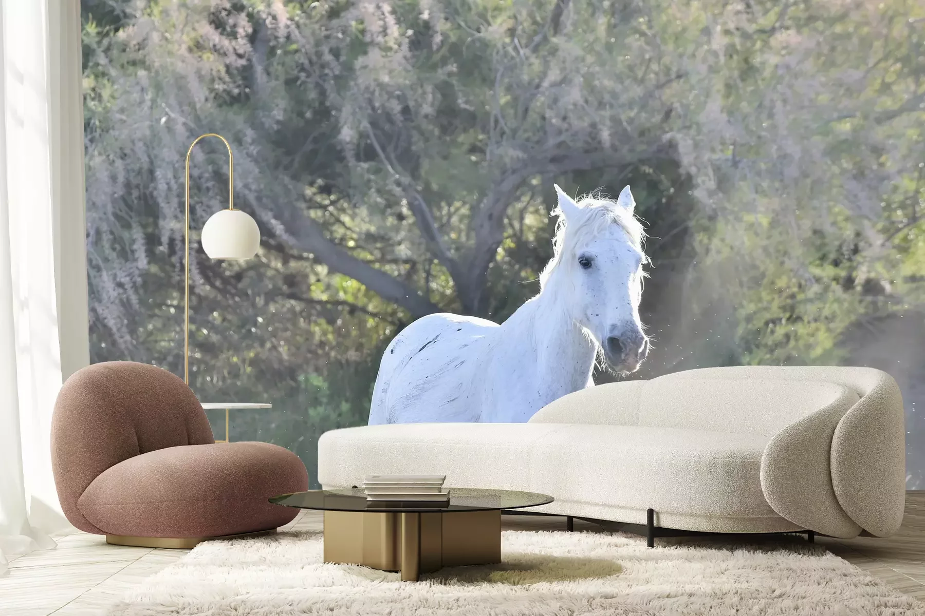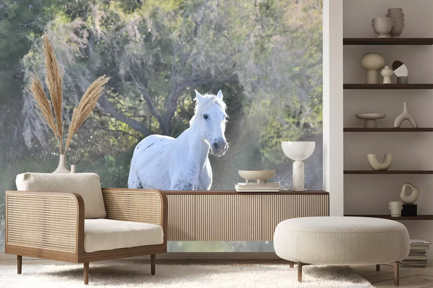 Het materiaal Premium+ is een gestructureerd vinyl op vlies met een gewicht van 255 g/m², dat kleine oneffenheden in de muur effectief camoufleert. De subtiele structuur van fijn zand geeft het oppervlak een exclusieve uitstraling, terwijl de halfmatte afwerking de diepte van de kleuren benadrukt. Het materiaal is dampdoorlatend, waardoor het ook in de keuken en badkamer kan worden gebruikt. De maximale breedte van één baan bedraagt 100 cm – bij grotere afmetingen wordt het fotobehang in meerdere gelijke banen verdeeld. De lijm wordt direct op de muur aangebracht en het behang wordt rand-aan-rand geplakt, wat zorgt voor een esthetisch resultaat zonder zichtbare naden. Het oppervlak kan gemakkelijk worden schoongemaakt door het voorzichtig af te nemen met een vochtige doek.