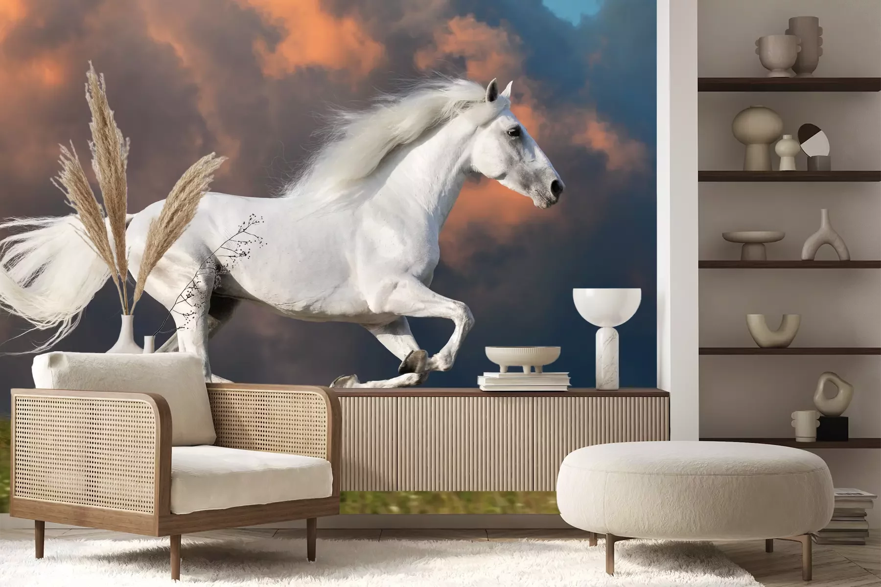 Het materiaal Premium+ is een gestructureerd vinyl op vlies met een gewicht van 255 g/m², dat kleine oneffenheden in de muur effectief camoufleert. De subtiele structuur van fijn zand geeft het oppervlak een exclusieve uitstraling, terwijl de halfmatte afwerking de diepte van de kleuren benadrukt. Het materiaal is dampdoorlatend, waardoor het ook in de keuken en badkamer kan worden gebruikt. De maximale breedte van één baan bedraagt 100 cm – bij grotere afmetingen wordt het fotobehang in meerdere gelijke banen verdeeld. De lijm wordt direct op de muur aangebracht en het behang wordt rand-aan-rand geplakt, wat zorgt voor een esthetisch resultaat zonder zichtbare naden. Het oppervlak kan gemakkelijk worden schoongemaakt door het voorzichtig af te nemen met een vochtige doek.