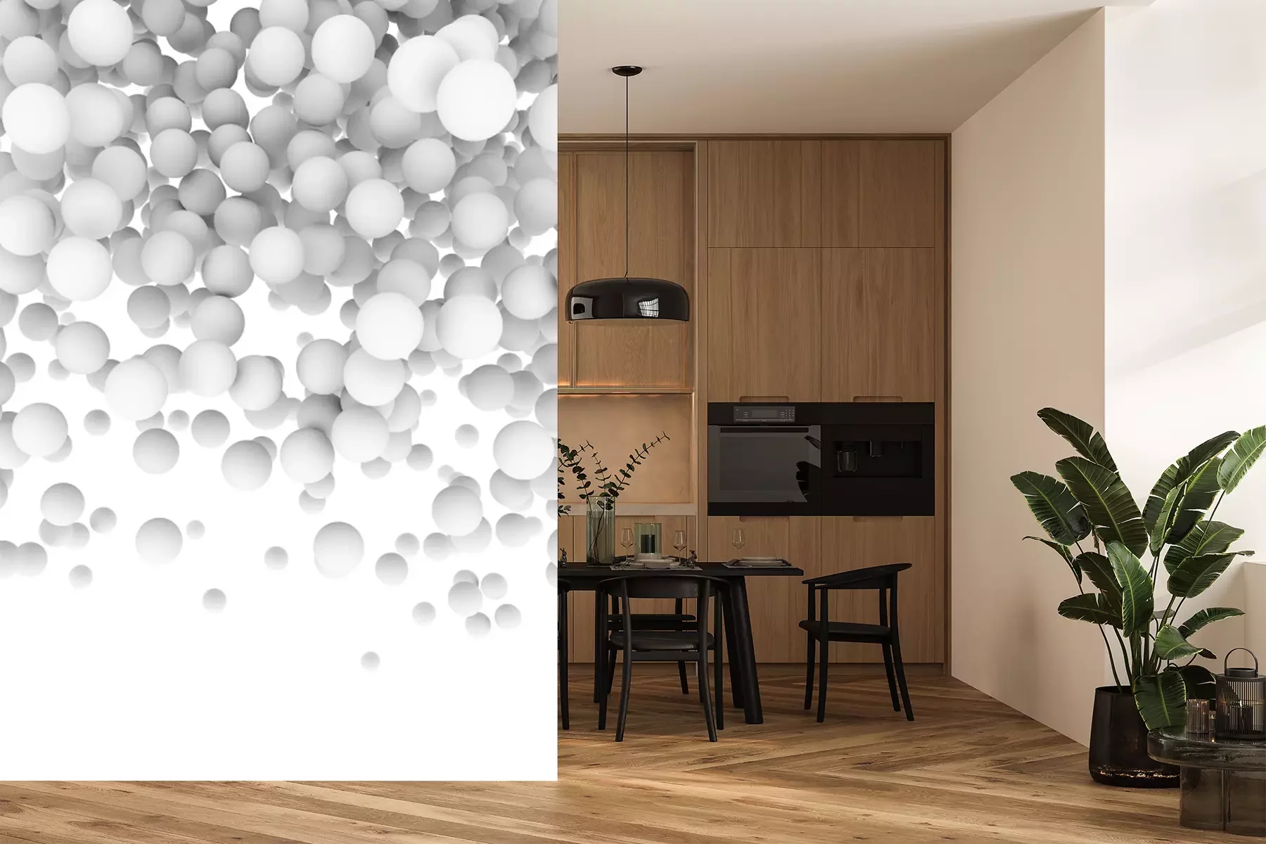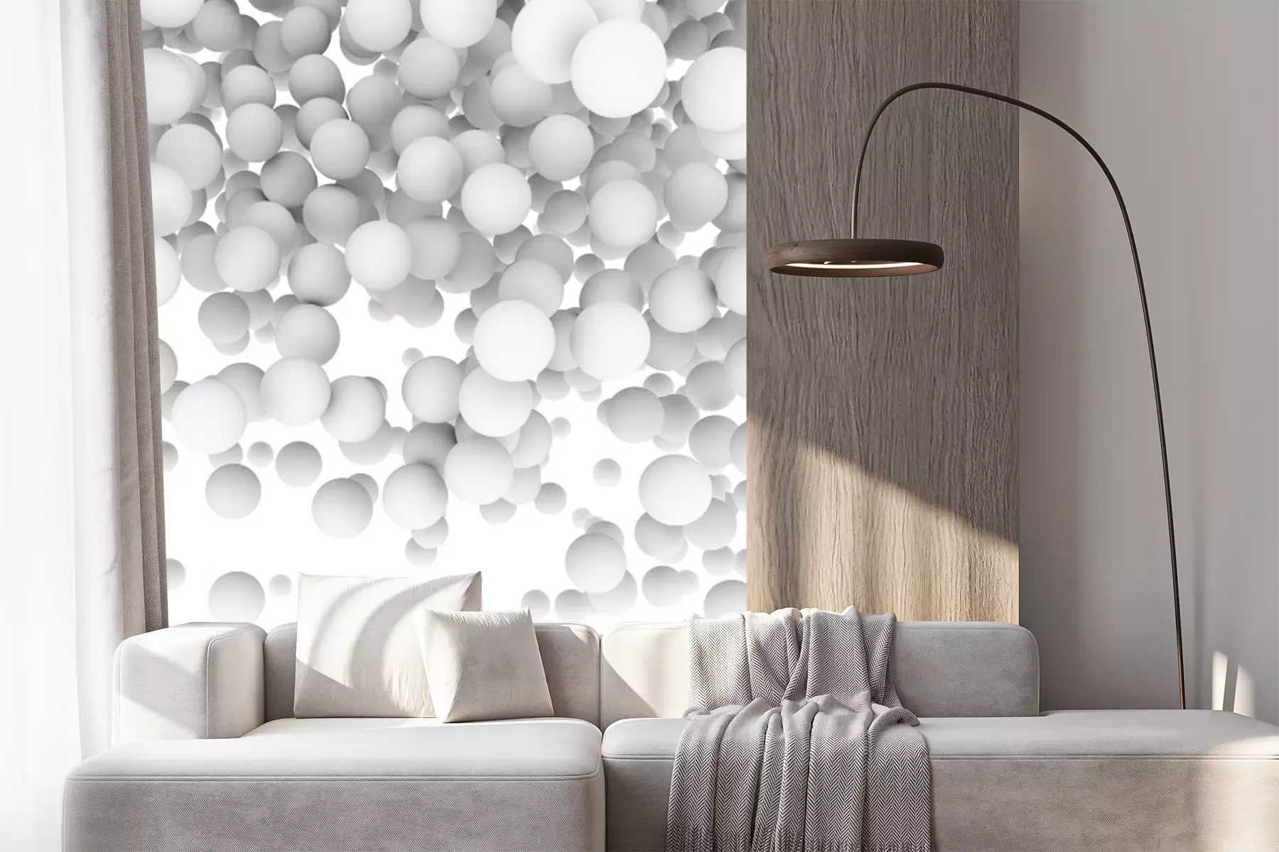 Fotobehang Witte 3D-ballen die uit de lucht vallen.