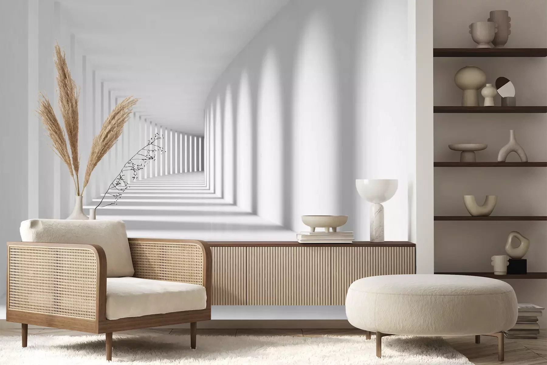 Witte tunnel met schaduwenProbleemloze bezorging verzorgd door vertrouwde vervoerders