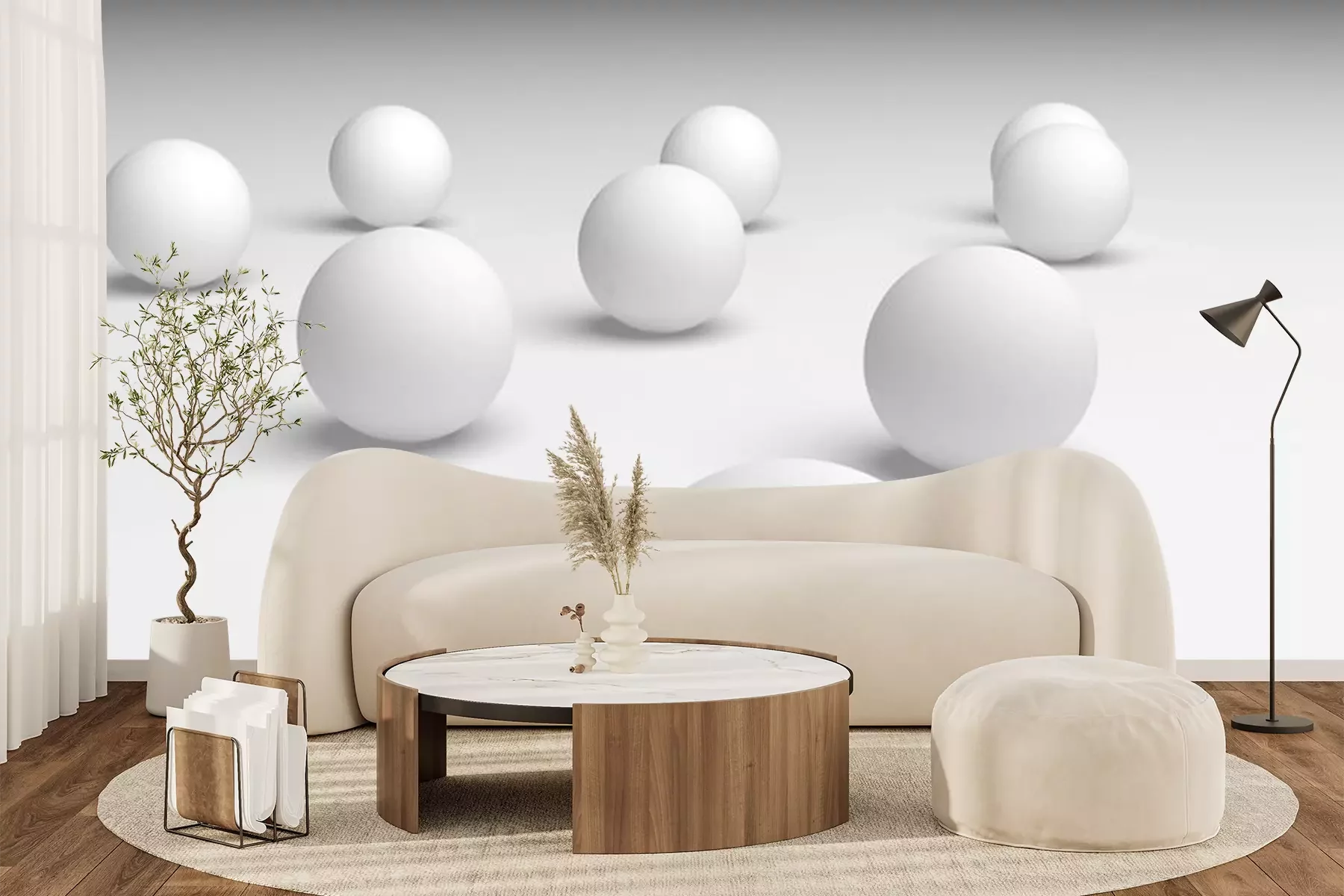 Fotobehang Witte ballen met 3D effect