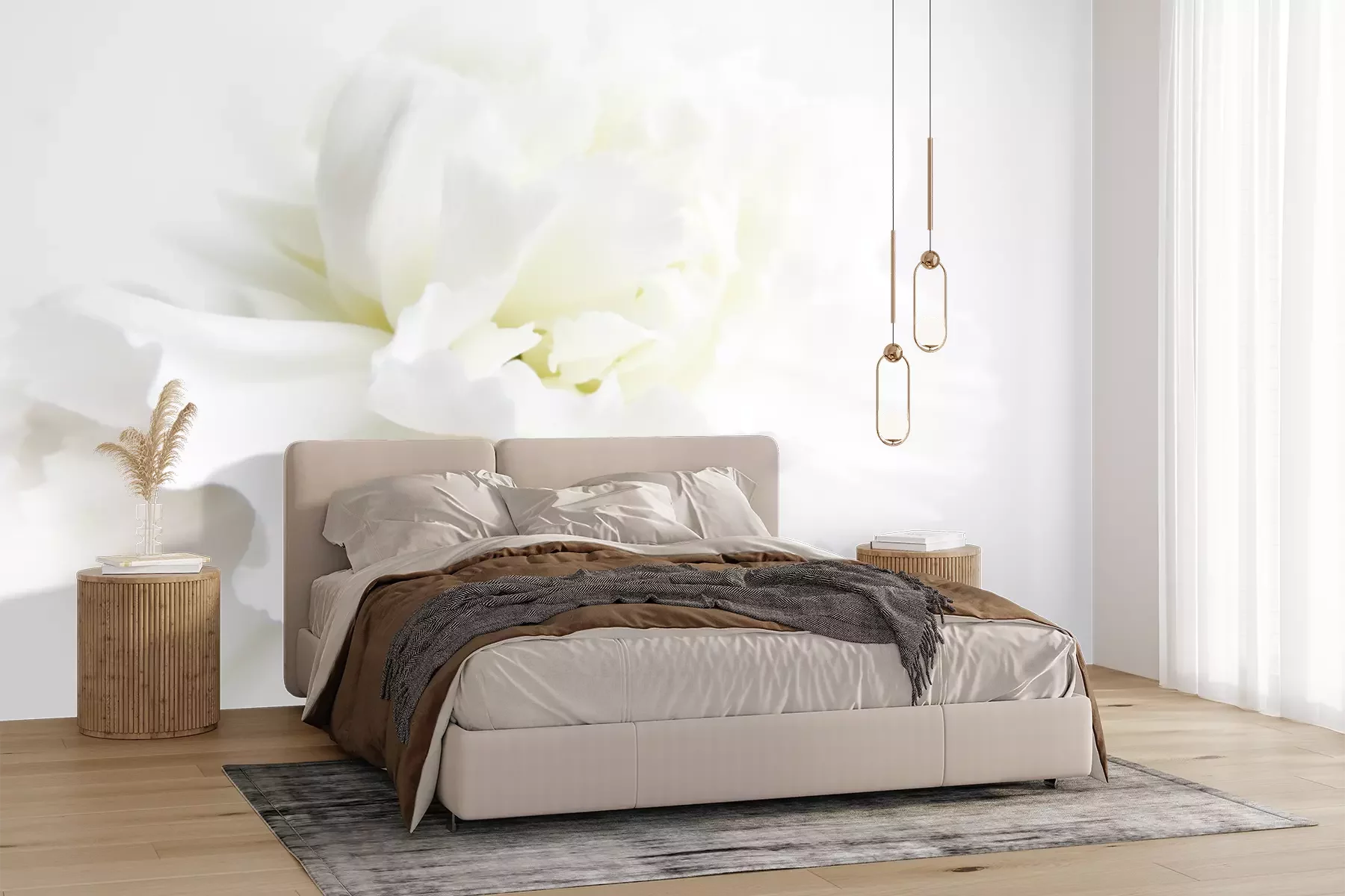 Het materiaal Premium+ is een gestructureerd vinyl op vlies met een gewicht van 255 g/m², dat kleine oneffenheden in de muur effectief camoufleert. De subtiele structuur van fijn zand geeft het oppervlak een exclusieve uitstraling, terwijl de halfmatte afwerking de diepte van de kleuren benadrukt. Het materiaal is dampdoorlatend, waardoor het ook in de keuken en badkamer kan worden gebruikt. De maximale breedte van één baan bedraagt 100 cm – bij grotere afmetingen wordt het fotobehang in meerdere gelijke banen verdeeld. De lijm wordt direct op de muur aangebracht en het behang wordt rand-aan-rand geplakt, wat zorgt voor een esthetisch resultaat zonder zichtbare naden. Het oppervlak kan gemakkelijk worden schoongemaakt door het voorzichtig af te nemen met een vochtige doek.