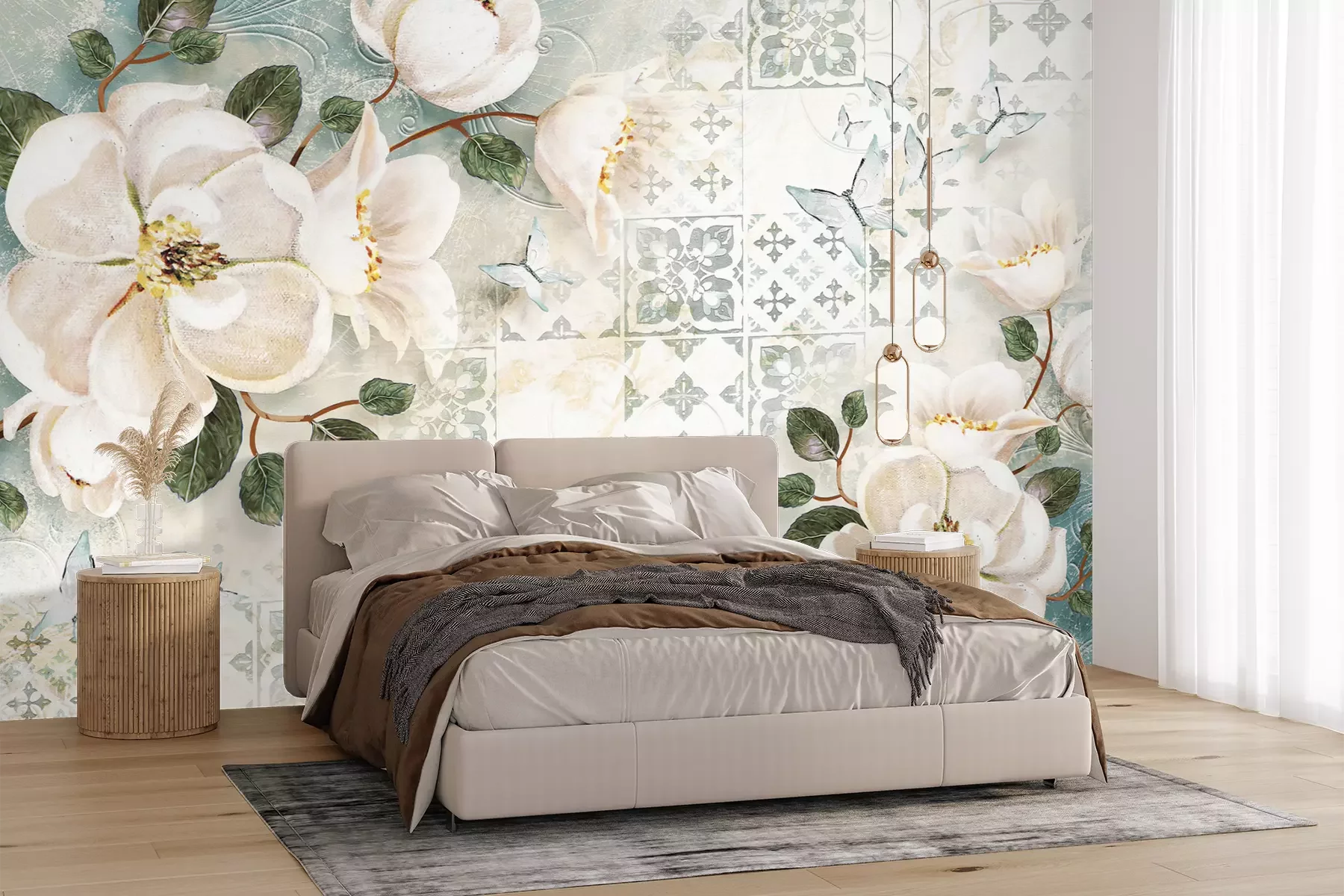 Het materiaal Premium+ is een gestructureerd vinyl op vlies met een gewicht van 255 g/m², dat kleine oneffenheden in de muur effectief camoufleert. De subtiele structuur van fijn zand geeft het oppervlak een exclusieve uitstraling, terwijl de halfmatte afwerking de diepte van de kleuren benadrukt. Het materiaal is dampdoorlatend, waardoor het ook in de keuken en badkamer kan worden gebruikt. De maximale breedte van één baan bedraagt 100 cm – bij grotere afmetingen wordt het fotobehang in meerdere gelijke banen verdeeld. De lijm wordt direct op de muur aangebracht en het behang wordt rand-aan-rand geplakt, wat zorgt voor een esthetisch resultaat zonder zichtbare naden. Het oppervlak kan gemakkelijk worden schoongemaakt door het voorzichtig af te nemen met een vochtige doek.