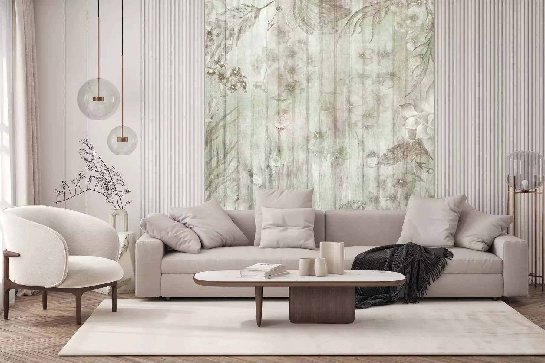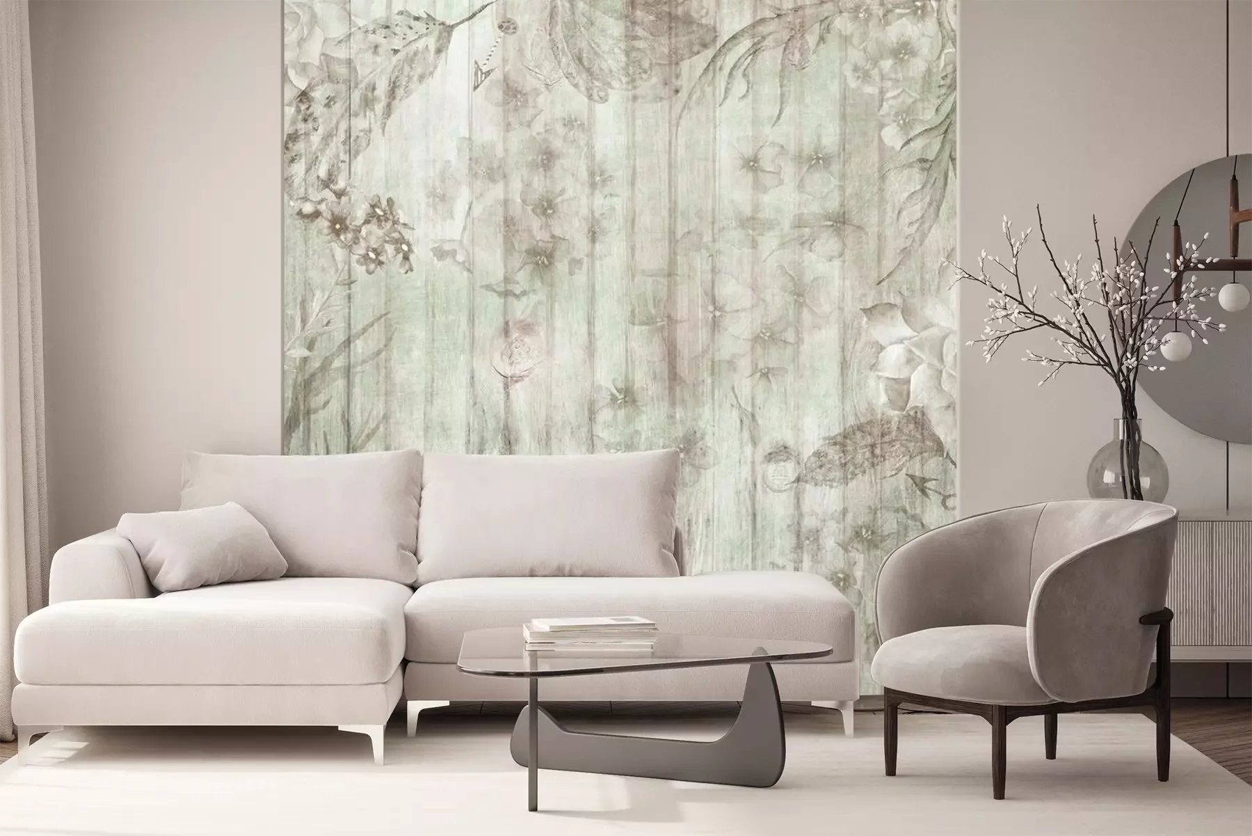 Fotobehang Witte borden en sjofele bloemen