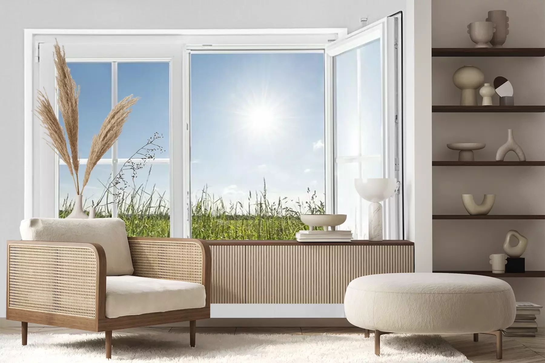 Het materiaal Premium+ is een gestructureerd vinyl op vlies met een gewicht van 255 g/m², dat kleine oneffenheden in de muur effectief camoufleert. De subtiele structuur van fijn zand geeft het oppervlak een exclusieve uitstraling, terwijl de halfmatte afwerking de diepte van de kleuren benadrukt. Het materiaal is dampdoorlatend, waardoor het ook in de keuken en badkamer kan worden gebruikt. De maximale breedte van één baan bedraagt 100 cm – bij grotere afmetingen wordt het fotobehang in meerdere gelijke banen verdeeld. De lijm wordt direct op de muur aangebracht en het behang wordt rand-aan-rand geplakt, wat zorgt voor een esthetisch resultaat zonder zichtbare naden. Het oppervlak kan gemakkelijk worden schoongemaakt door het voorzichtig af te nemen met een vochtige doek.
