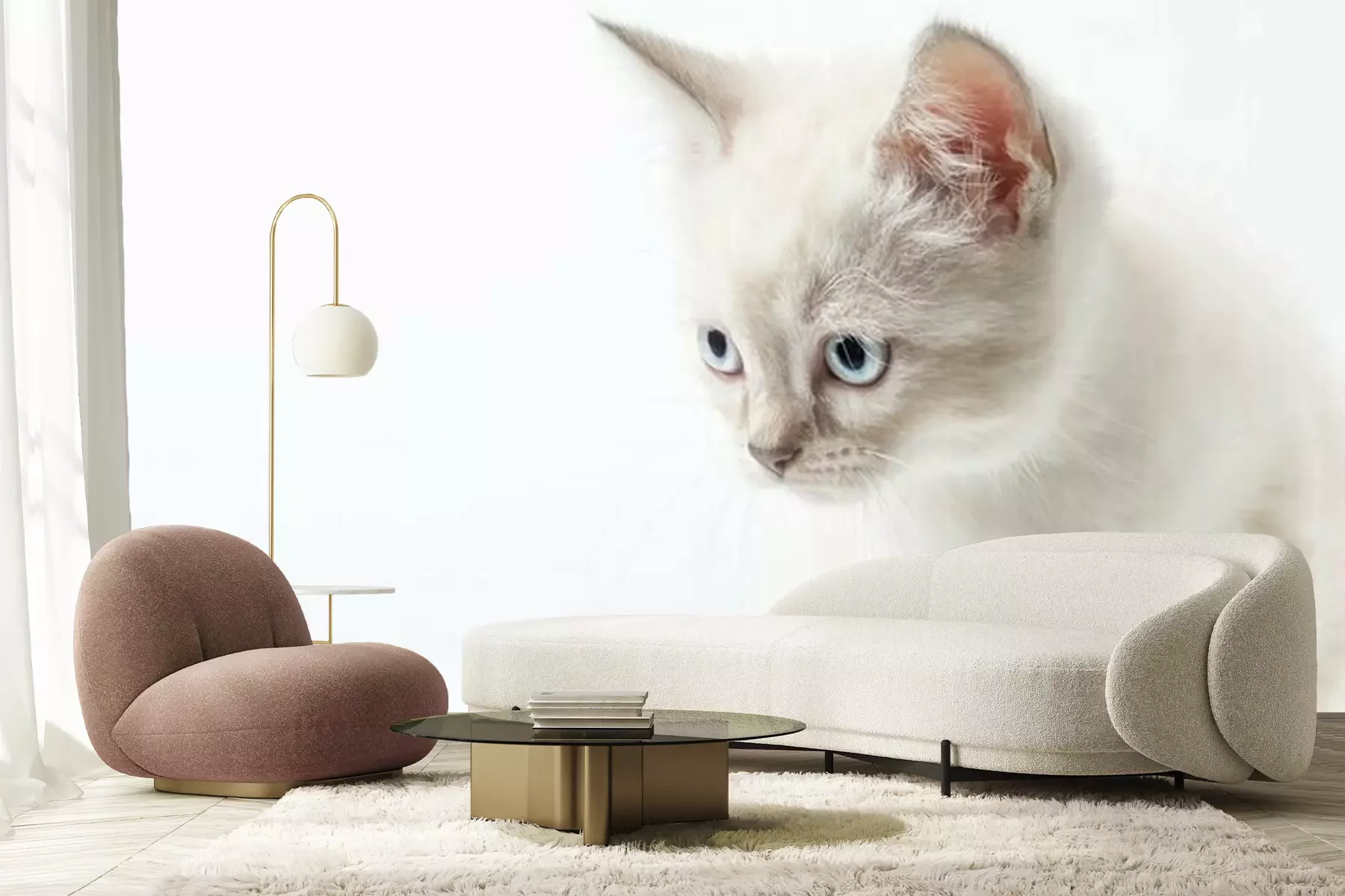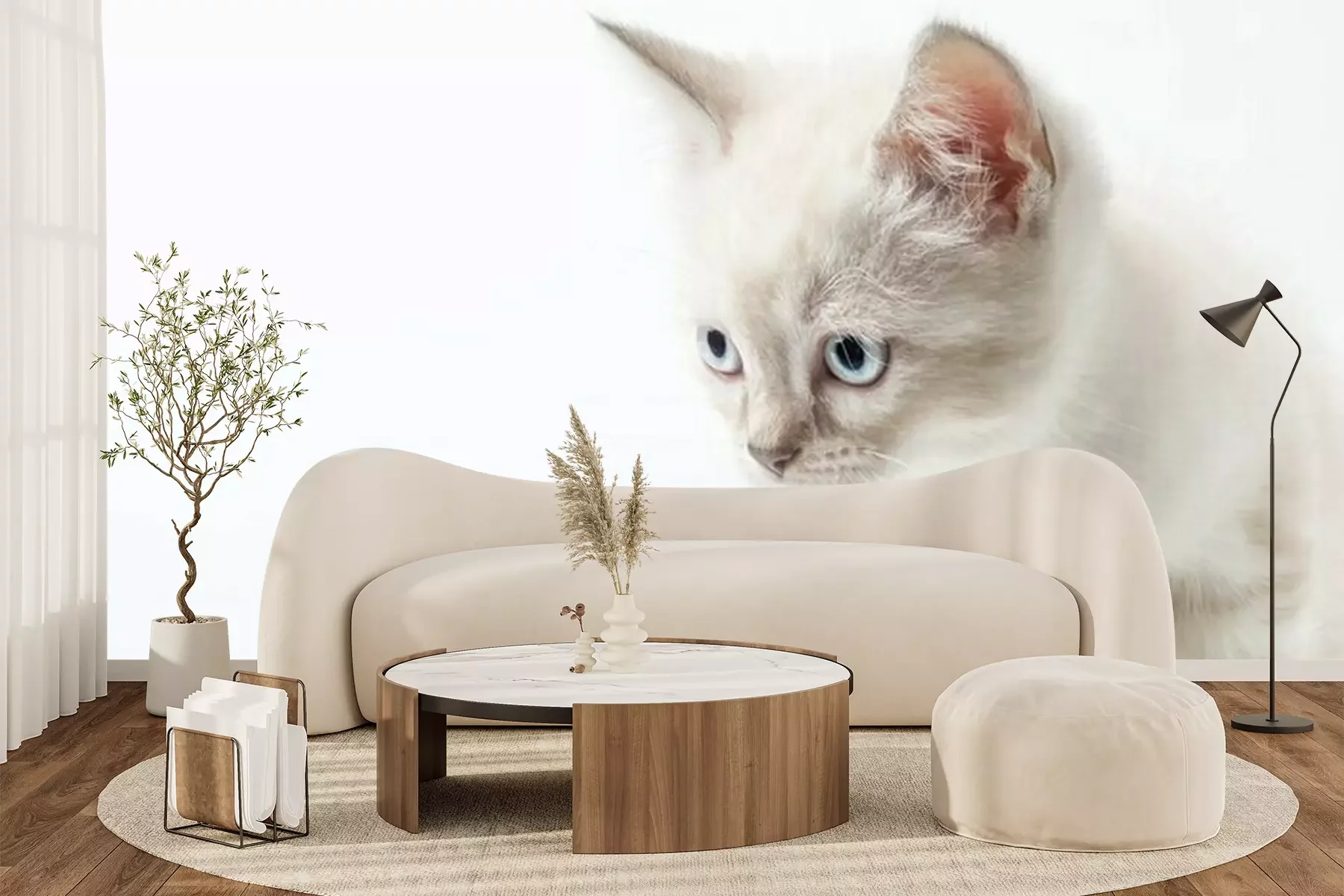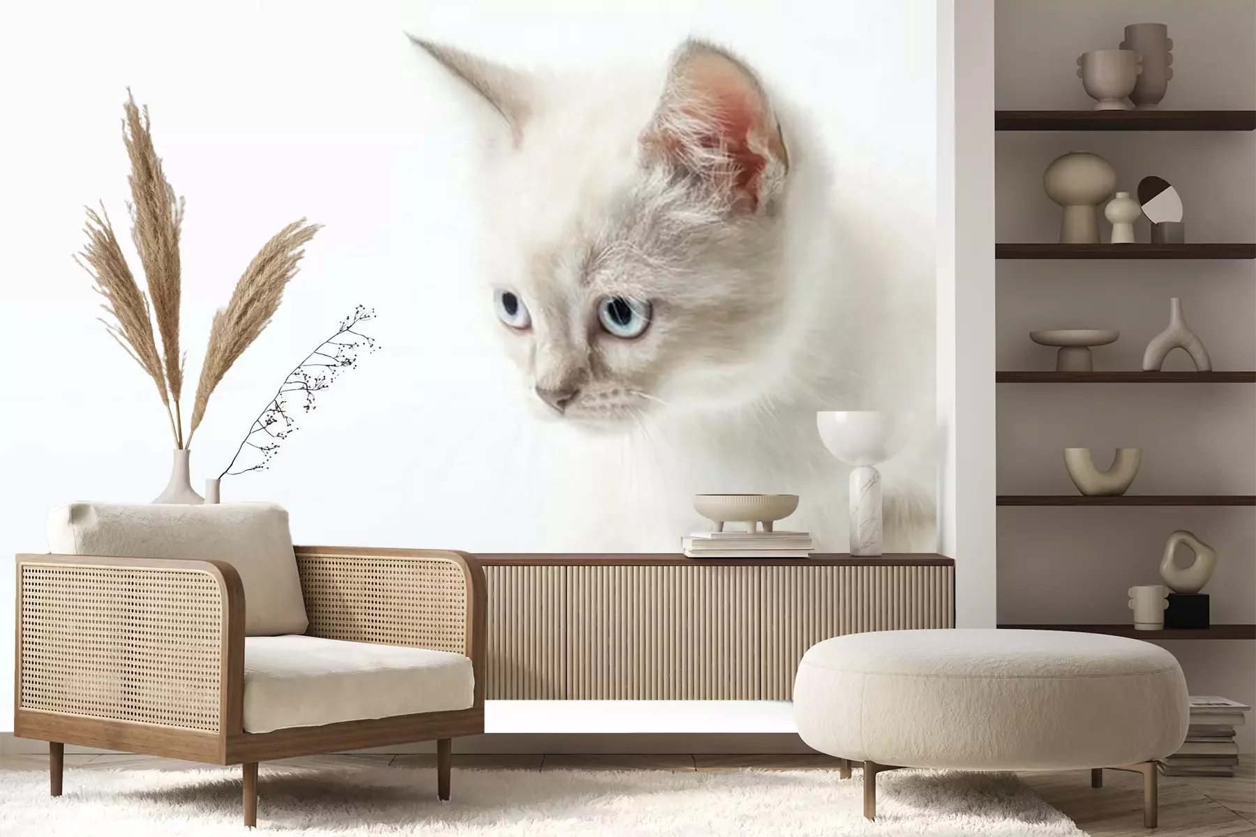 Fotobehang Witte kat met blauwe ogen