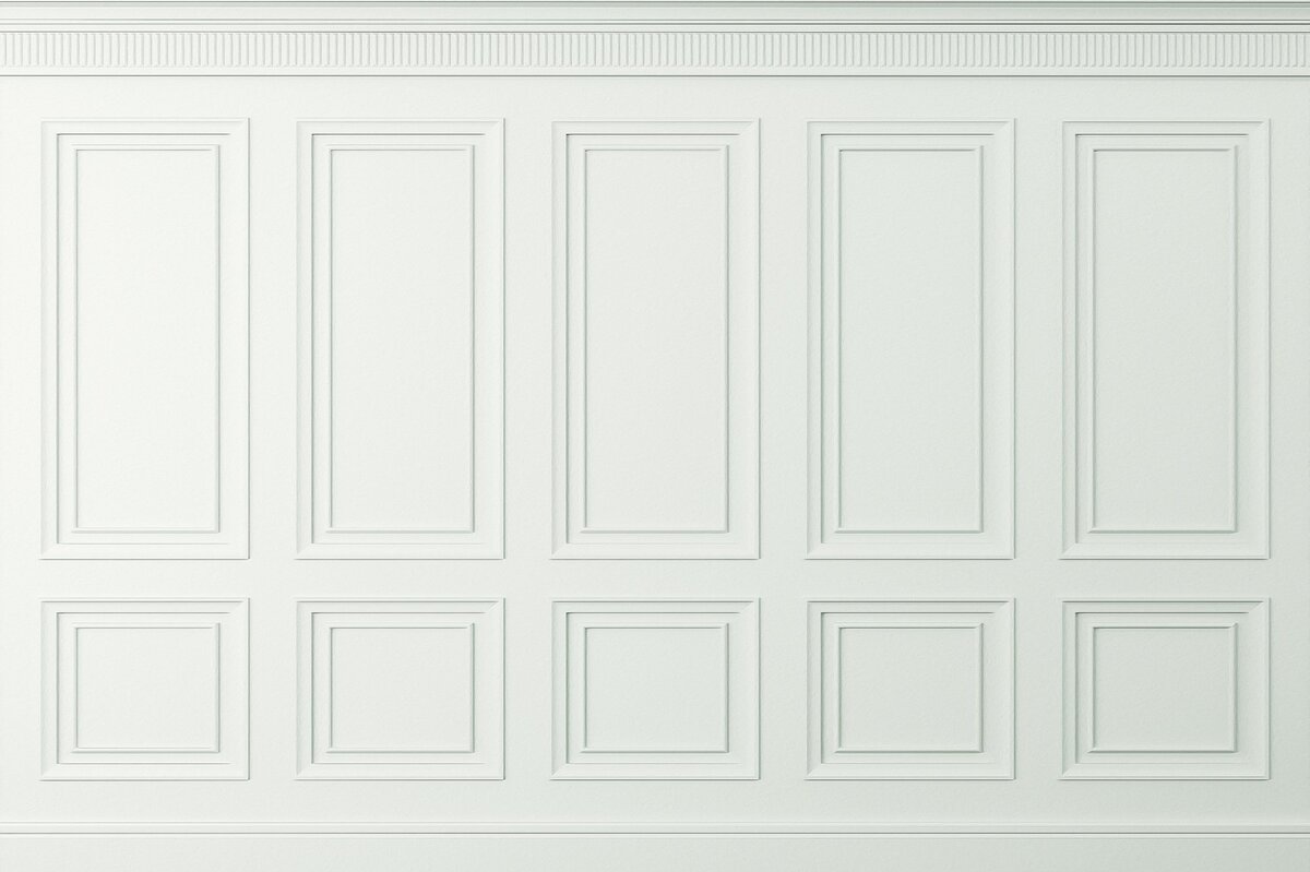Fotobehang: Witte lambrisering die klassieke panelen imiteert