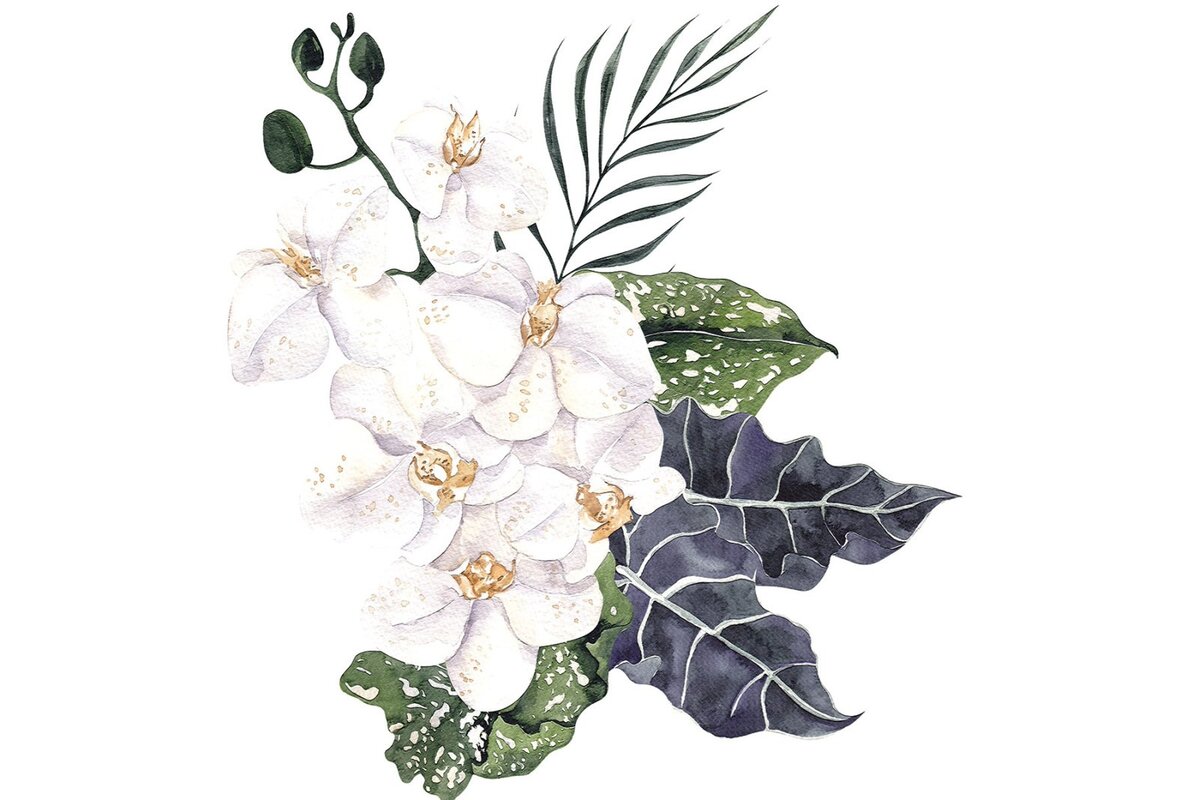 Fotobehang: Witte orchideeën tussen groene bladeren