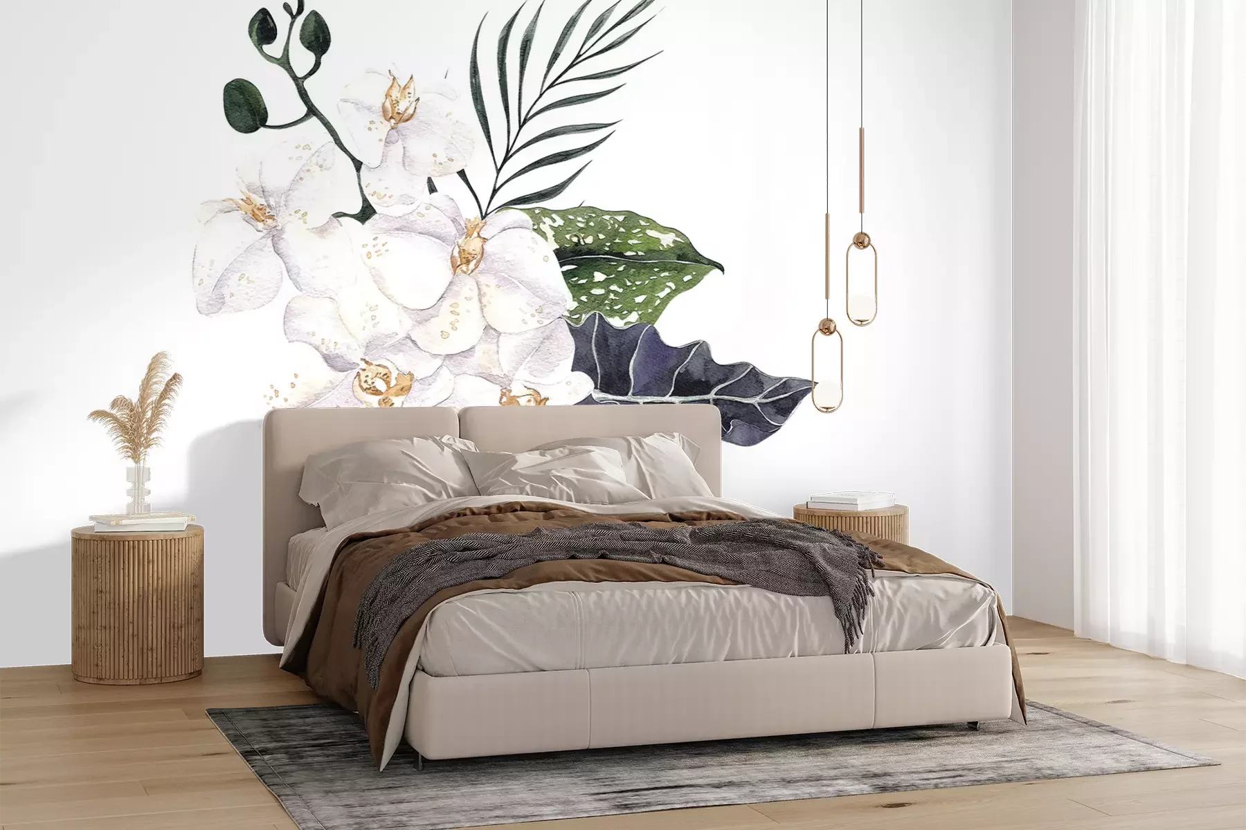 Het materiaal Premium+ is een gestructureerd vinyl op vlies met een gewicht van 255 g/m², dat kleine oneffenheden in de muur effectief camoufleert. De subtiele structuur van fijn zand geeft het oppervlak een exclusieve uitstraling, terwijl de halfmatte afwerking de diepte van de kleuren benadrukt. Het materiaal is dampdoorlatend, waardoor het ook in de keuken en badkamer kan worden gebruikt. De maximale breedte van één baan bedraagt 100 cm – bij grotere afmetingen wordt het fotobehang in meerdere gelijke banen verdeeld. De lijm wordt direct op de muur aangebracht en het behang wordt rand-aan-rand geplakt, wat zorgt voor een esthetisch resultaat zonder zichtbare naden. Het oppervlak kan gemakkelijk worden schoongemaakt door het voorzichtig af te nemen met een vochtige doek.