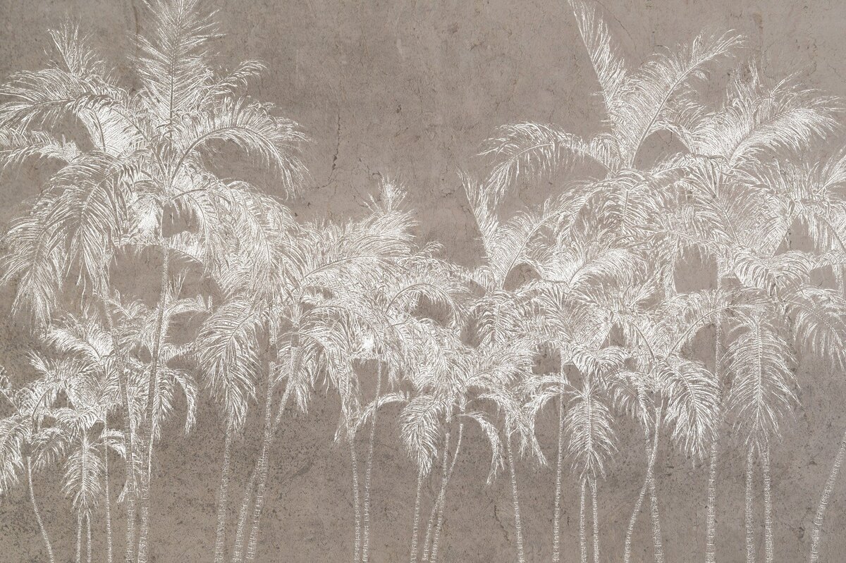 Fotobehang: Witte palmbomen op een beige achtergrond