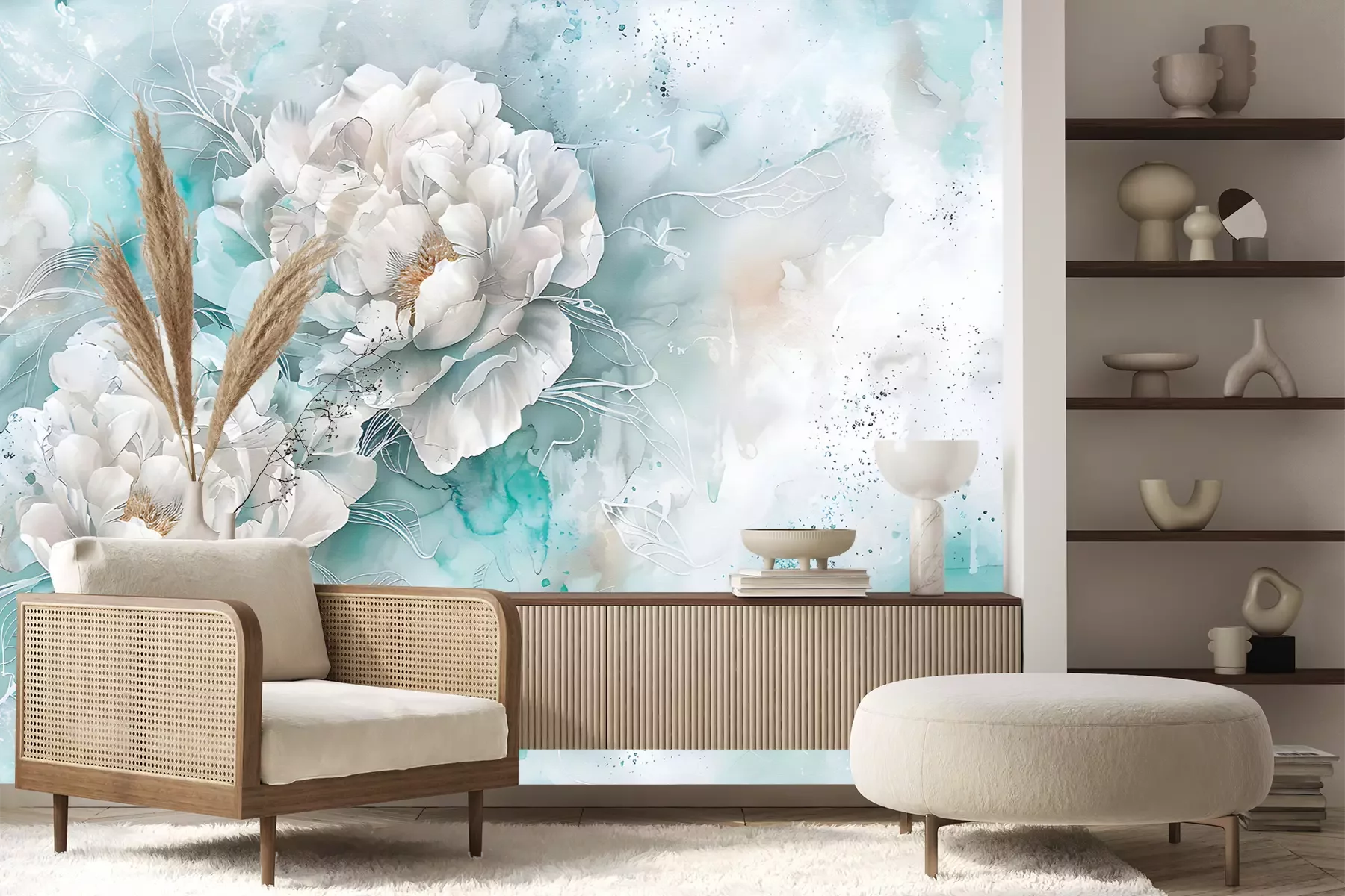 Het materiaal Premium+ is een gestructureerd vinyl op vlies met een gewicht van 255 g/m², dat kleine oneffenheden in de muur effectief camoufleert. De subtiele structuur van fijn zand geeft het oppervlak een exclusieve uitstraling, terwijl de halfmatte afwerking de diepte van de kleuren benadrukt. Het materiaal is dampdoorlatend, waardoor het ook in de keuken en badkamer kan worden gebruikt. De maximale breedte van één baan bedraagt 100 cm – bij grotere afmetingen wordt het fotobehang in meerdere gelijke banen verdeeld. De lijm wordt direct op de muur aangebracht en het behang wordt rand-aan-rand geplakt, wat zorgt voor een esthetisch resultaat zonder zichtbare naden. Het oppervlak kan gemakkelijk worden schoongemaakt door het voorzichtig af te nemen met een vochtige doek.