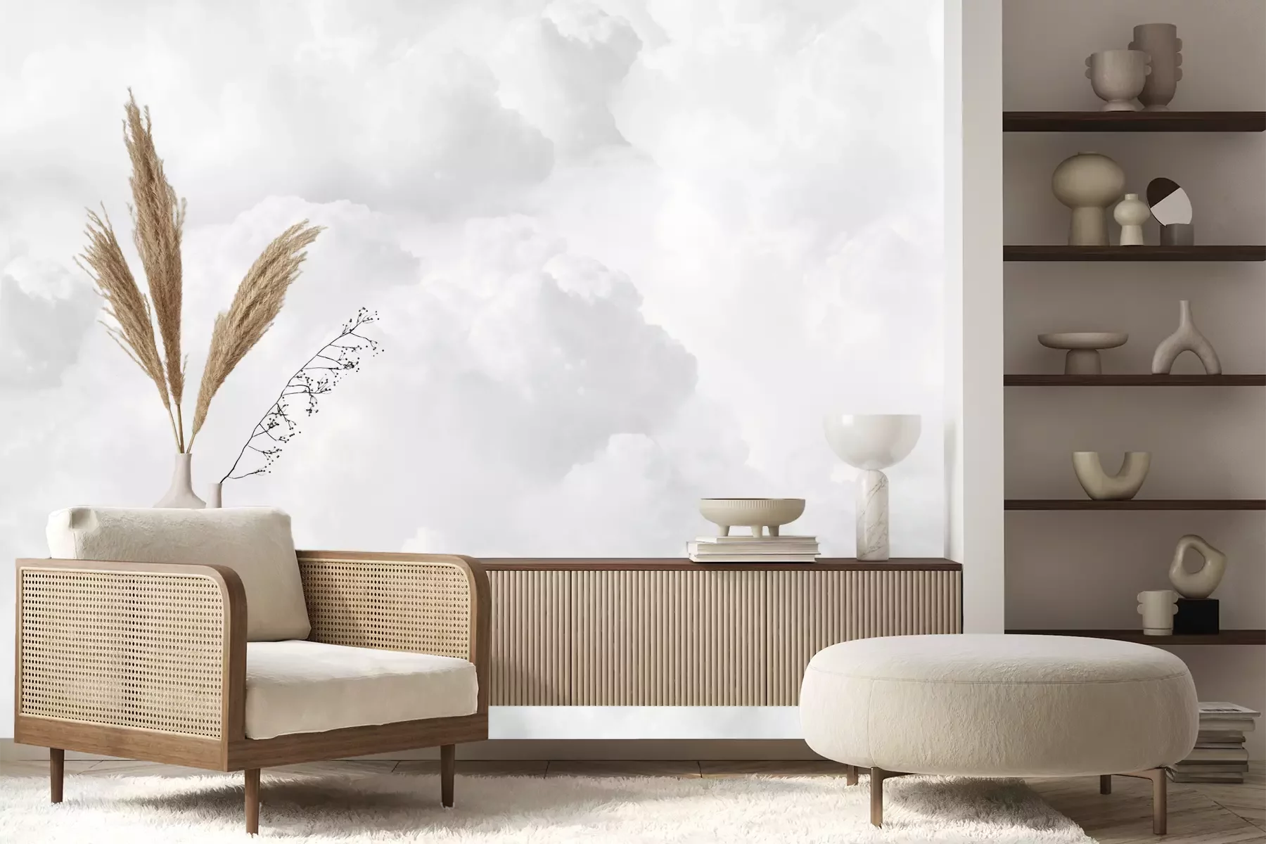 Het materiaal Premium+ is een gestructureerd vinyl op vlies met een gewicht van 255 g/m², dat kleine oneffenheden in de muur effectief camoufleert. De subtiele structuur van fijn zand geeft het oppervlak een exclusieve uitstraling, terwijl de halfmatte afwerking de diepte van de kleuren benadrukt. Het materiaal is dampdoorlatend, waardoor het ook in de keuken en badkamer kan worden gebruikt. De maximale breedte van één baan bedraagt 100 cm – bij grotere afmetingen wordt het fotobehang in meerdere gelijke banen verdeeld. De lijm wordt direct op de muur aangebracht en het behang wordt rand-aan-rand geplakt, wat zorgt voor een esthetisch resultaat zonder zichtbare naden. Het oppervlak kan gemakkelijk worden schoongemaakt door het voorzichtig af te nemen met een vochtige doek.