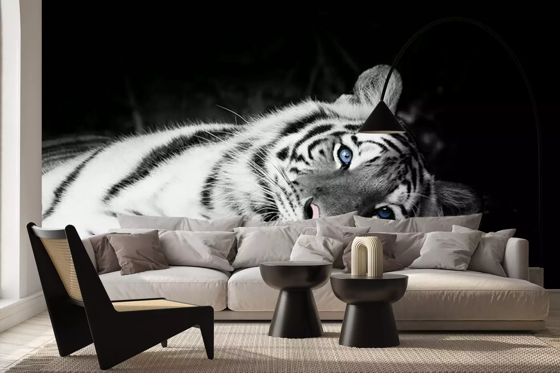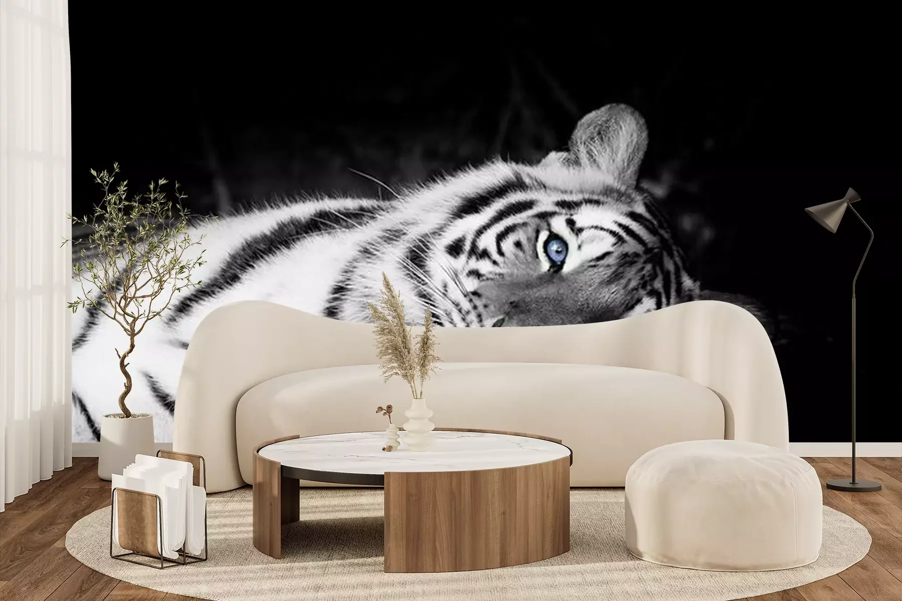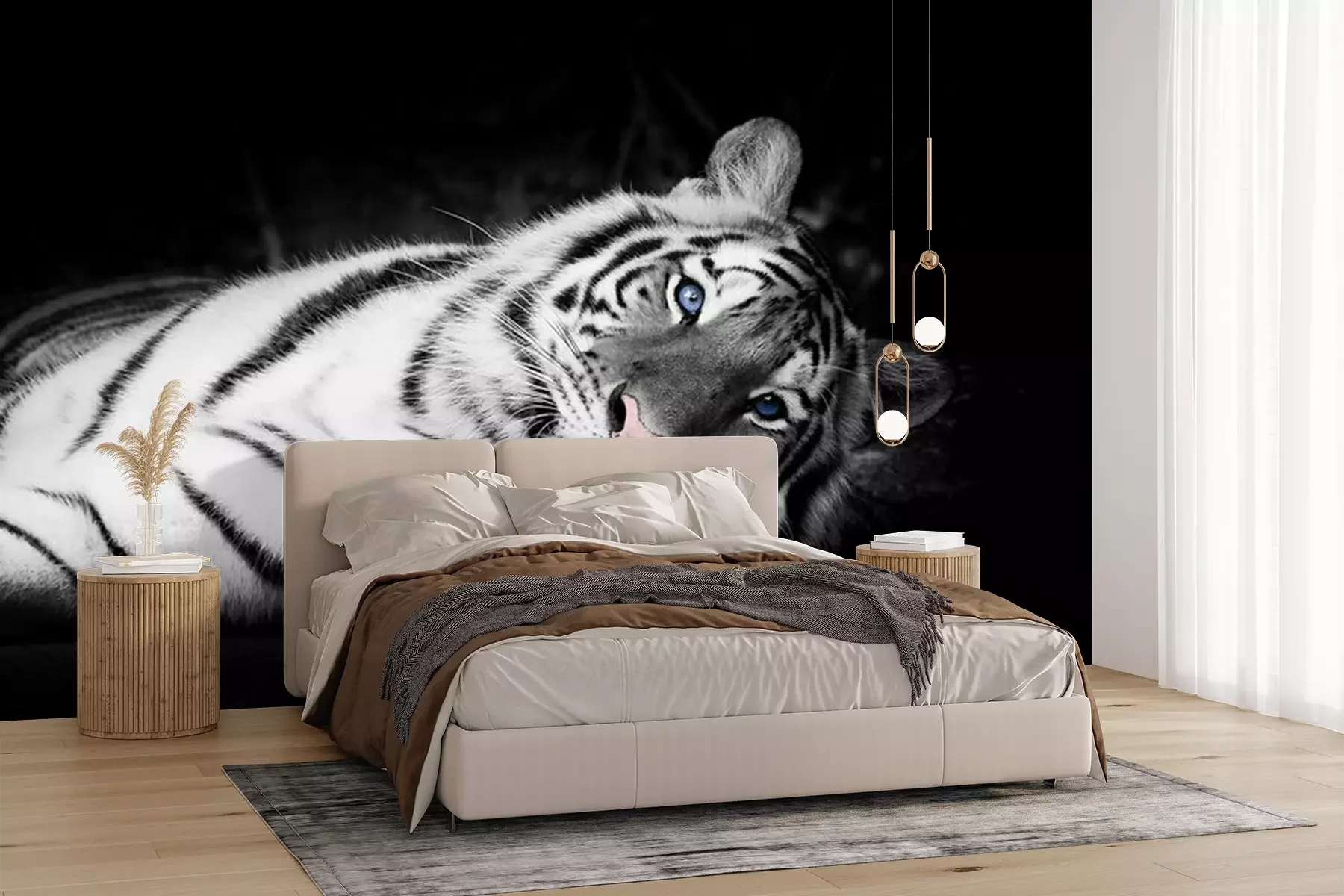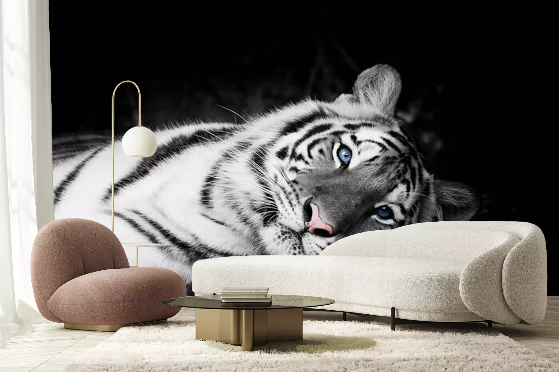 Fotobehang Witte tijger met blauwe ogen