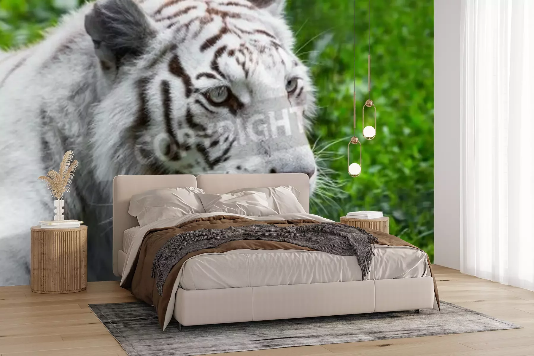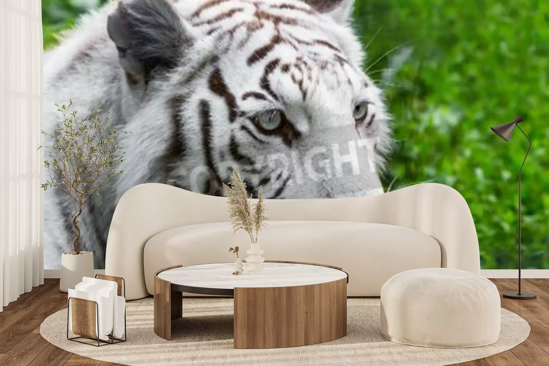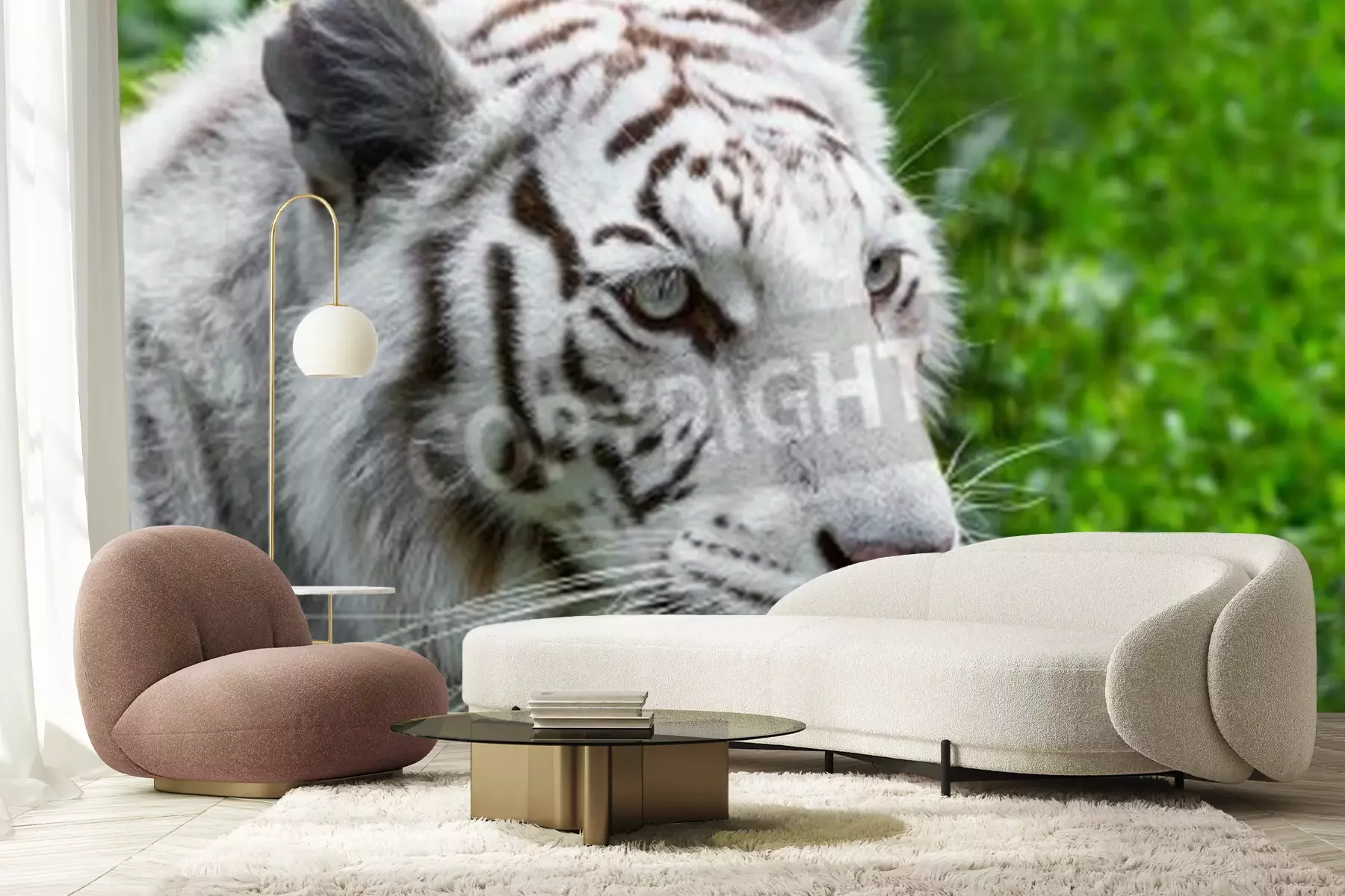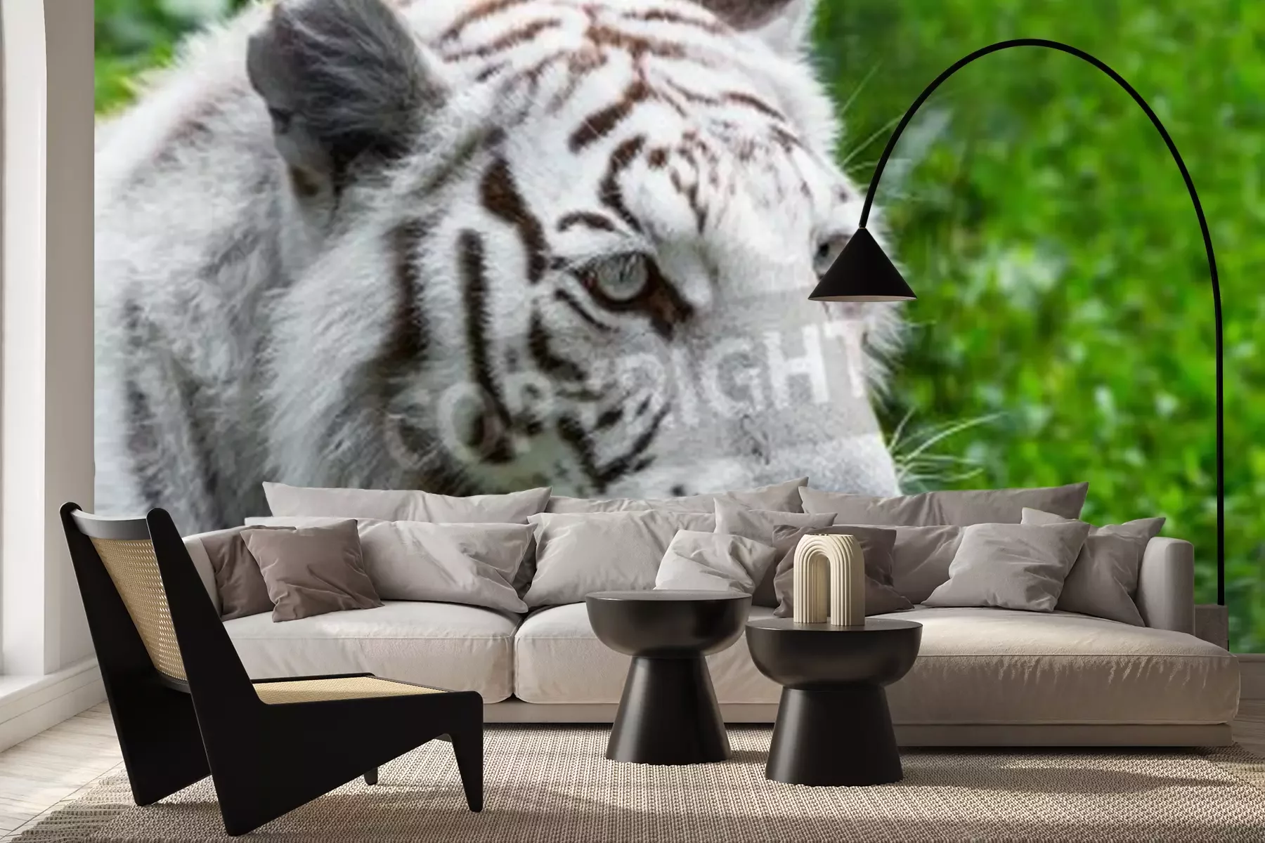 Fotobehang Witte tijger op een groene achtergrond