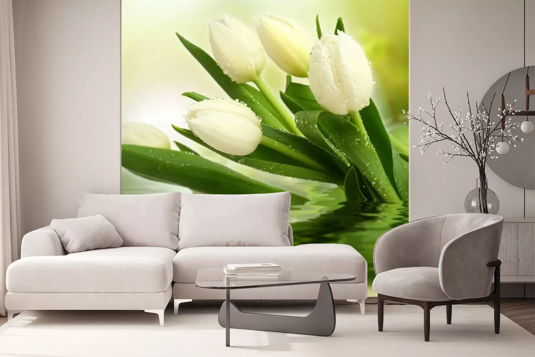 Het materiaal Premium is een glad vinyl op vlies, dat bestand is tegen uitrekken en vervorming. Het is dampdoorlatend – de muren kunnen vrij ademen – waardoor het geschikt is voor gebruik in de keuken en badkamer. Bij vervuiling kan het materiaal worden afgenomen met een vochtige doek. De maximale breedte van één baan bedraagt 95 of 105 cm, afhankelijk van de beschikbaarheid. Montage vindt plaats met de rand-aan-rand methode, wat een esthetisch resultaat zonder zichtbare naden oplevert. Omdat de lijm rechtstreeks op de muur wordt aangebracht, verloopt de installatie van het fotobehang snel en eenvoudig.