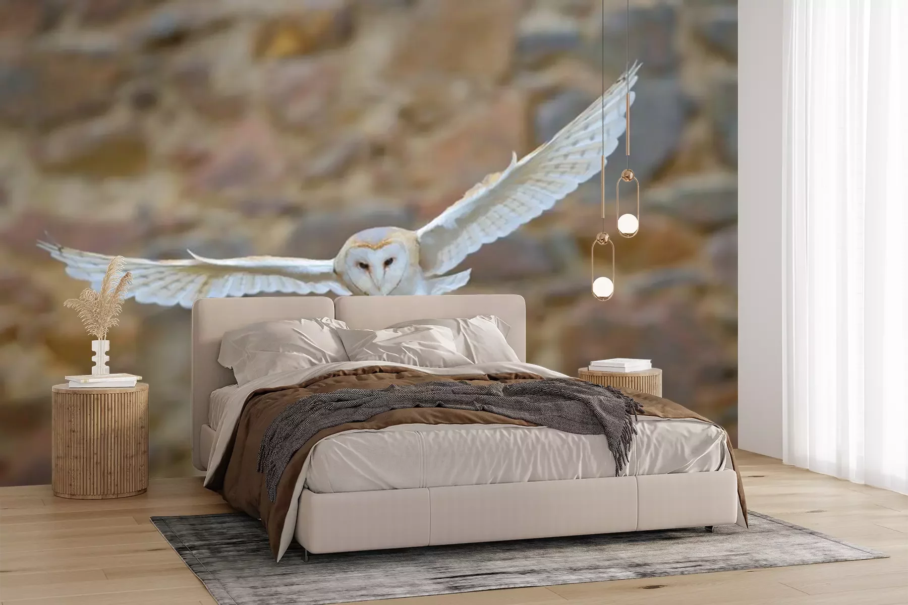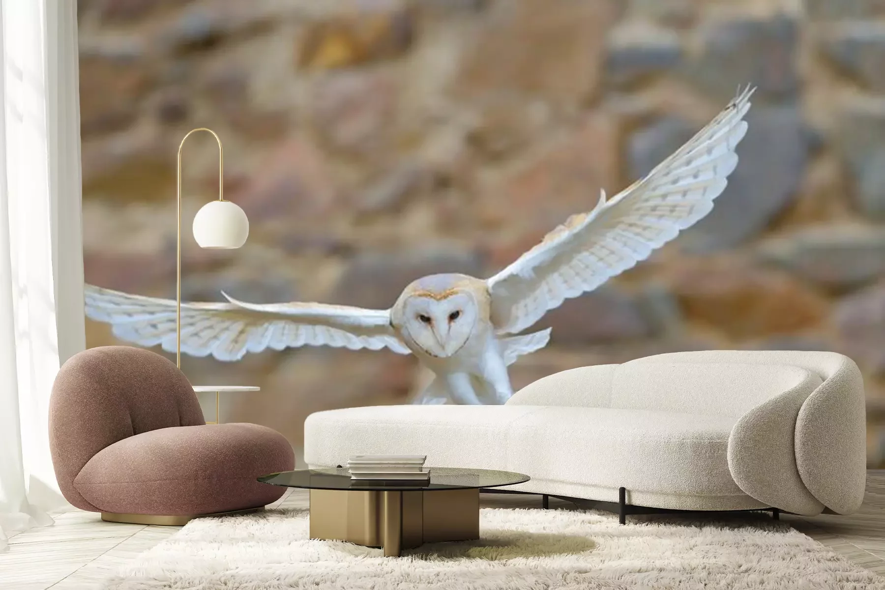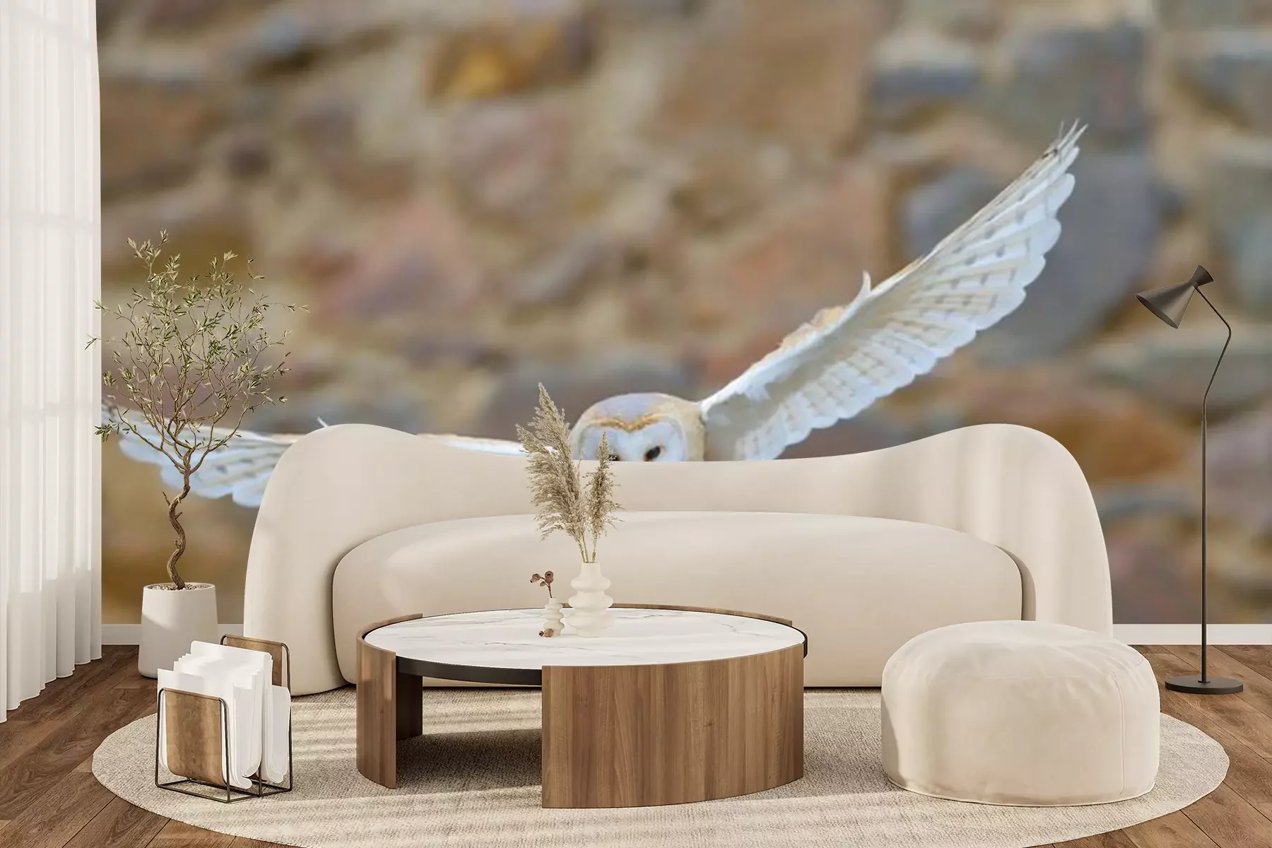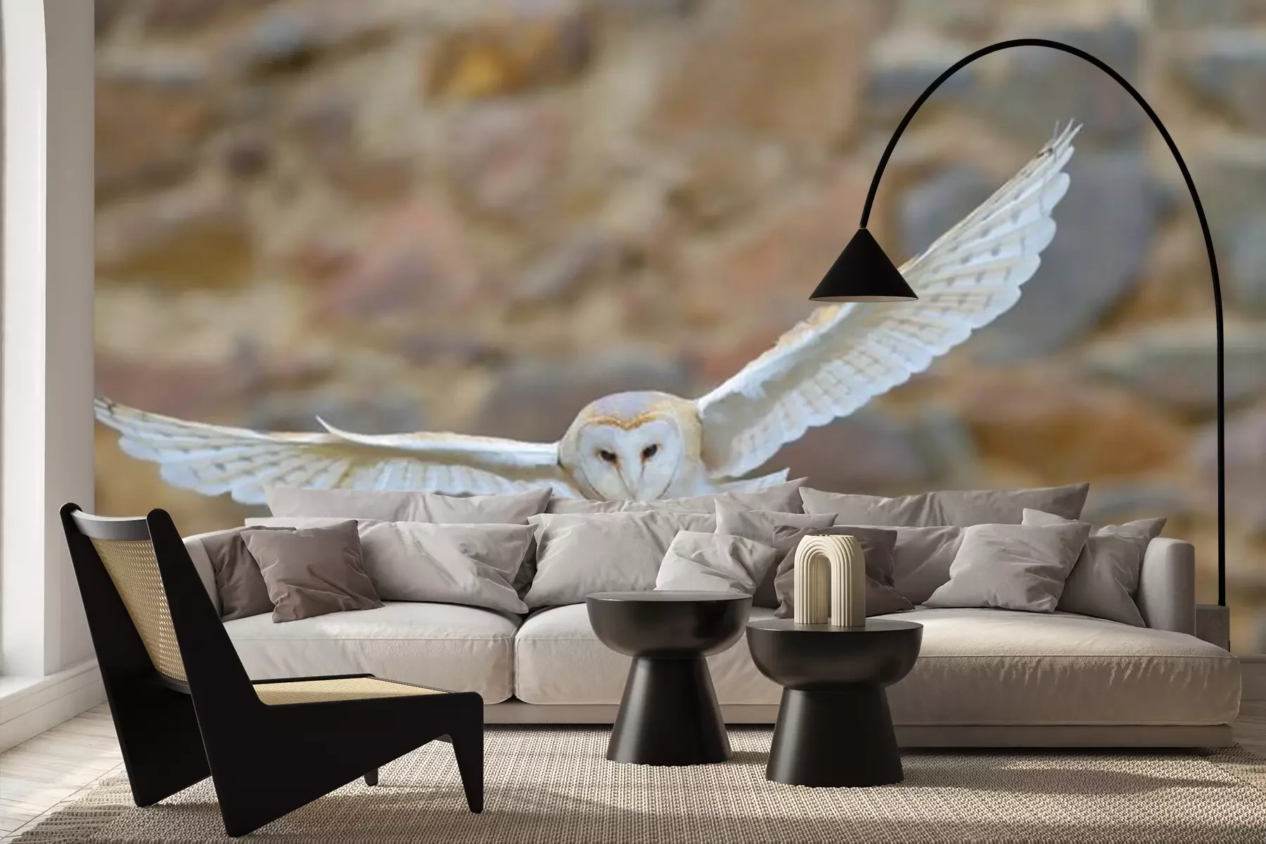 Fotobehang Witte uil in vlucht