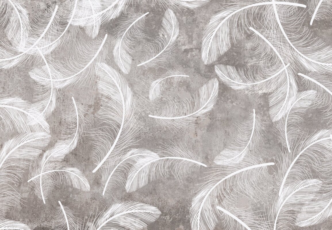 Fotobehang: Witte veren op een grijze betonnen achtergrond, loftstijl