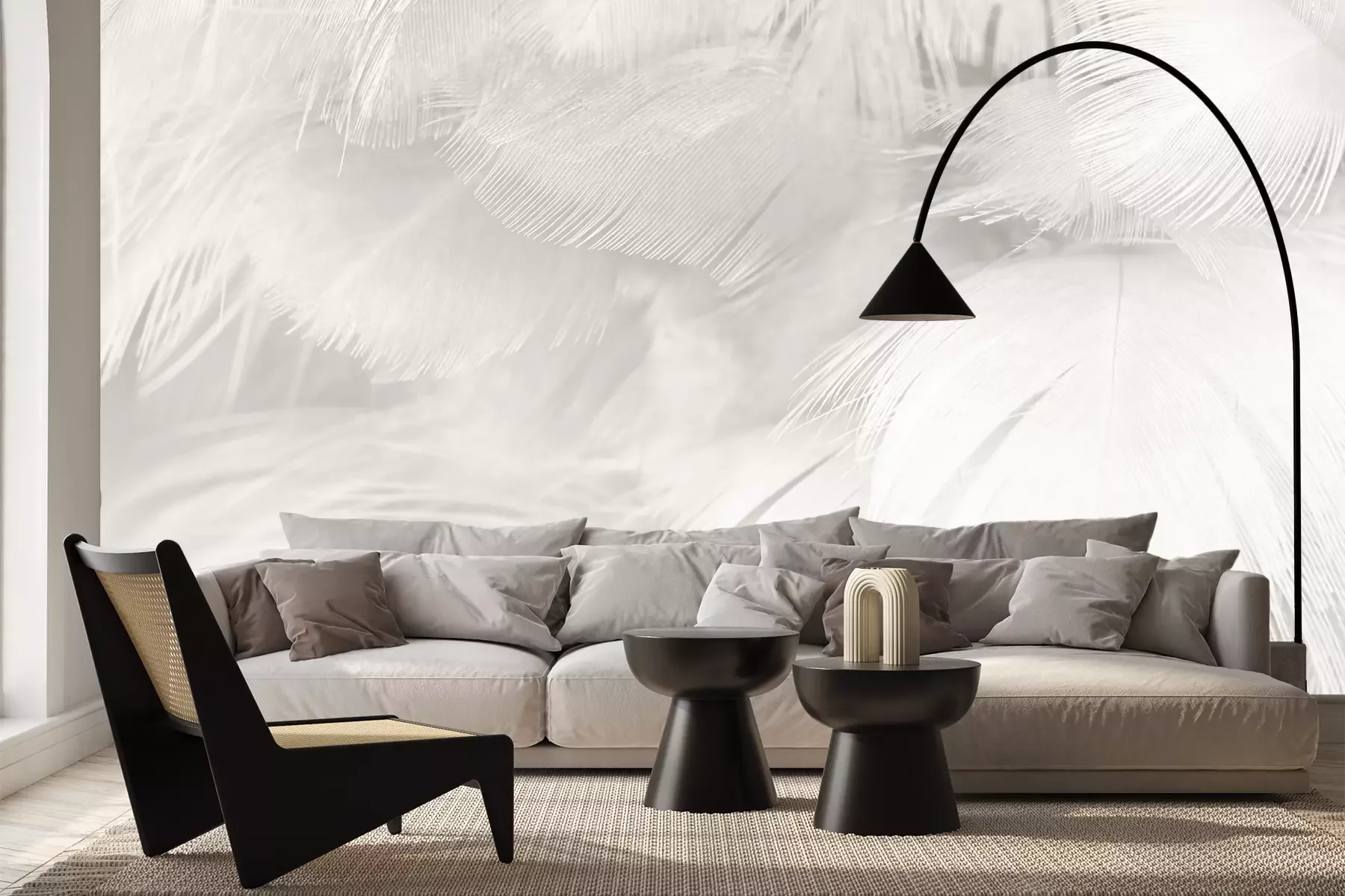 Het materiaal Premium+ is een gestructureerd vinyl op vlies met een gewicht van 255 g/m², dat kleine oneffenheden in de muur effectief camoufleert. De subtiele structuur van fijn zand geeft het oppervlak een exclusieve uitstraling, terwijl de halfmatte afwerking de diepte van de kleuren benadrukt. Het materiaal is dampdoorlatend, waardoor het ook in de keuken en badkamer kan worden gebruikt. De maximale breedte van één baan bedraagt 100 cm – bij grotere afmetingen wordt het fotobehang in meerdere gelijke banen verdeeld. De lijm wordt direct op de muur aangebracht en het behang wordt rand-aan-rand geplakt, wat zorgt voor een esthetisch resultaat zonder zichtbare naden. Het oppervlak kan gemakkelijk worden schoongemaakt door het voorzichtig af te nemen met een vochtige doek.
