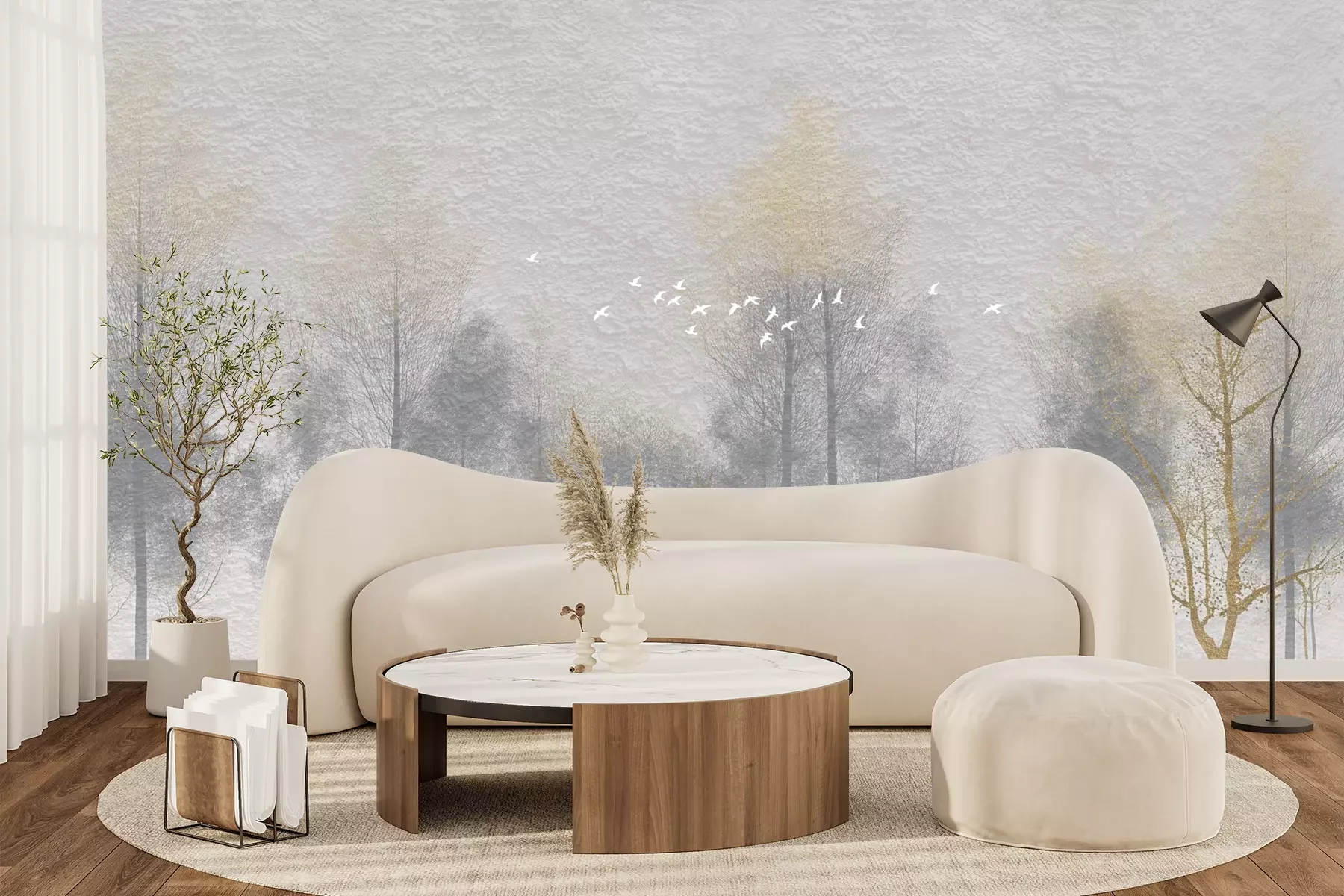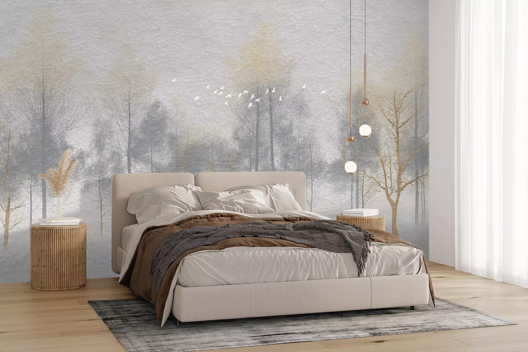 Het materiaal Premium+ is een gestructureerd vinyl op vlies met een gewicht van 255 g/m², dat kleine oneffenheden in de muur effectief camoufleert. De subtiele structuur van fijn zand geeft het oppervlak een exclusieve uitstraling, terwijl de halfmatte afwerking de diepte van de kleuren benadrukt. Het materiaal is dampdoorlatend, waardoor het ook in de keuken en badkamer kan worden gebruikt. De maximale breedte van één baan bedraagt 100 cm – bij grotere afmetingen wordt het fotobehang in meerdere gelijke banen verdeeld. De lijm wordt direct op de muur aangebracht en het behang wordt rand-aan-rand geplakt, wat zorgt voor een esthetisch resultaat zonder zichtbare naden. Het oppervlak kan gemakkelijk worden schoongemaakt door het voorzichtig af te nemen met een vochtige doek.