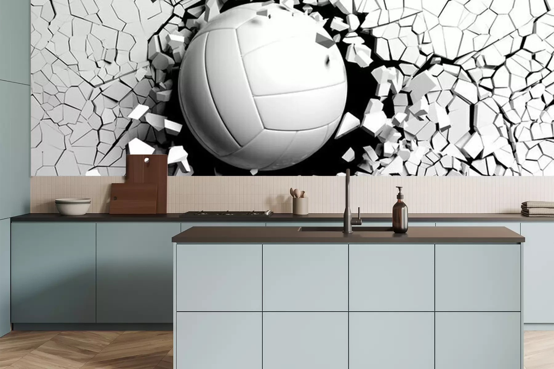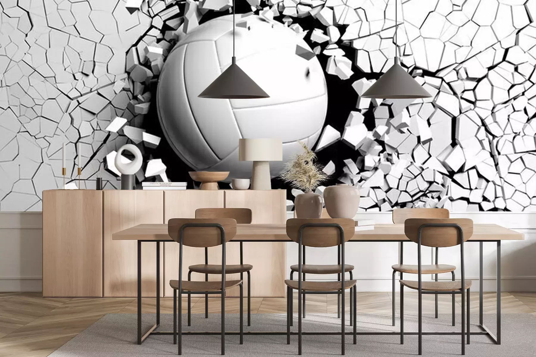 Oranje 3D bal op zwarte muurachtergrondFotobehang