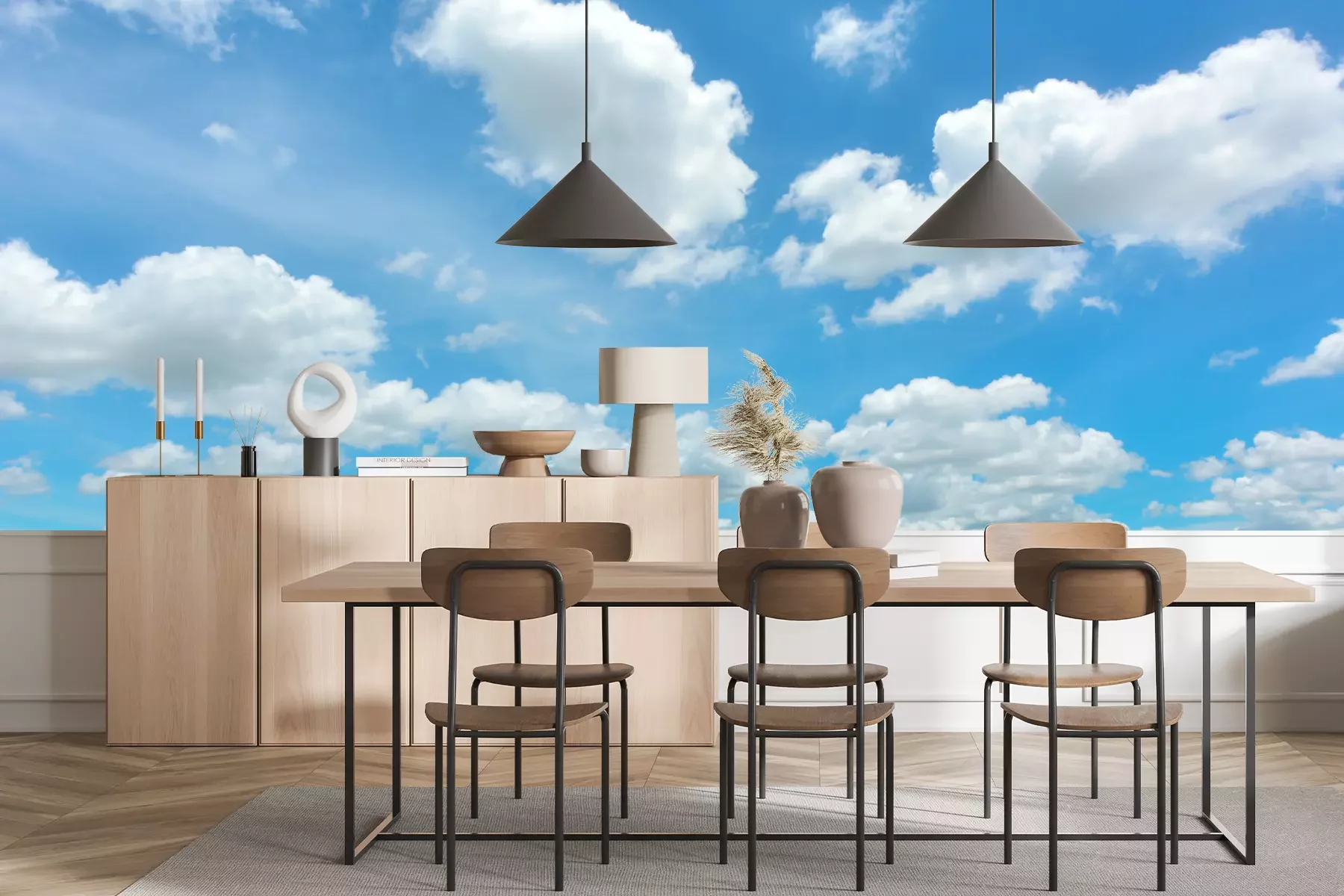 Het materiaal Premium+ is een gestructureerd vinyl op vlies met een gewicht van 255 g/m², dat kleine oneffenheden in de muur effectief camoufleert. De subtiele structuur van fijn zand geeft het oppervlak een exclusieve uitstraling, terwijl de halfmatte afwerking de diepte van de kleuren benadrukt. Het materiaal is dampdoorlatend, waardoor het ook in de keuken en badkamer kan worden gebruikt. De maximale breedte van één baan bedraagt 100 cm – bij grotere afmetingen wordt het fotobehang in meerdere gelijke banen verdeeld. De lijm wordt direct op de muur aangebracht en het behang wordt rand-aan-rand geplakt, wat zorgt voor een esthetisch resultaat zonder zichtbare naden. Het oppervlak kan gemakkelijk worden schoongemaakt door het voorzichtig af te nemen met een vochtige doek.