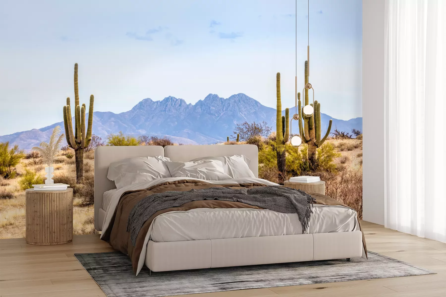 Het materiaal Premium+ is een gestructureerd vinyl op vlies met een gewicht van 255 g/m², dat kleine oneffenheden in de muur effectief camoufleert. De subtiele structuur van fijn zand geeft het oppervlak een exclusieve uitstraling, terwijl de halfmatte afwerking de diepte van de kleuren benadrukt. Het materiaal is dampdoorlatend, waardoor het ook in de keuken en badkamer kan worden gebruikt. De maximale breedte van één baan bedraagt 100 cm – bij grotere afmetingen wordt het fotobehang in meerdere gelijke banen verdeeld. De lijm wordt direct op de muur aangebracht en het behang wordt rand-aan-rand geplakt, wat zorgt voor een esthetisch resultaat zonder zichtbare naden. Het oppervlak kan gemakkelijk worden schoongemaakt door het voorzichtig af te nemen met een vochtige doek.