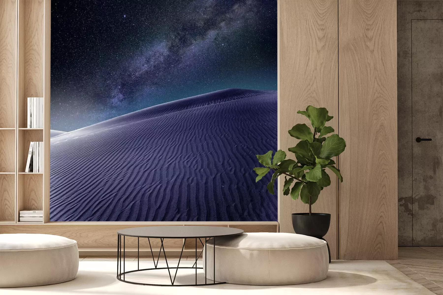 Fotobehang Woestijnduin en uitzicht op de melkweg
