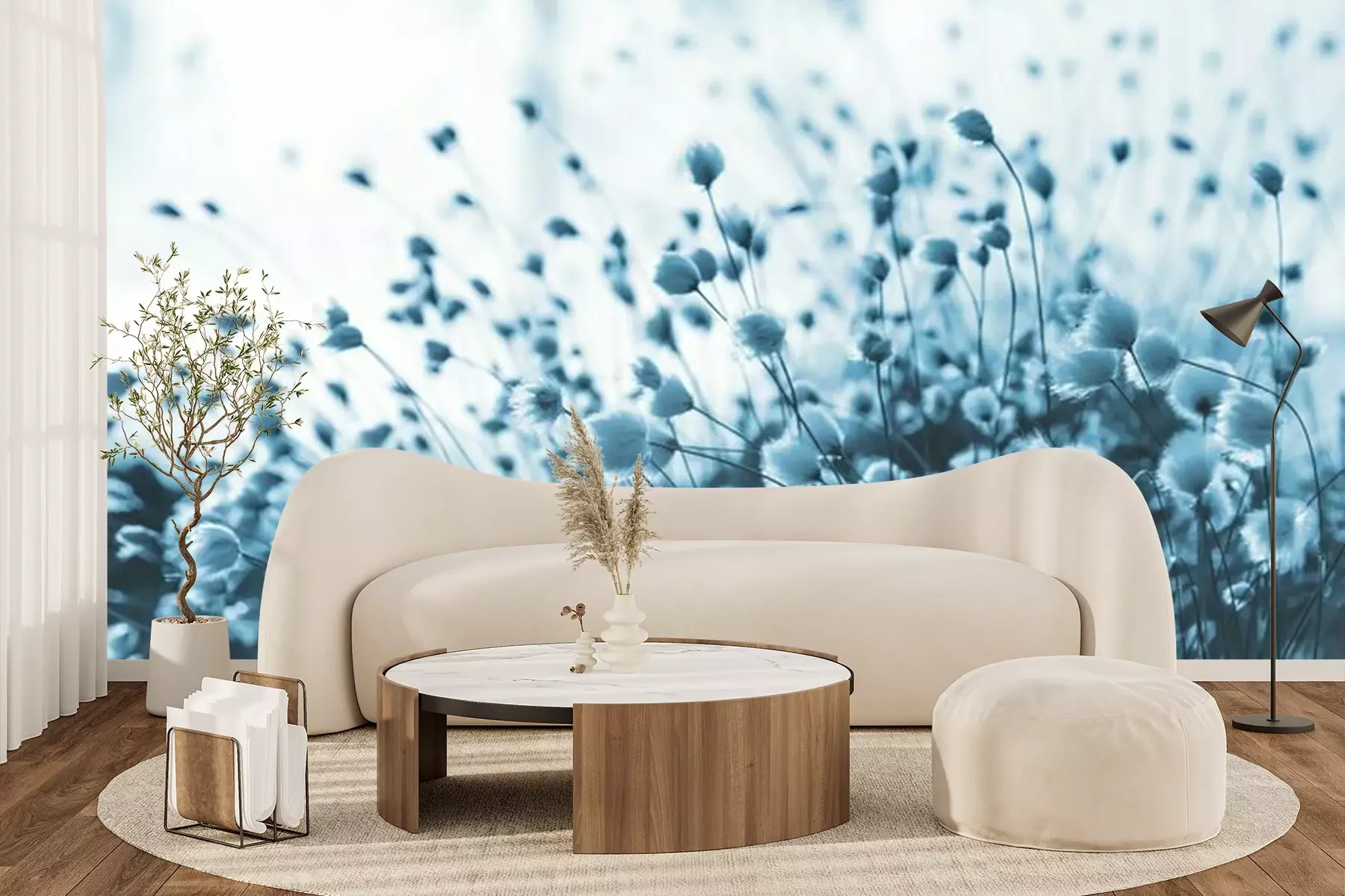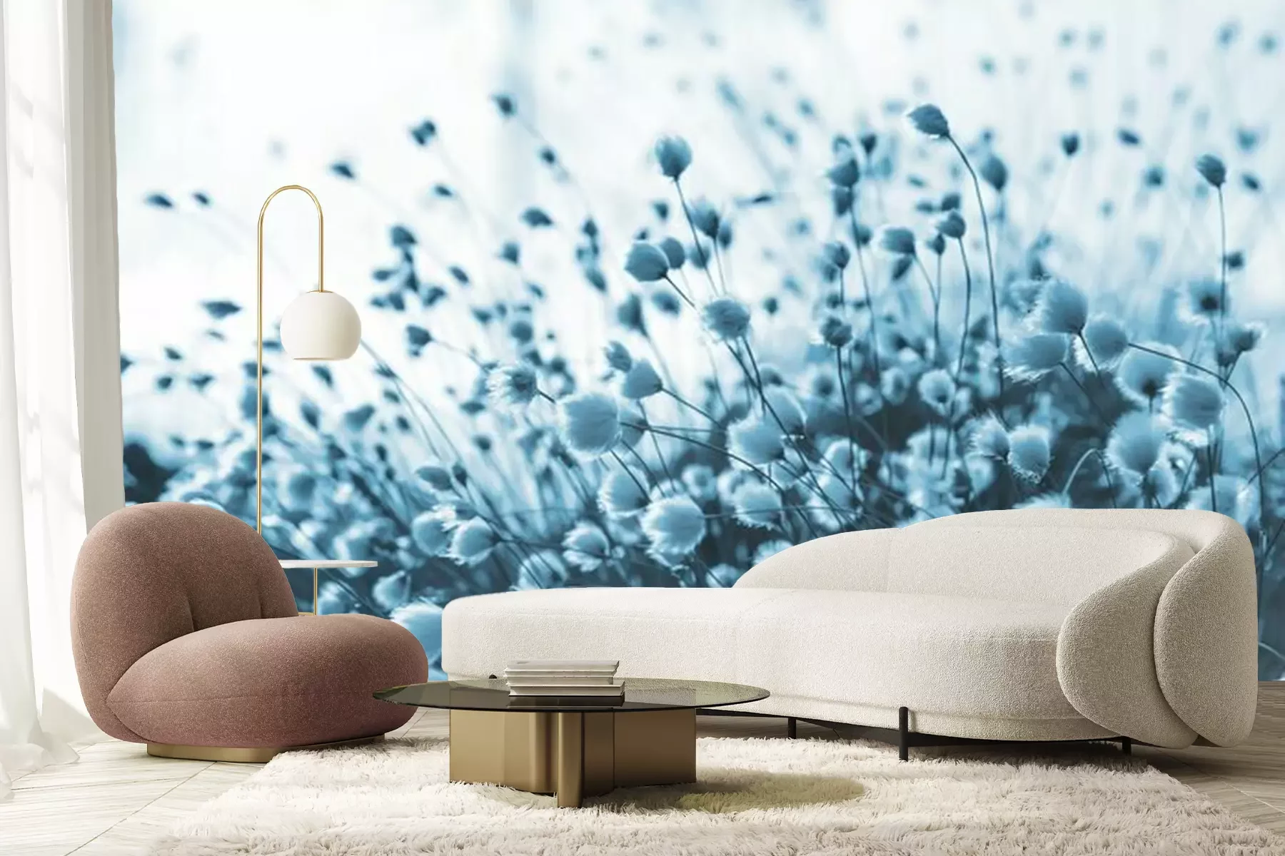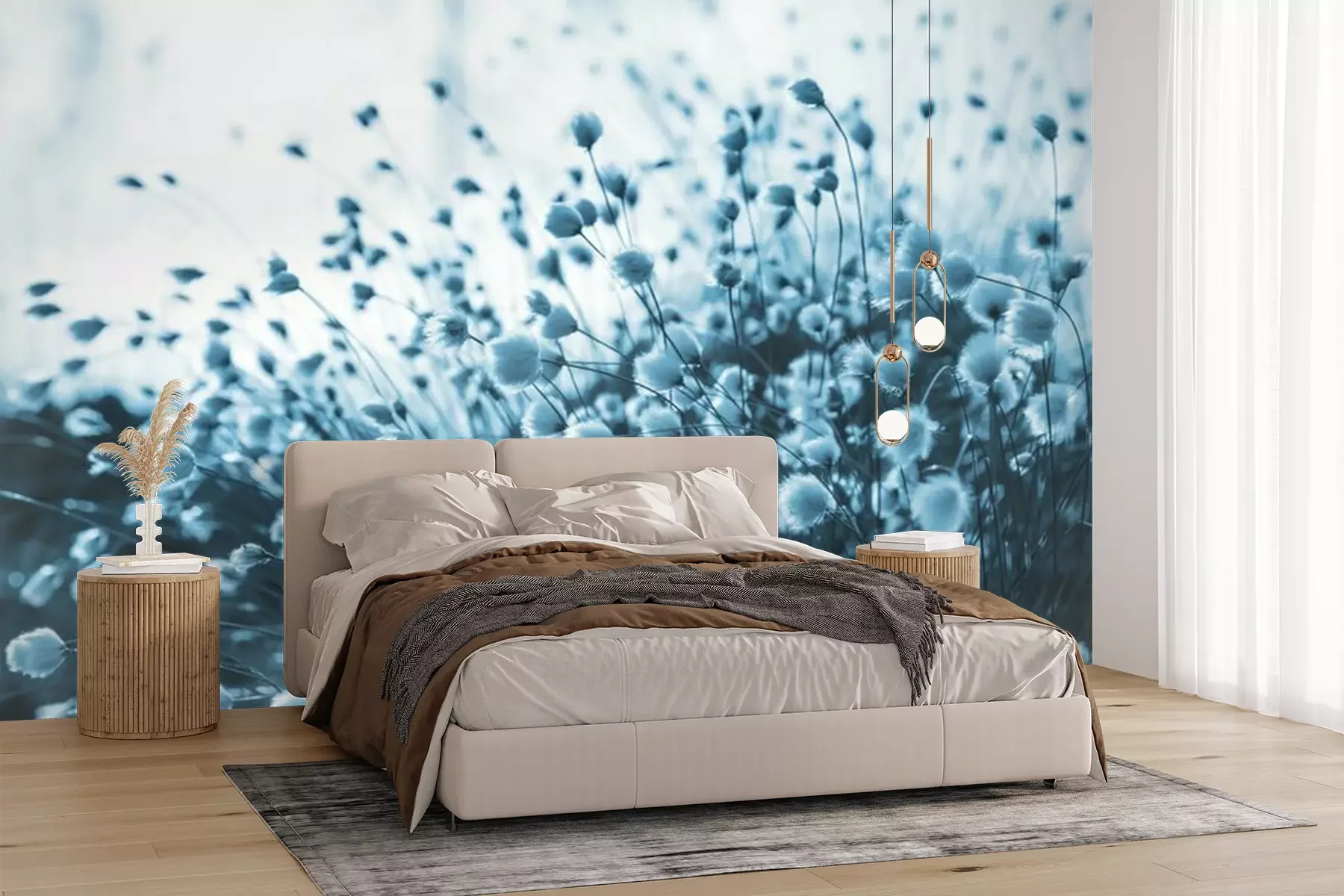 Wilde bloemen en planten in Sunset LandscapeFotobehang
