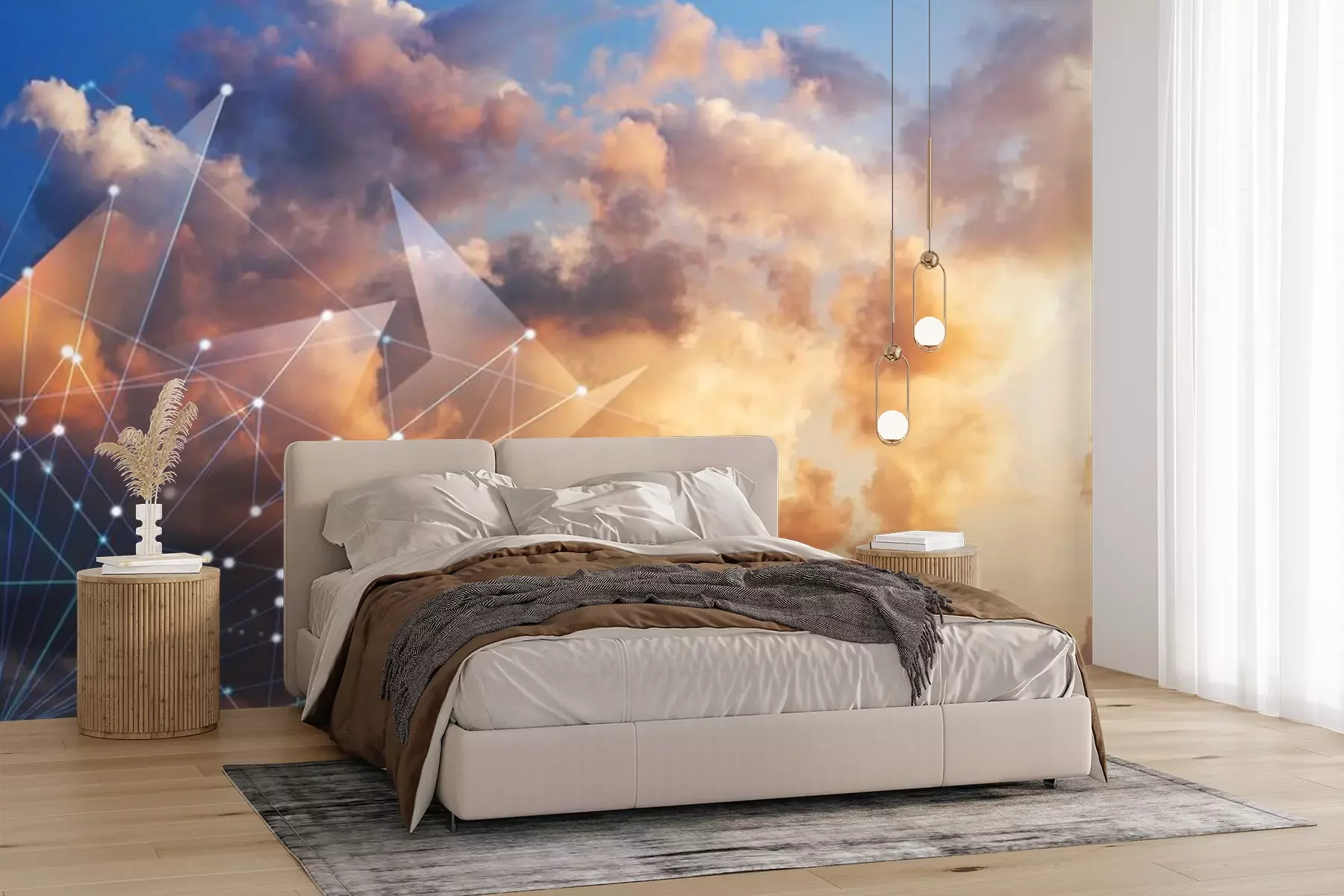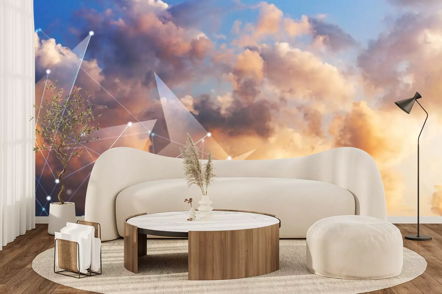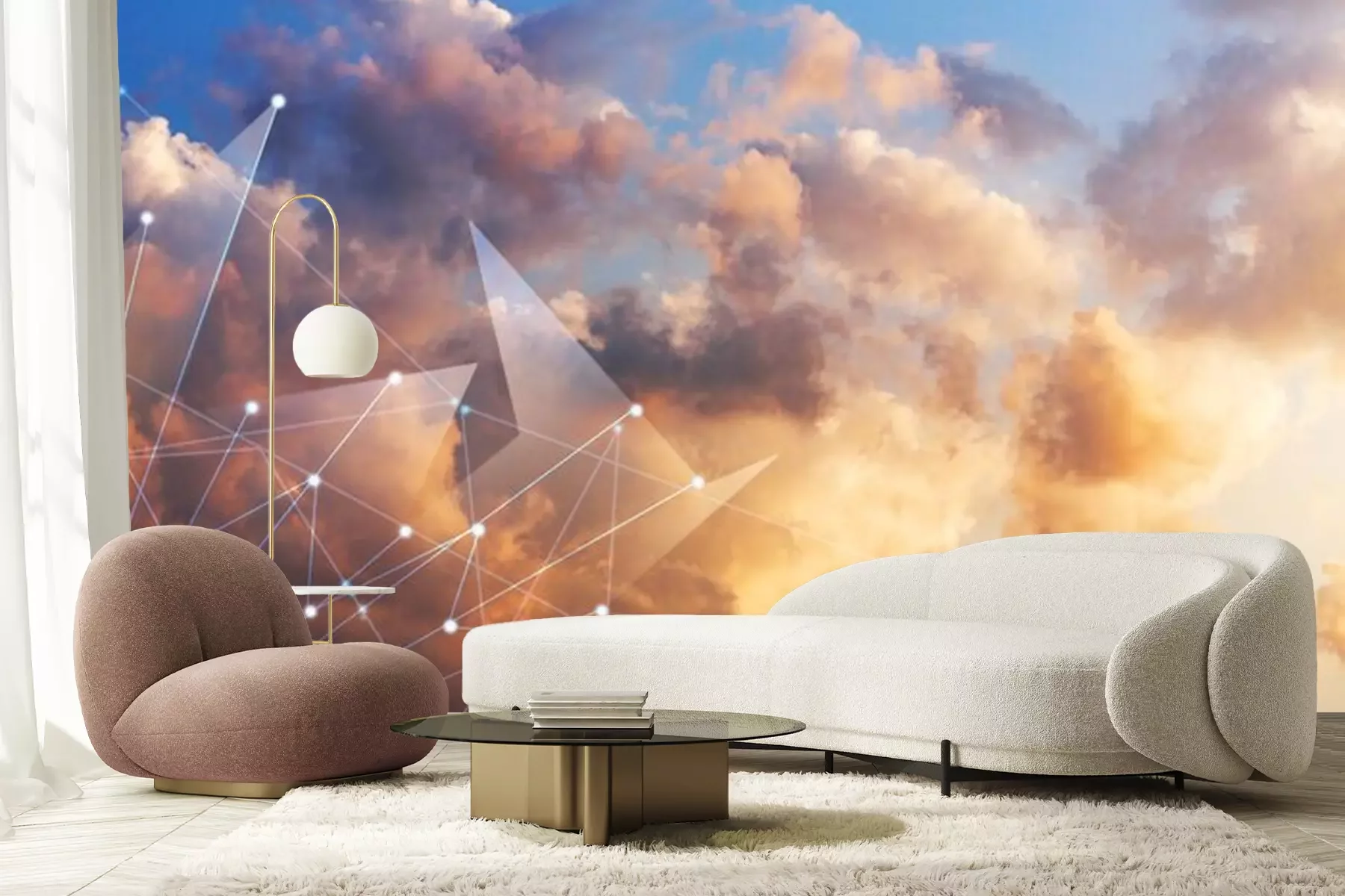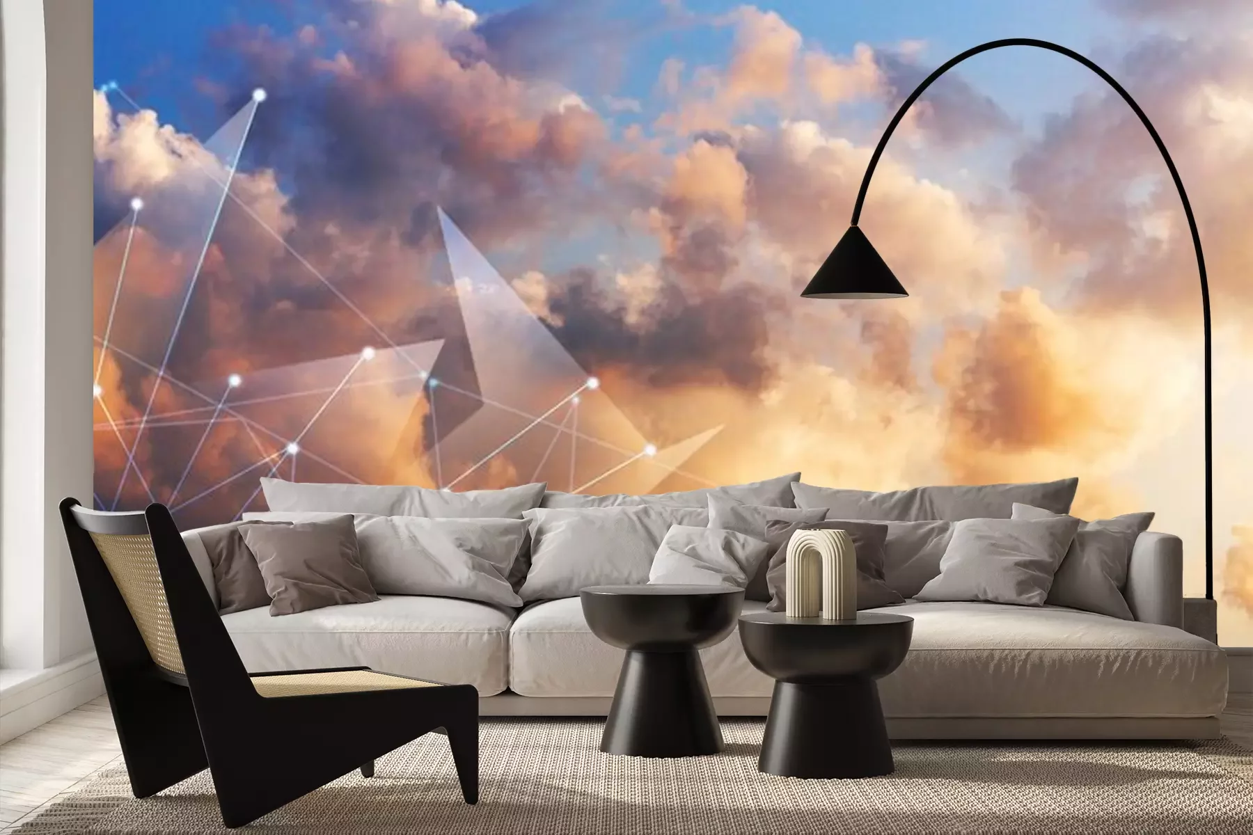 Fotobehang Wolken gecombineerd met geometrische lijnen