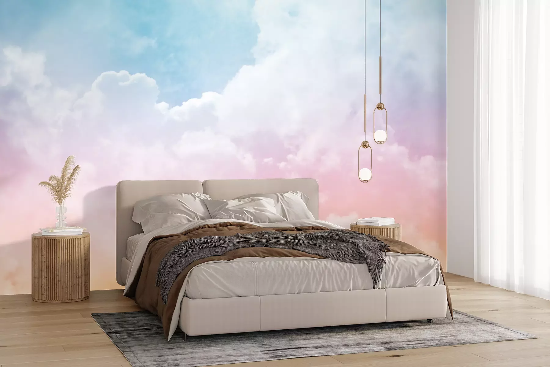 *Korting is niet van toepassing op lijmen, accessoires en cadeaubonnen.Een pastelkleurig fotobehang is een uitstekende manier om een gezellige, zintuiglijk rustgevende ruimte te creëren – perfect om te ontspannen en even te ontsnappen aan de drukte van de stad. Het zachte, opgewekte kleurenpalet brengt een positieve sfeer in het interieur en verheldert tegelijk donkere kamers waar weinig natuurlijk licht binnenkomt. We hebben verschillende interieurideeën waarin ons fotobehang goed tot zijn recht komt. Wolken in regenboogtinten zijn een ideale optie voor de kinderkamer – zowel voor meisjes als in een gedeelde kamer van broers en zussen. Een pastelkleurig fotobehang overheerst het interieur niet, maar vormt een subtiele achtergrond voor spel, studie en rust. Dit ontwerp is ook een uitstekende keuze voor de tienerkamer. Een romantisch fotobehang – lucht en wolken in regenboogkleuren – zorgt voor een lichte, charmante inrichting met tijdloze uitstraling. Dankzij de hoge kwaliteit van de materialen waaruit onze wanddecoraties bestaan, kan het gepresenteerde ontwerp zelfs zonder zorgen in de badkamer worden gebruikt – ook op muren die zich direct naast het bad of de wastafel bevinden. Hiervoor is een gelamineerd fotobehang nodig. Wolken gedrukt op een oppervlak met beschermende folie behouden hun perfecte uitstraling, zelfs in ruimtes met hoge luchtvochtigheid. Dit is een ideale oplossing voor wie graag ontspannende baden neemt – het zachte, rustgevende motief vormt de perfecte achtergrond om tot rust te komen na een lange dag. En als we het toch over ontspanning hebben: ook in de sfeervolle inrichting van de slaapkamer komt ons fotobehang perfect tot zijn recht. Lucht en wolken gehuld in regenbooglicht en de lichtheid van de compositie maken het mogelijk een droomachtige oase van rust te creëren. Dit ontwerp vormt een prachtige aanvulling op een romantisch, minimalistisch of boho-interieur en brengt harmonie en elegantie in elke ruimte.