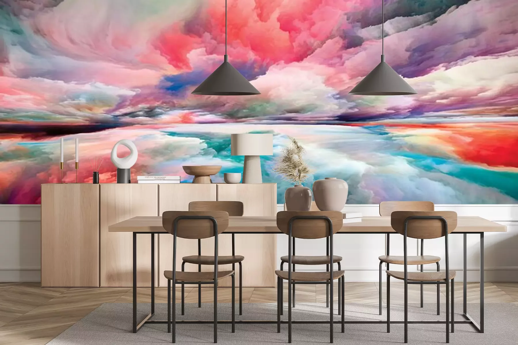 Fotobehang Wolken in regenboogkleuren