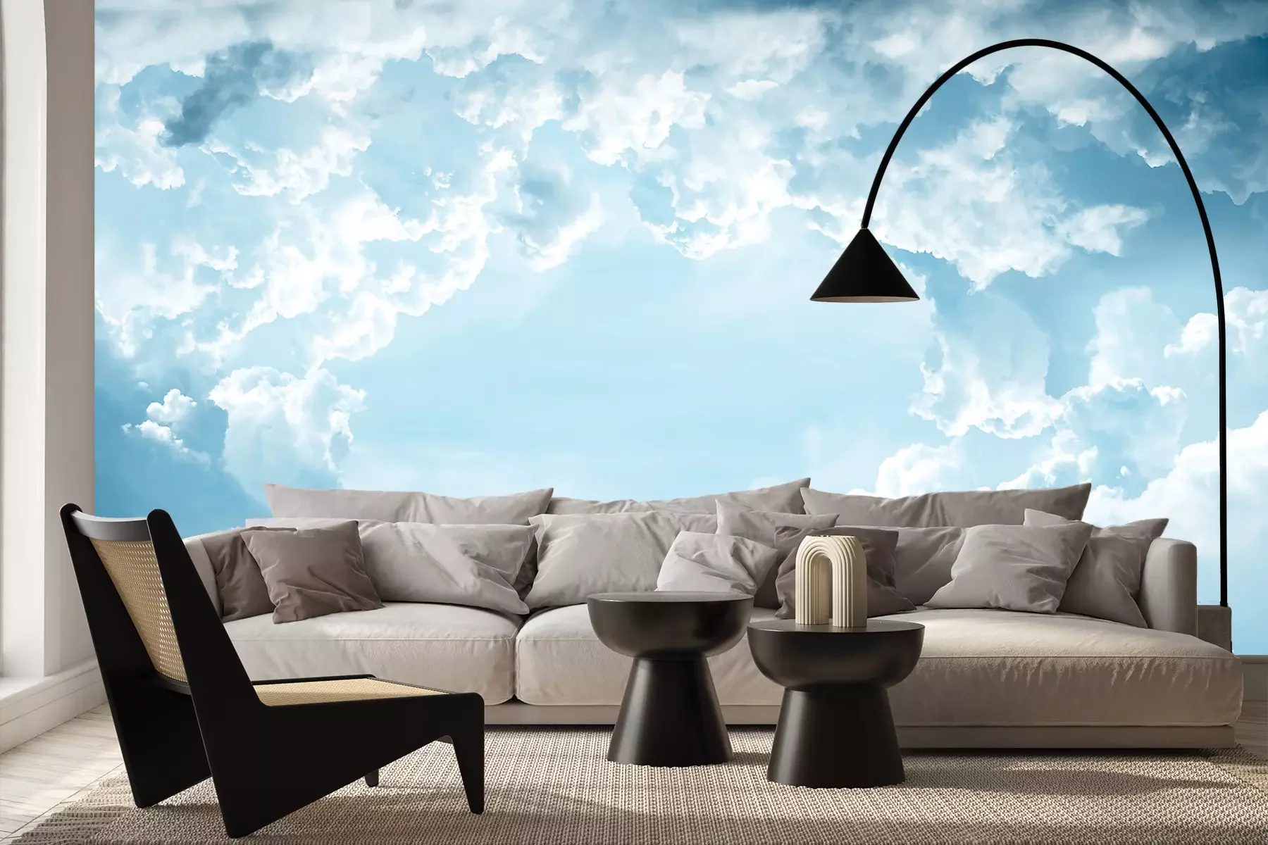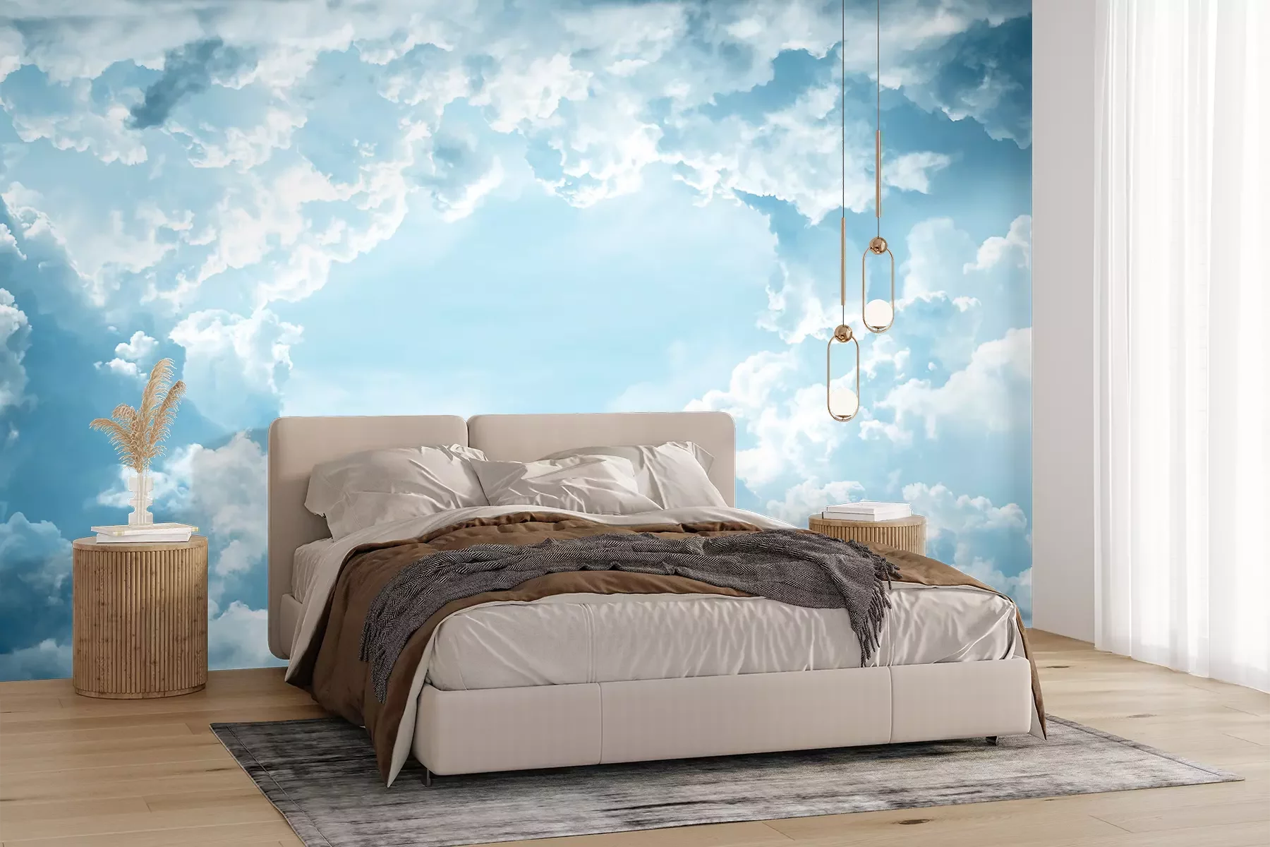 Het materiaal Premium+ is een gestructureerd vinyl op vlies met een gewicht van 255 g/m², dat kleine oneffenheden in de muur effectief camoufleert. De subtiele structuur van fijn zand geeft het oppervlak een exclusieve uitstraling, terwijl de halfmatte afwerking de diepte van de kleuren benadrukt. Het materiaal is dampdoorlatend, waardoor het ook in de keuken en badkamer kan worden gebruikt. De maximale breedte van één baan bedraagt 100 cm – bij grotere afmetingen wordt het fotobehang in meerdere gelijke banen verdeeld. De lijm wordt direct op de muur aangebracht en het behang wordt rand-aan-rand geplakt, wat zorgt voor een esthetisch resultaat zonder zichtbare naden. Het oppervlak kan gemakkelijk worden schoongemaakt door het voorzichtig af te nemen met een vochtige doek.