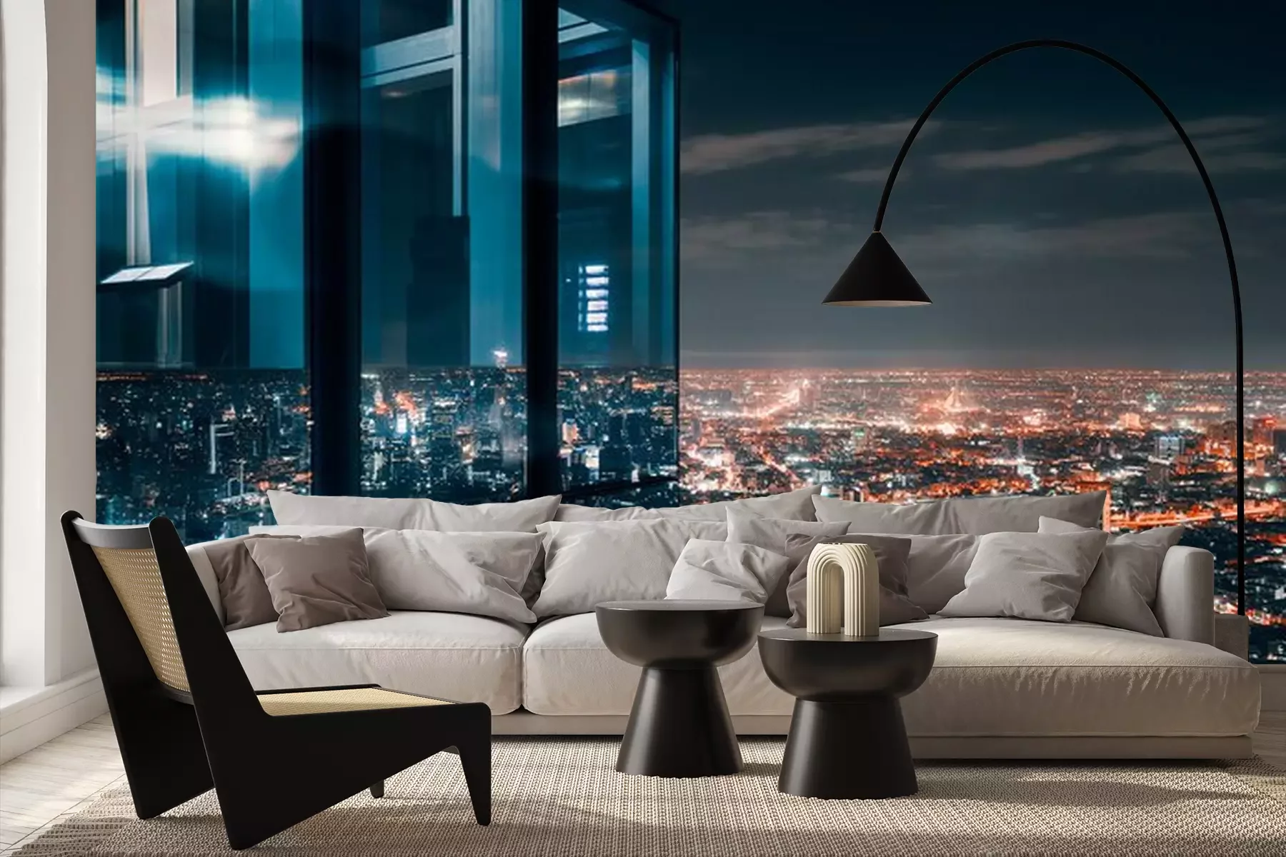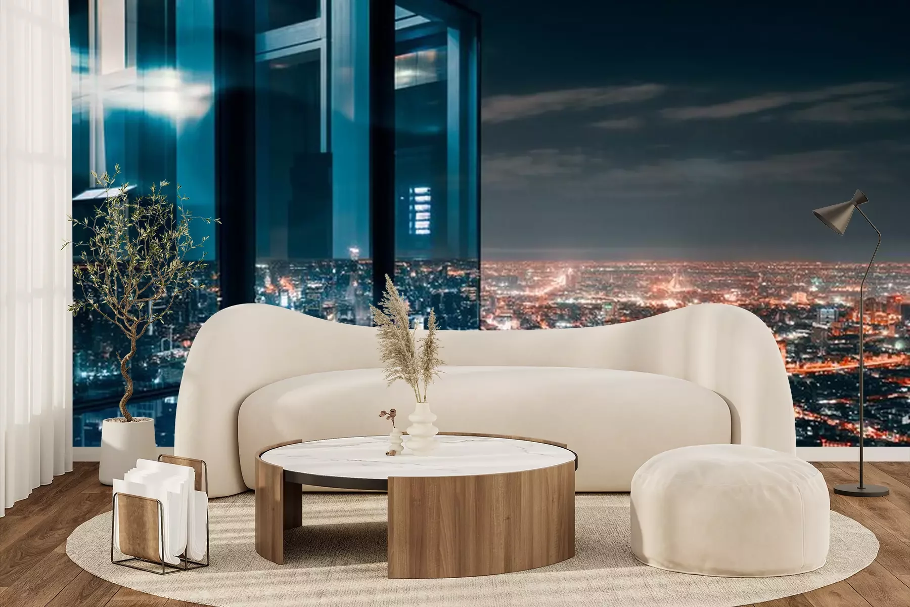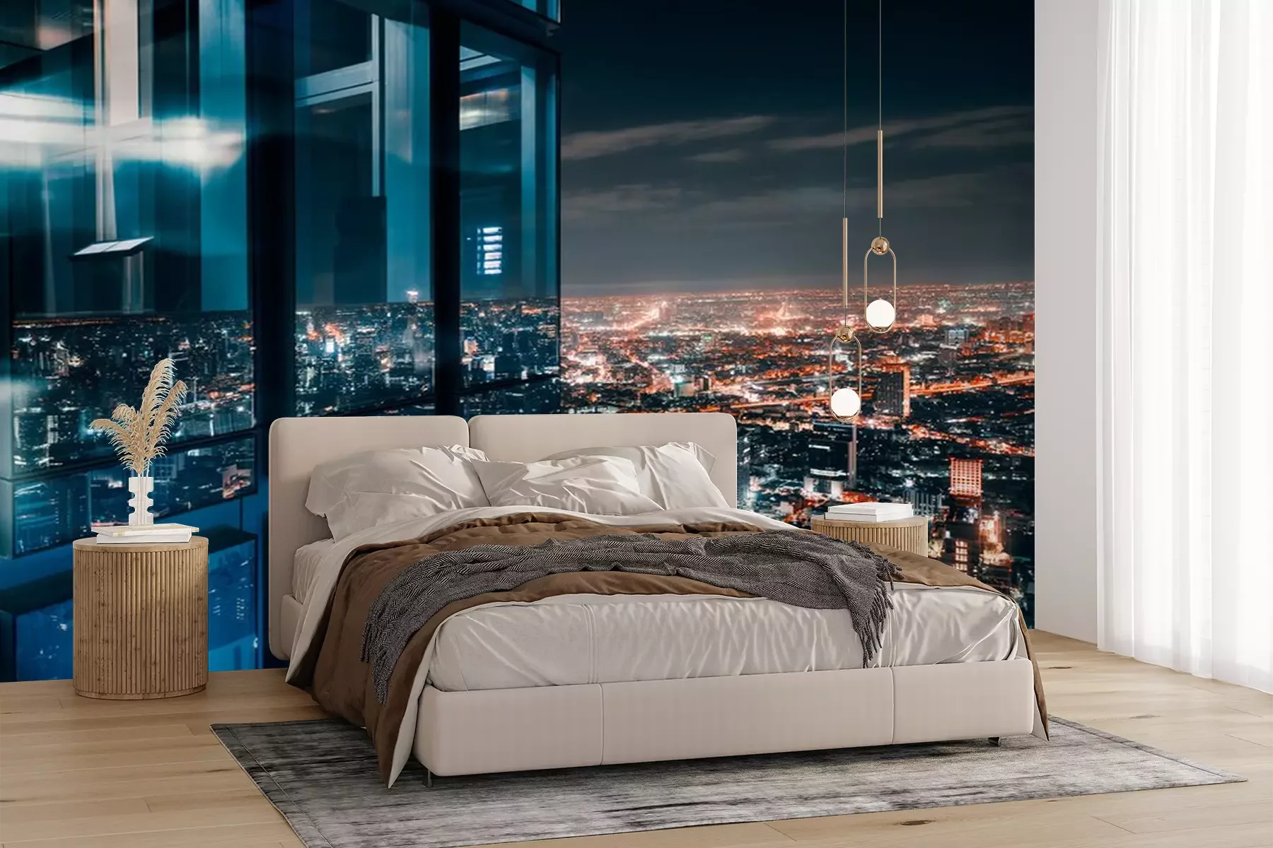 Fotobehang Wolkenkrabbers in Downtown bij nacht