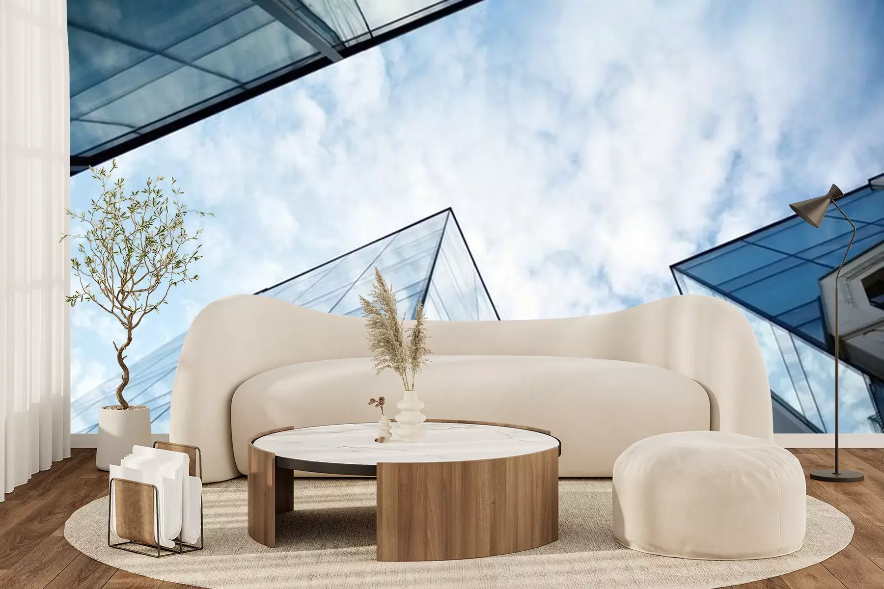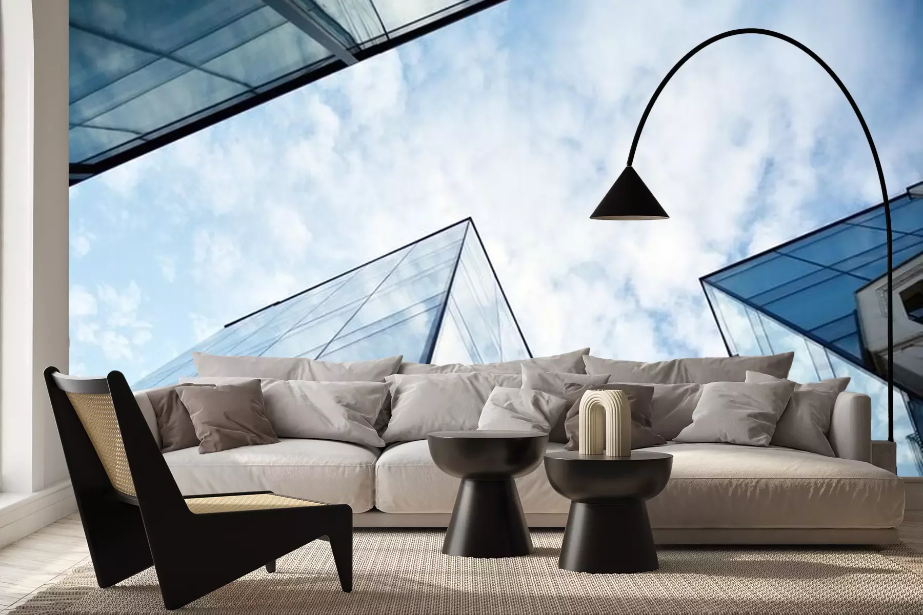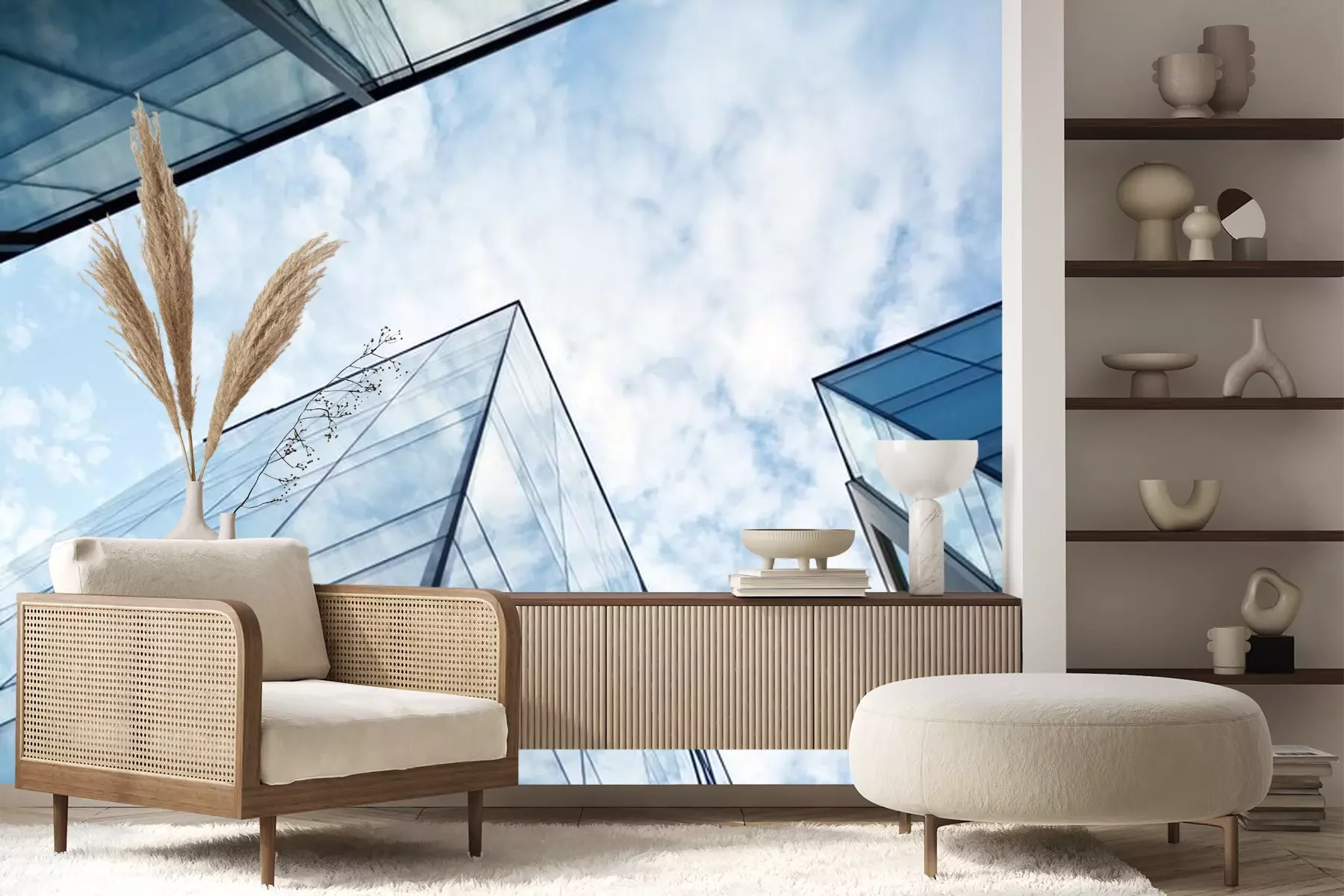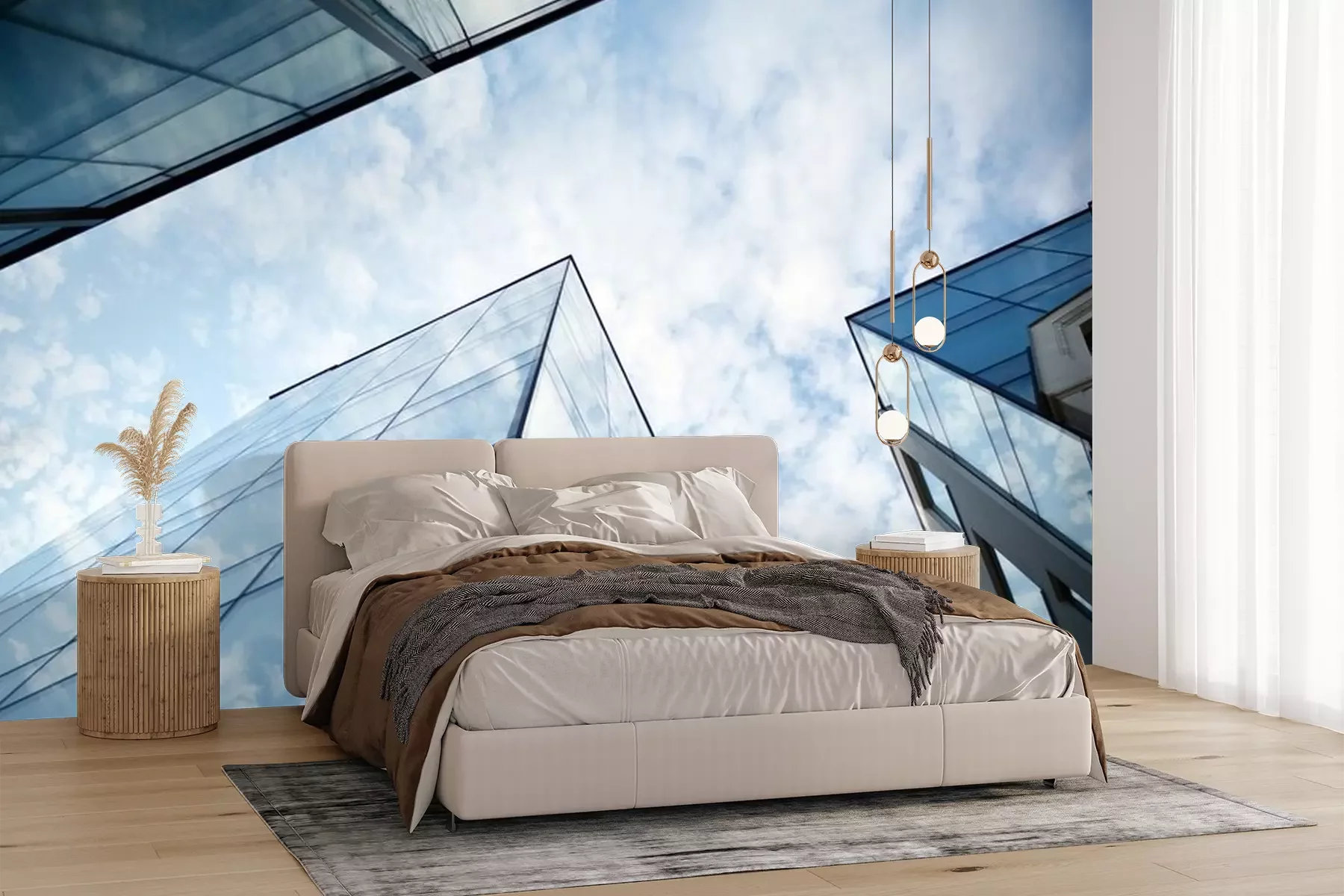 Fotobehang Wolkenkrabbers op een achtergrond van wolken