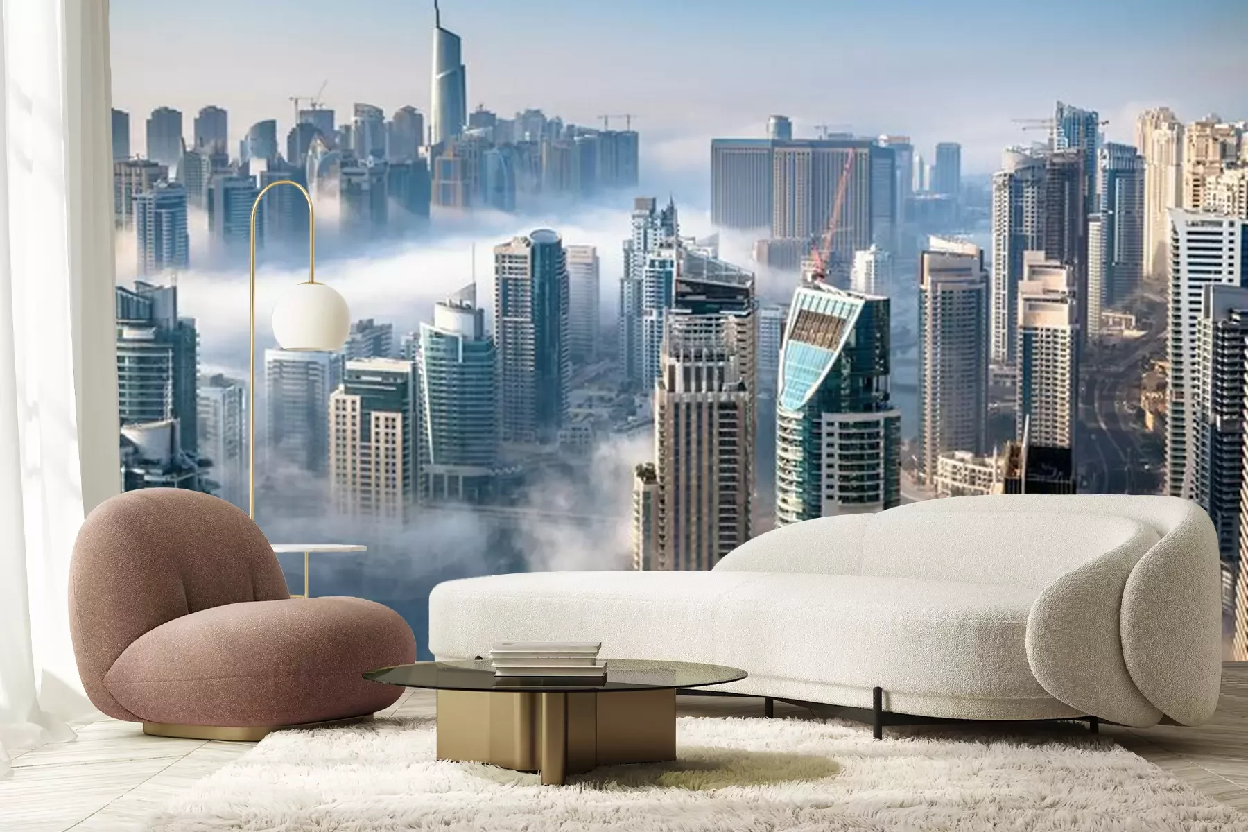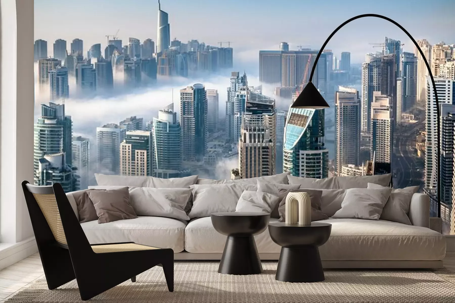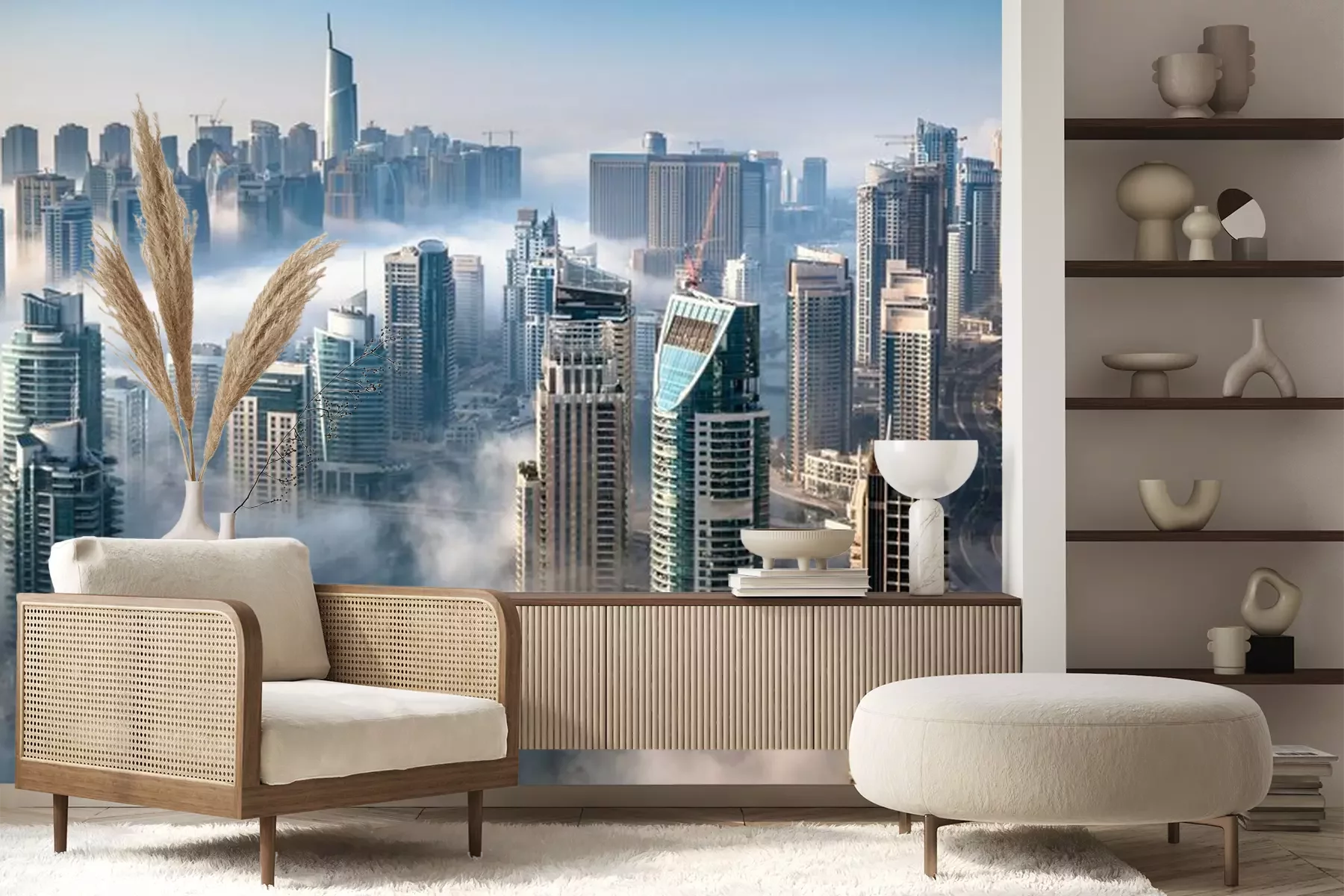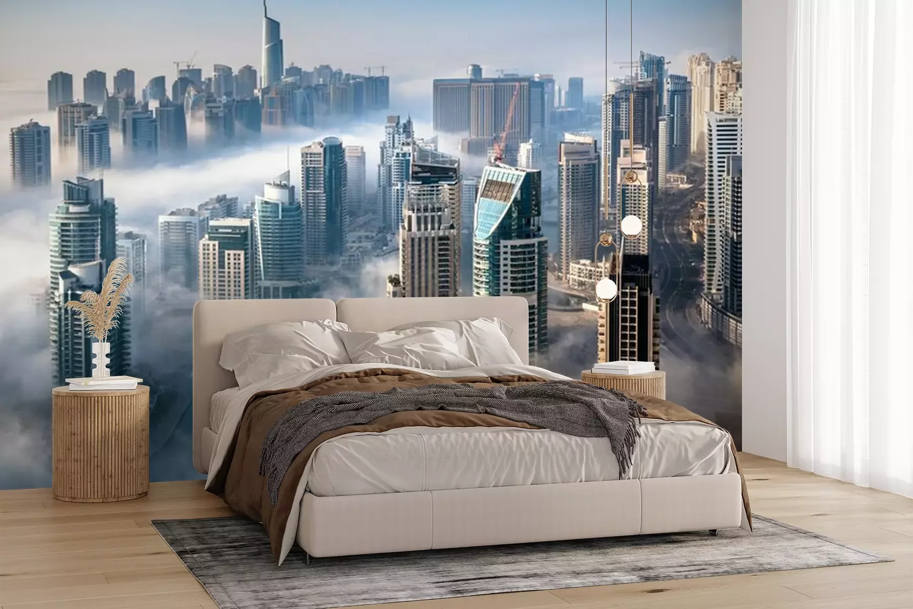 Fotobehang Wolkenkrabbers 's ochtends in de mist