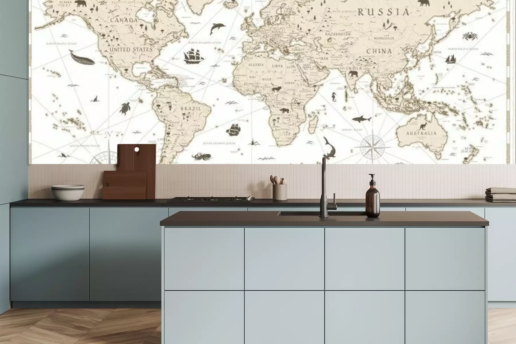 Gedetailleerde wereldkaart in blauwtintenProbleemloze bezorging verzorgd door vertrouwde vervoerders