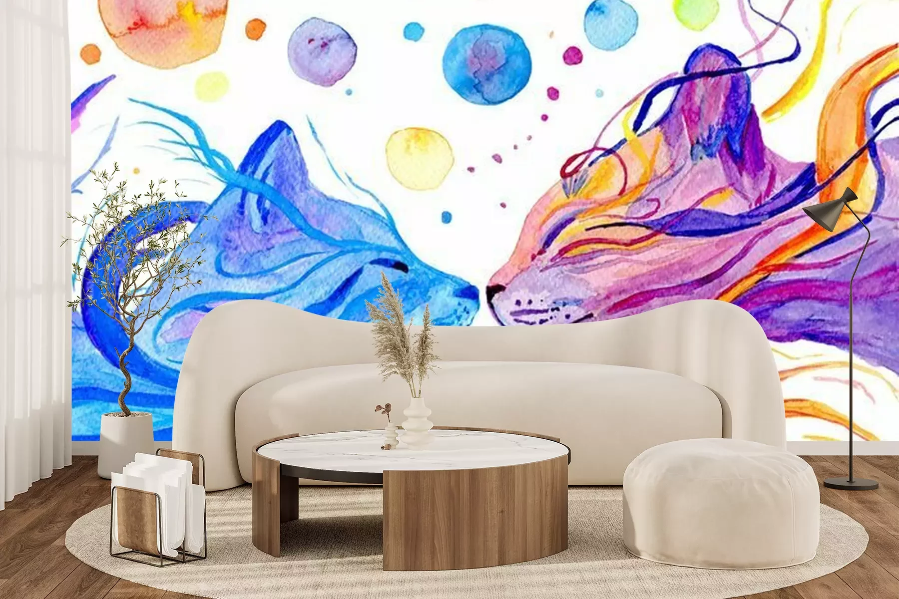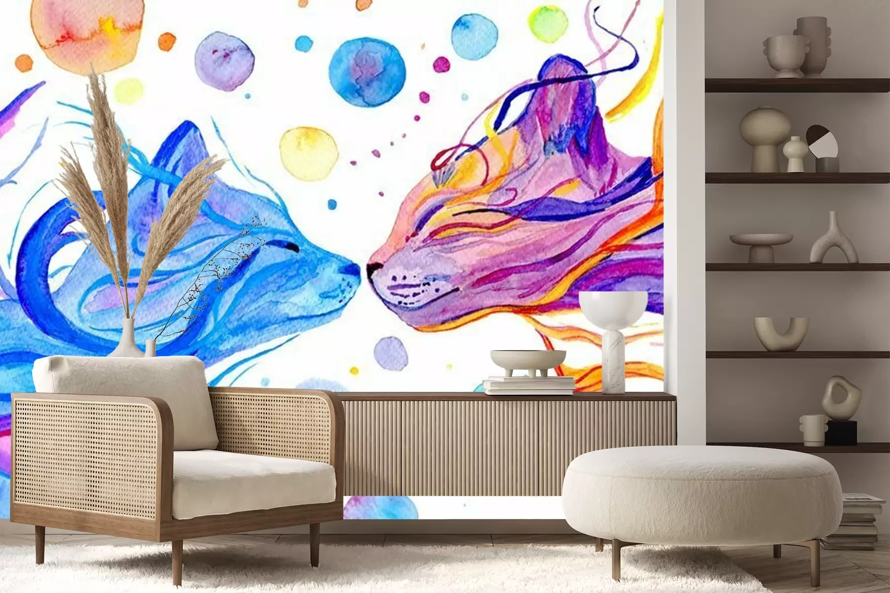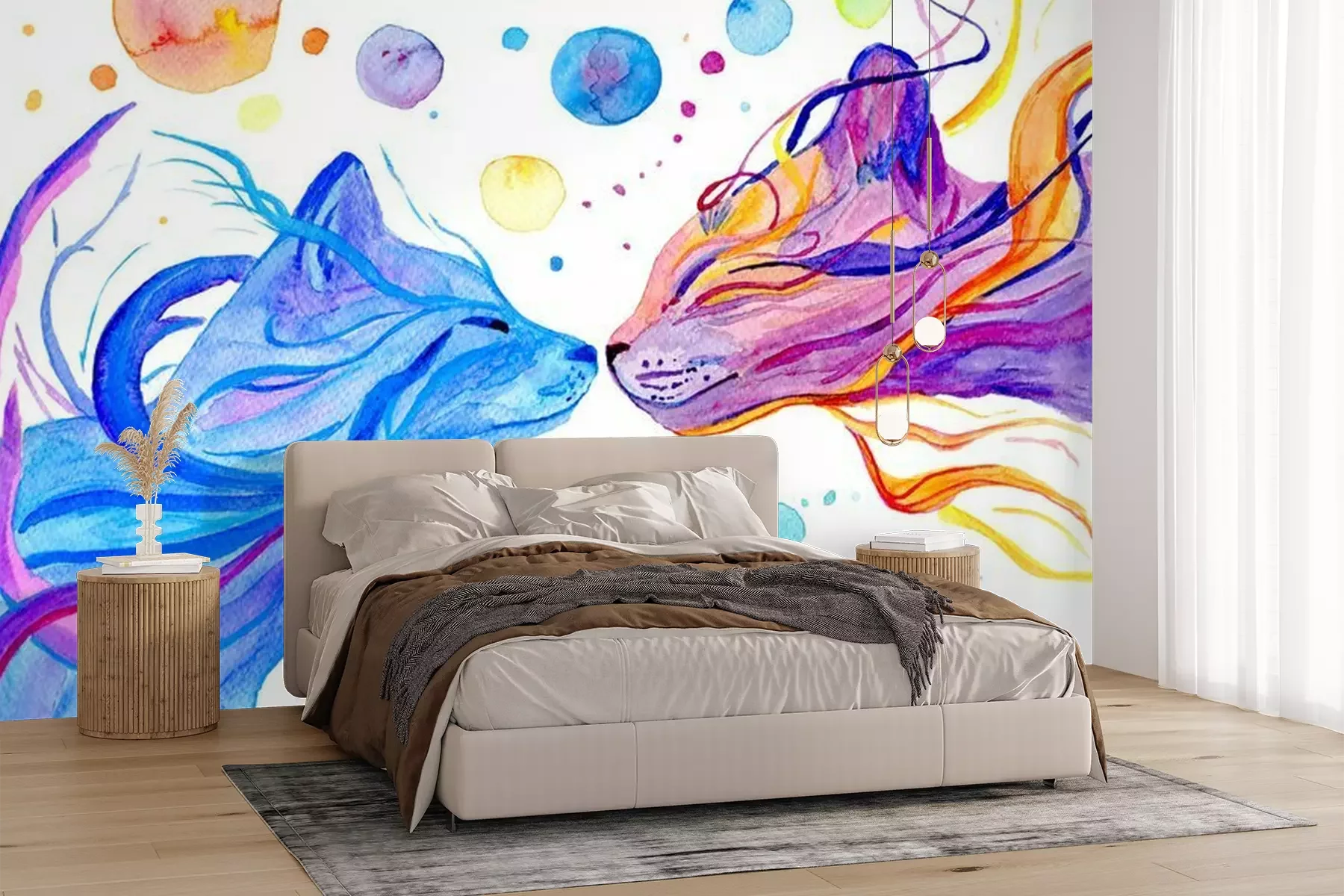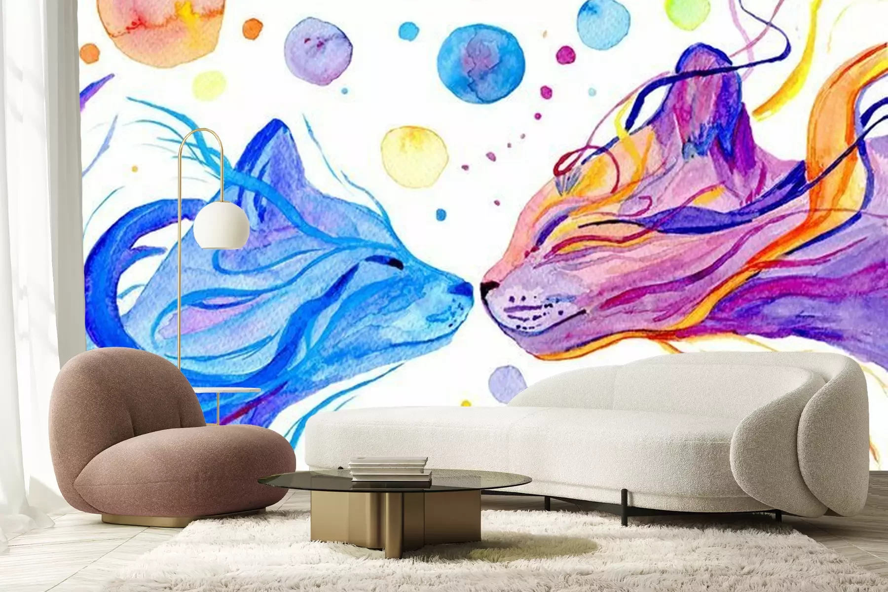 Fotobehang Watercolor multi colored cats isolated on white background. Hand painted illustration.