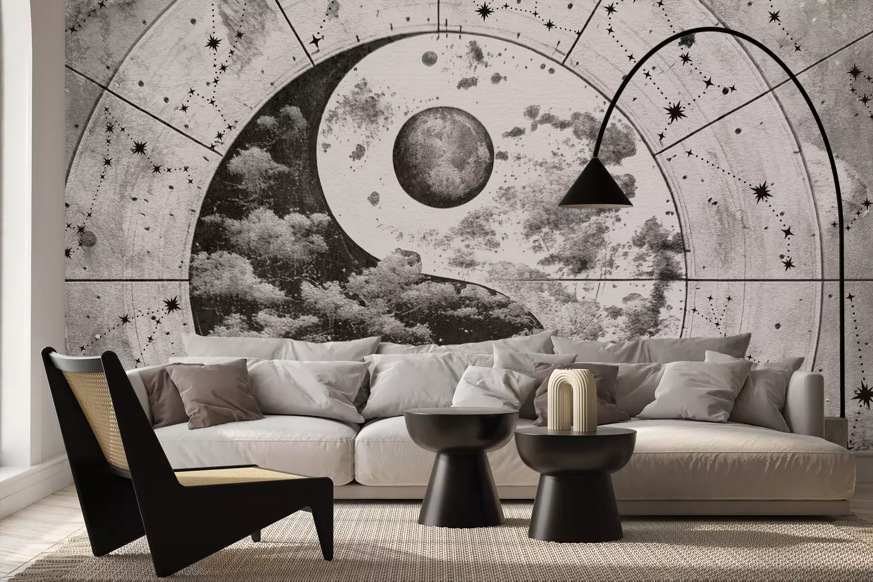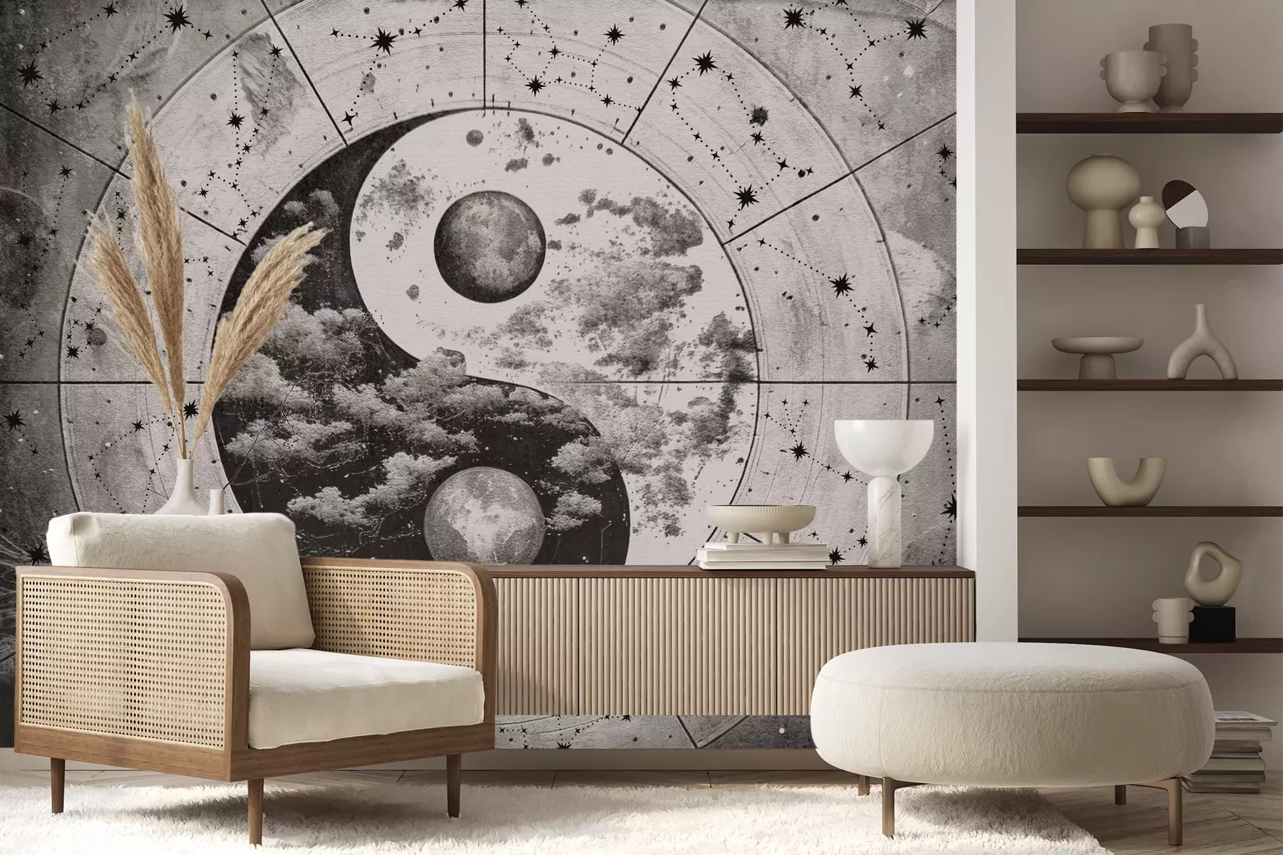 Het materiaal Premium+ is een gestructureerd vinyl op vlies met een gewicht van 255 g/m², dat kleine oneffenheden in de muur effectief camoufleert. De subtiele structuur van fijn zand geeft het oppervlak een exclusieve uitstraling, terwijl de halfmatte afwerking de diepte van de kleuren benadrukt. Het materiaal is dampdoorlatend, waardoor het ook in de keuken en badkamer kan worden gebruikt. De maximale breedte van één baan bedraagt 100 cm – bij grotere afmetingen wordt het fotobehang in meerdere gelijke banen verdeeld. De lijm wordt direct op de muur aangebracht en het behang wordt rand-aan-rand geplakt, wat zorgt voor een esthetisch resultaat zonder zichtbare naden. Het oppervlak kan gemakkelijk worden schoongemaakt door het voorzichtig af te nemen met een vochtige doek.