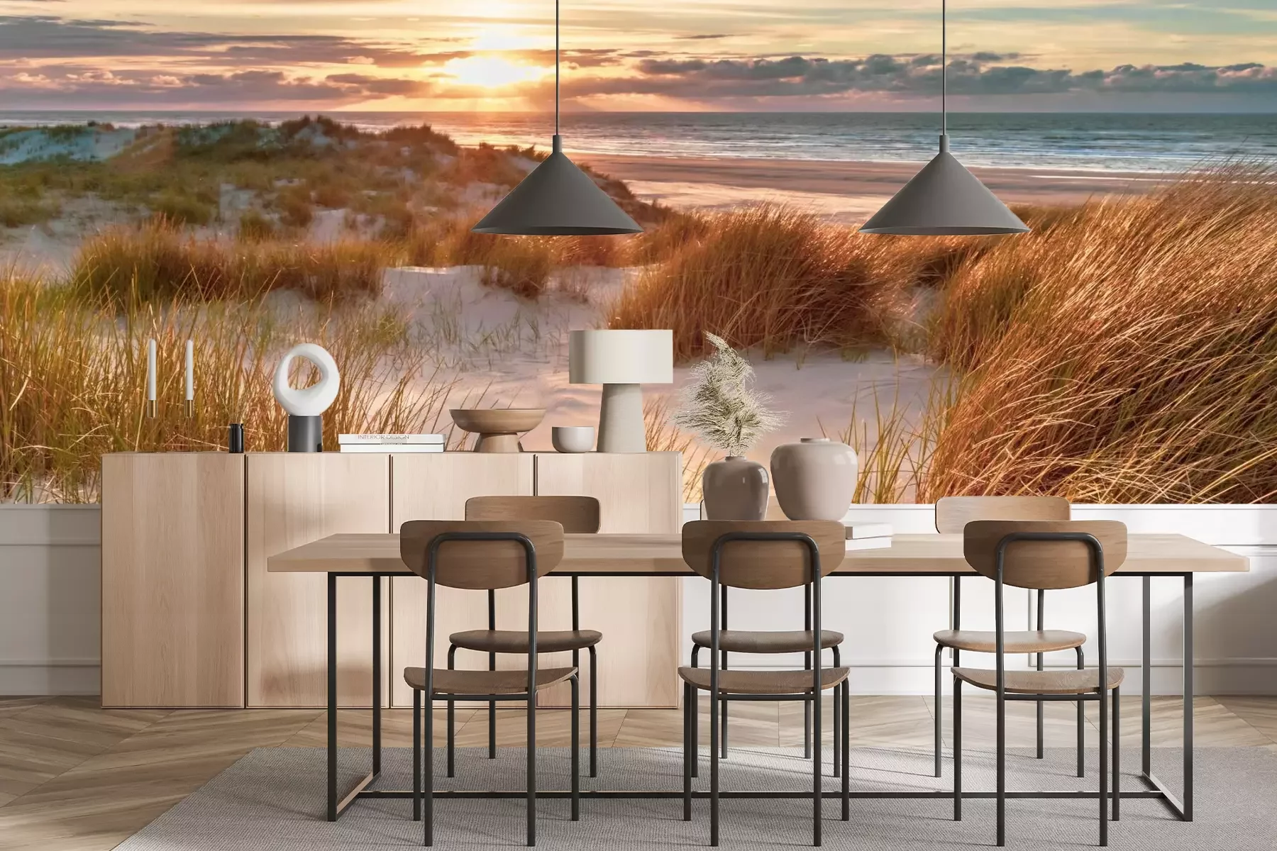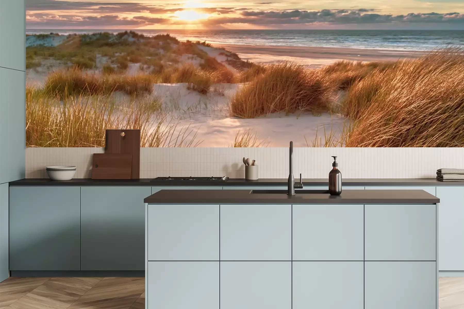Het materiaal Premium+ is een gestructureerd vinyl op vlies met een gewicht van 255 g/m², dat kleine oneffenheden in de muur effectief camoufleert. De subtiele structuur van fijn zand geeft het oppervlak een exclusieve uitstraling, terwijl de halfmatte afwerking de diepte van de kleuren benadrukt. Het materiaal is dampdoorlatend, waardoor het ook in de keuken en badkamer kan worden gebruikt. De maximale breedte van één baan bedraagt 100 cm – bij grotere afmetingen wordt het fotobehang in meerdere gelijke banen verdeeld. De lijm wordt direct op de muur aangebracht en het behang wordt rand-aan-rand geplakt, wat zorgt voor een esthetisch resultaat zonder zichtbare naden. Het oppervlak kan gemakkelijk worden schoongemaakt door het voorzichtig af te nemen met een vochtige doek.