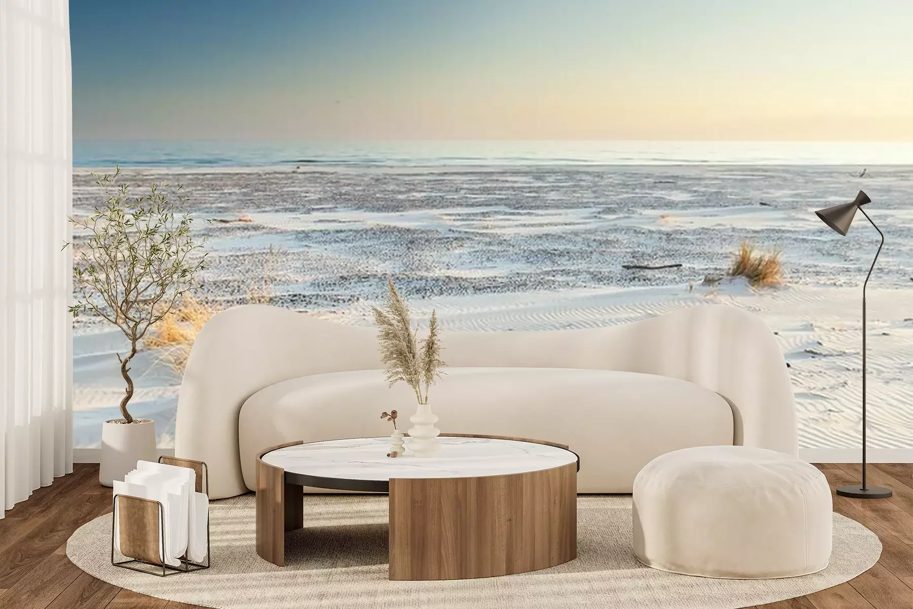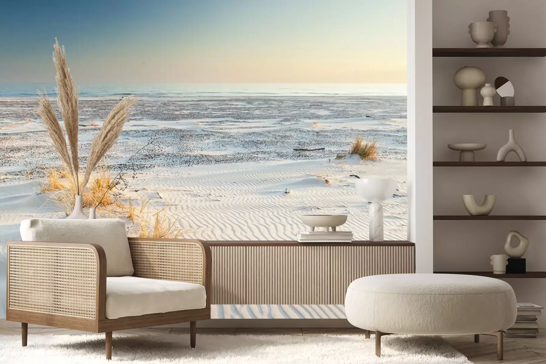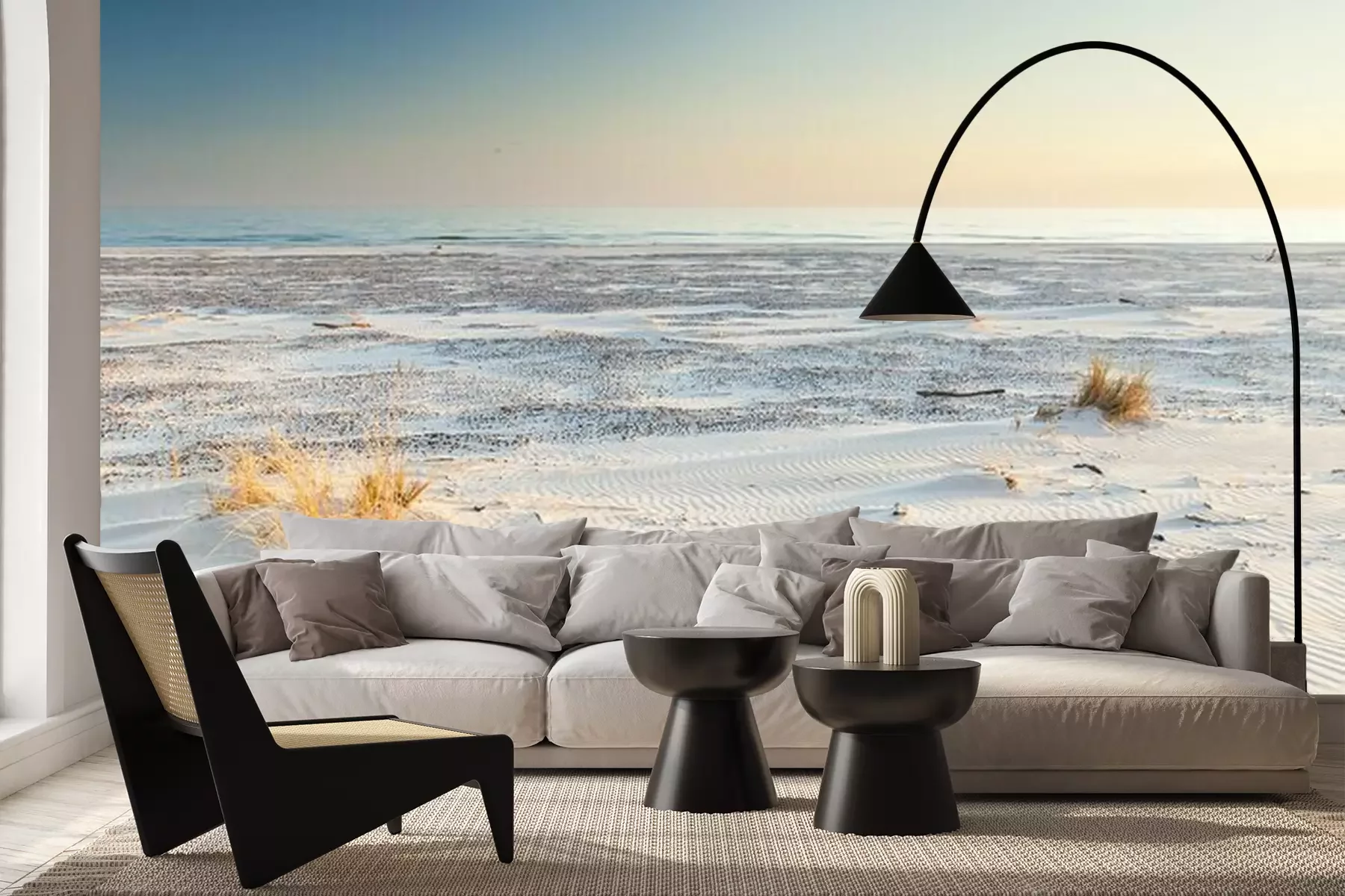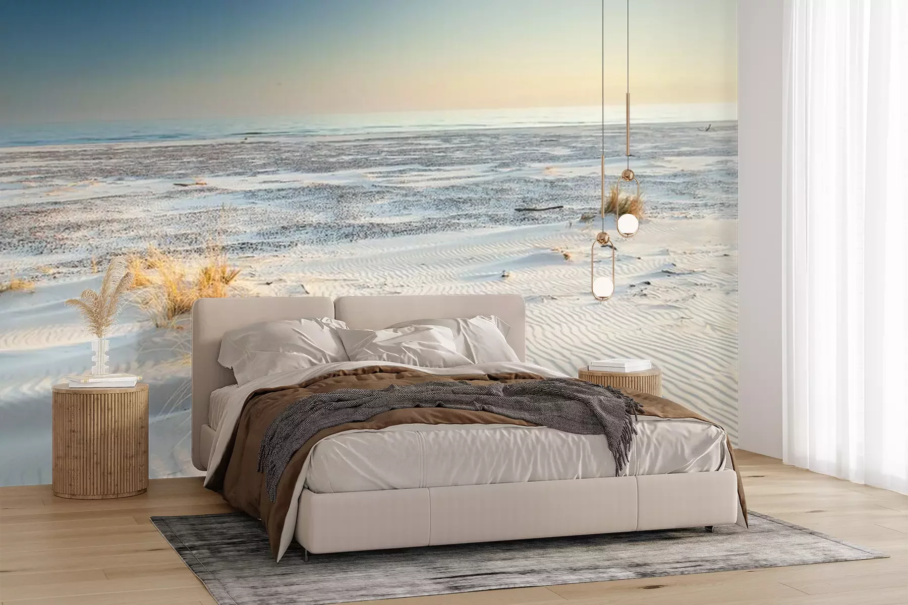 Het materiaal Premium+ is een gestructureerd vinyl op vlies met een gewicht van 255 g/m², dat kleine oneffenheden in de muur effectief camoufleert. De subtiele structuur van fijn zand geeft het oppervlak een exclusieve uitstraling, terwijl de halfmatte afwerking de diepte van de kleuren benadrukt. Het materiaal is dampdoorlatend, waardoor het ook in de keuken en badkamer kan worden gebruikt. De maximale breedte van één baan bedraagt 100 cm – bij grotere afmetingen wordt het fotobehang in meerdere gelijke banen verdeeld. De lijm wordt direct op de muur aangebracht en het behang wordt rand-aan-rand geplakt, wat zorgt voor een esthetisch resultaat zonder zichtbare naden. Het oppervlak kan gemakkelijk worden schoongemaakt door het voorzichtig af te nemen met een vochtige doek.