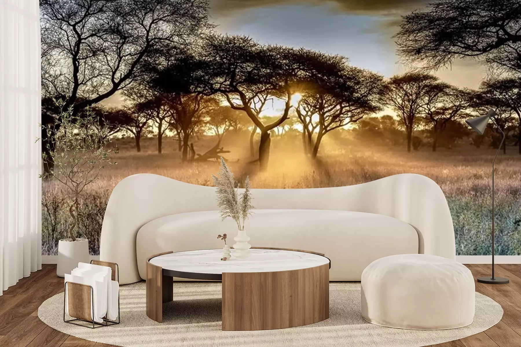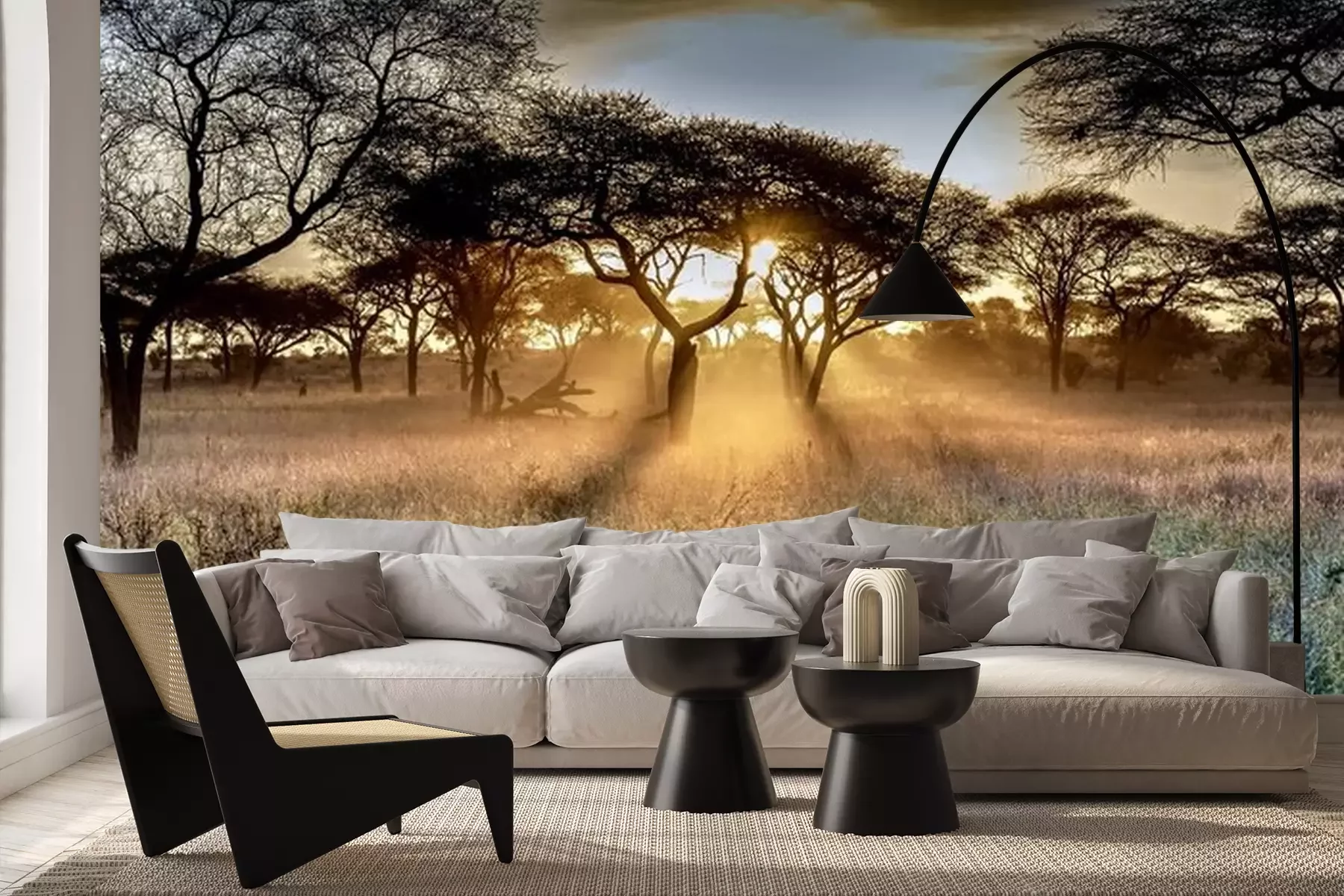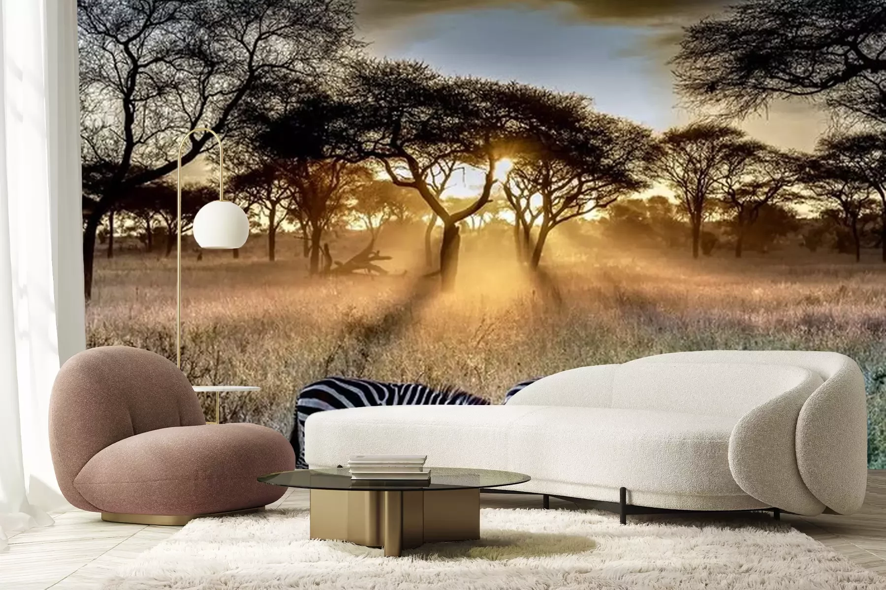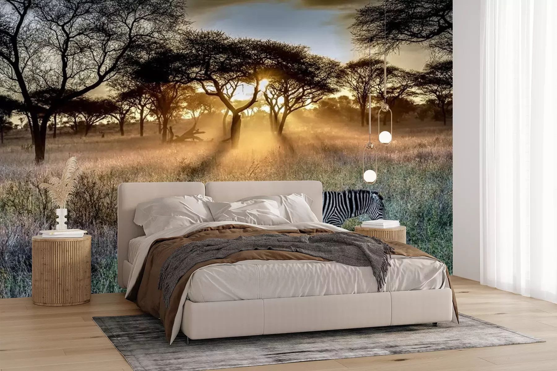 Fotobehang Zebra's op de achtergrond van de ondergaande zon