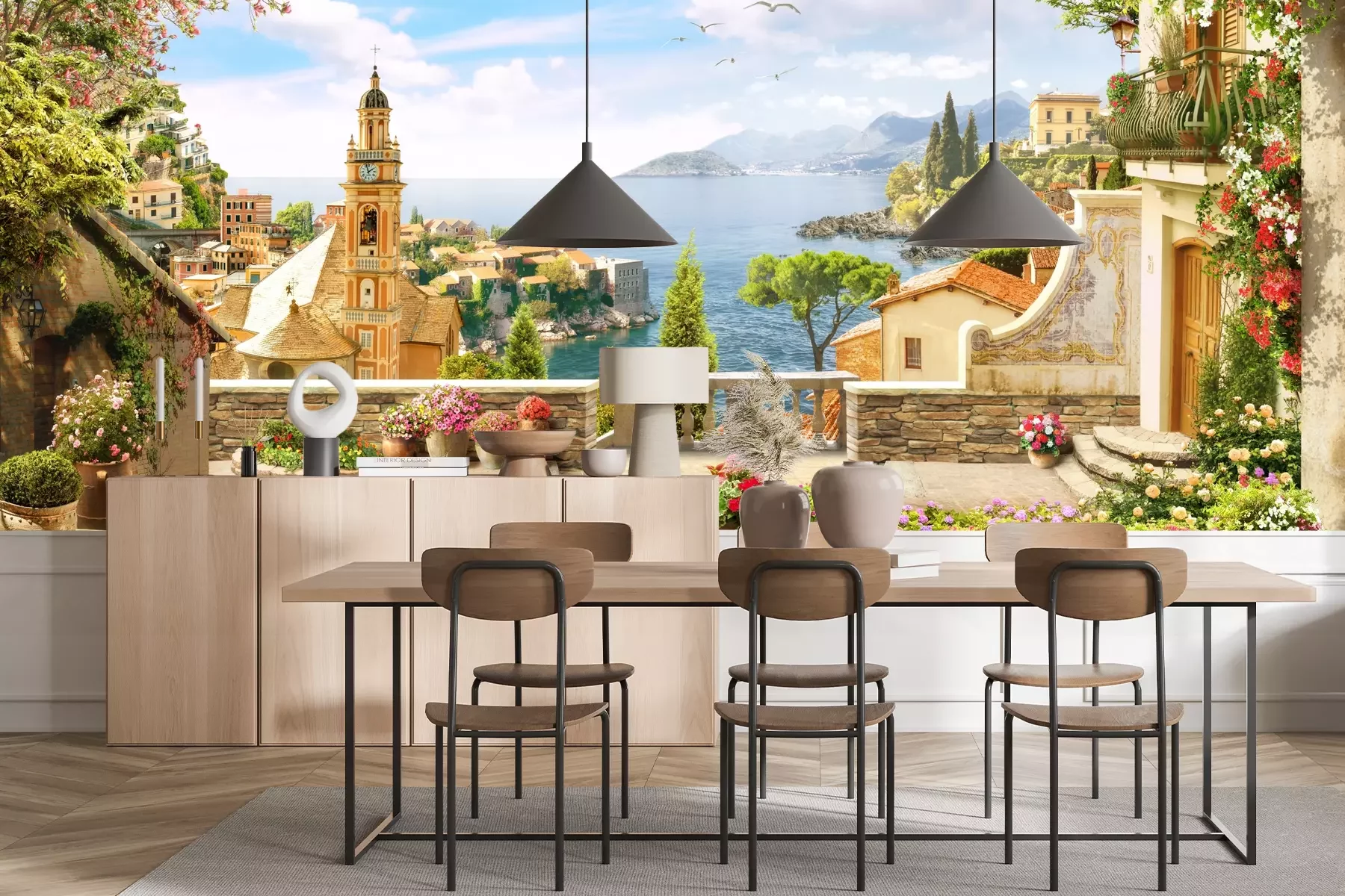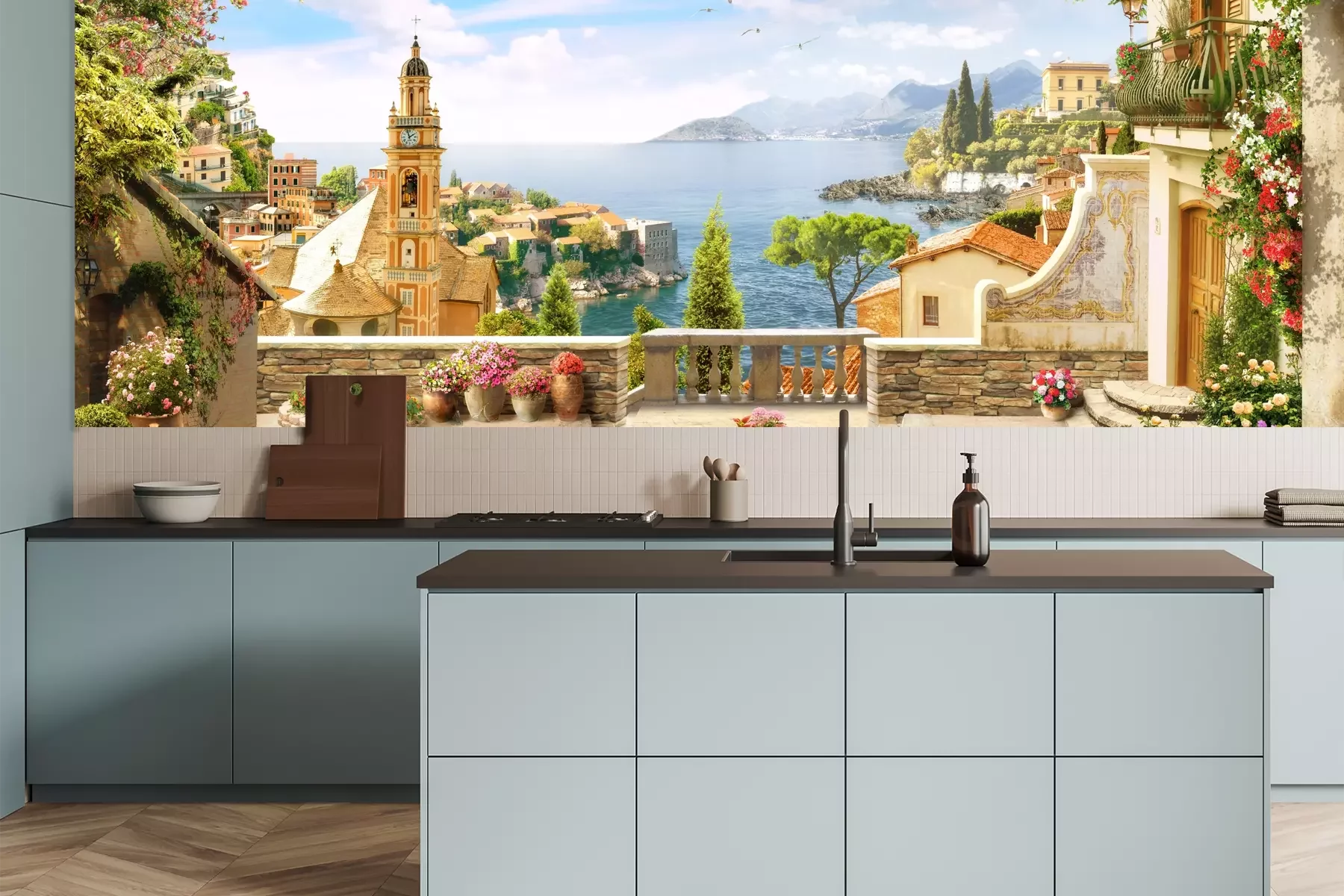 Het materiaal Premium is een glad vinyl op vlies, dat bestand is tegen uitrekken en vervorming. Het is dampdoorlatend – de muren kunnen vrij ademen – waardoor het geschikt is voor gebruik in de keuken en badkamer. Bij vervuiling kan het materiaal worden afgenomen met een vochtige doek. De maximale breedte van één baan bedraagt 95 of 105 cm, afhankelijk van de beschikbaarheid. Montage vindt plaats met de rand-aan-rand methode, wat een esthetisch resultaat zonder zichtbare naden oplevert. Omdat de lijm rechtstreeks op de muur wordt aangebracht, verloopt de installatie van het fotobehang snel en eenvoudig.