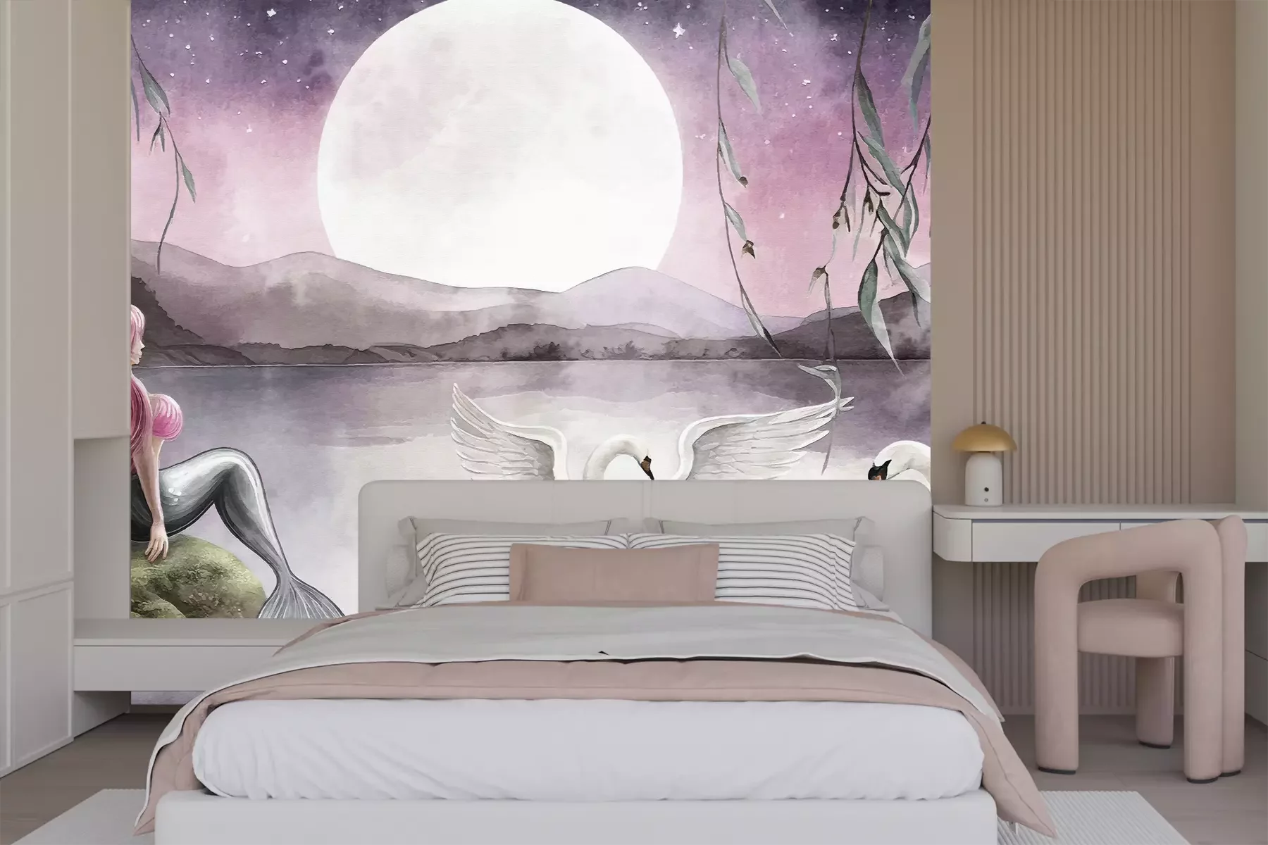 Het materiaal Premium+ is een gestructureerd vinyl op vlies met een gewicht van 255 g/m², dat kleine oneffenheden in de muur effectief camoufleert. De subtiele structuur van fijn zand geeft het oppervlak een exclusieve uitstraling, terwijl de halfmatte afwerking de diepte van de kleuren benadrukt. Het materiaal is dampdoorlatend, waardoor het ook in de keuken en badkamer kan worden gebruikt. De maximale breedte van één baan bedraagt 100 cm – bij grotere afmetingen wordt het fotobehang in meerdere gelijke banen verdeeld. De lijm wordt direct op de muur aangebracht en het behang wordt rand-aan-rand geplakt, wat zorgt voor een esthetisch resultaat zonder zichtbare naden. Het oppervlak kan gemakkelijk worden schoongemaakt door het voorzichtig af te nemen met een vochtige doek.