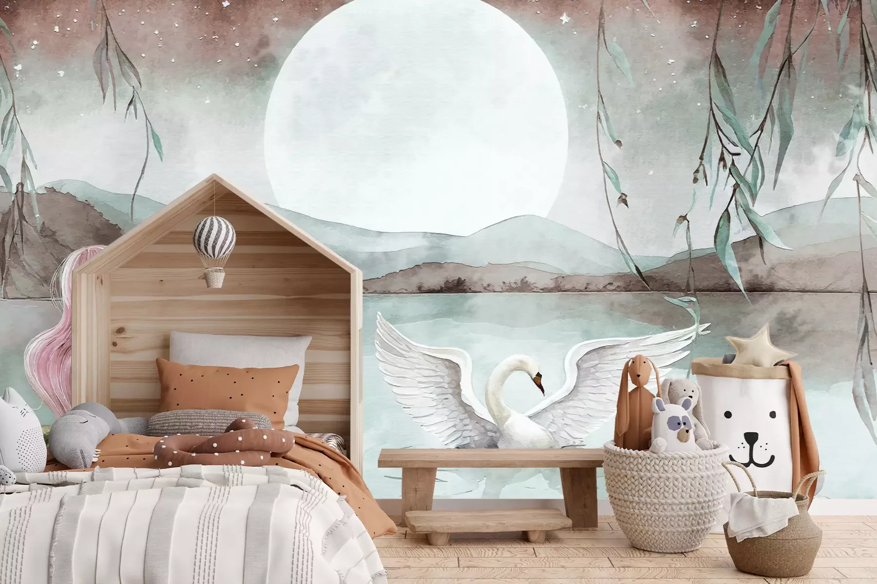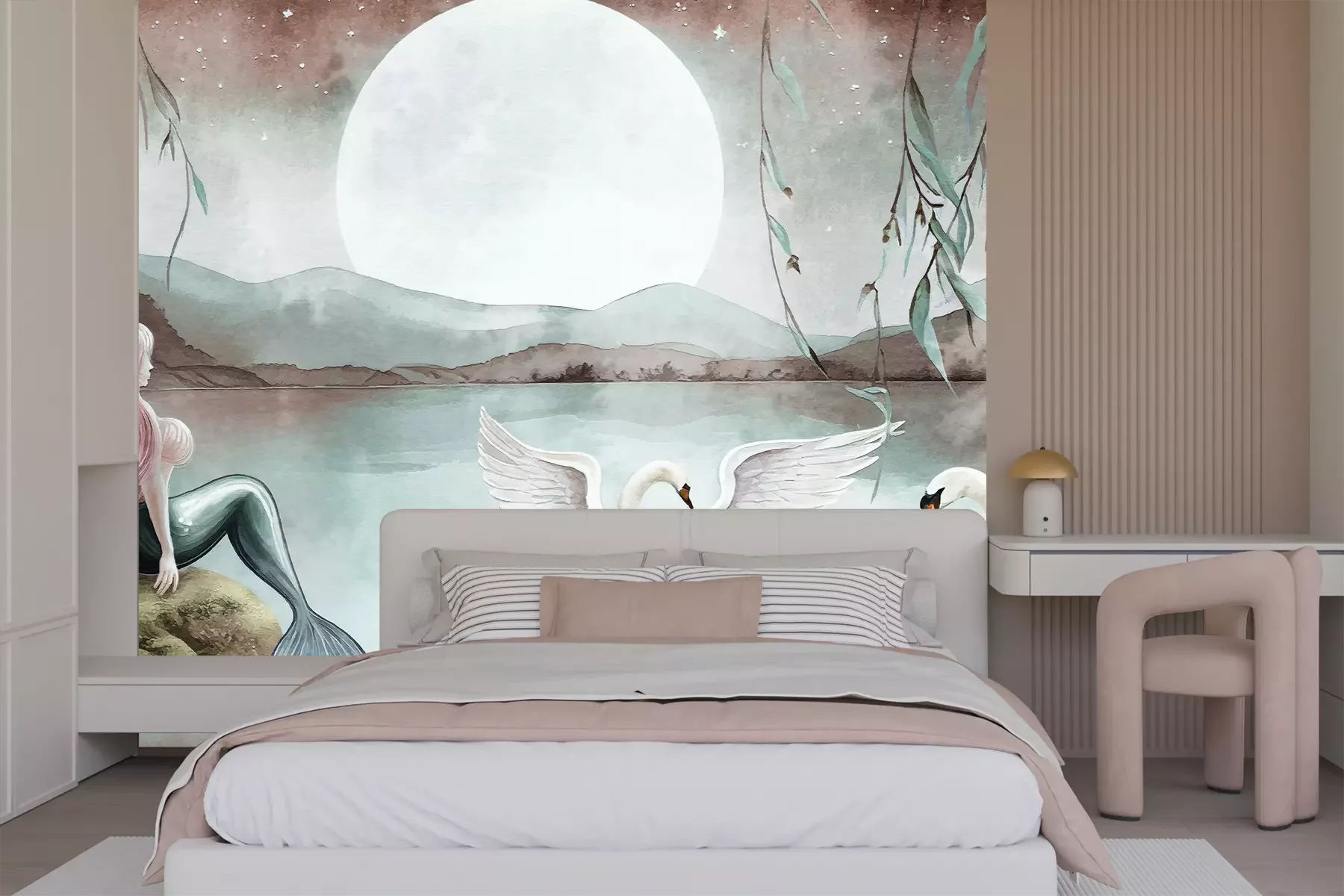 Het materiaal Premium+ is een gestructureerd vinyl op vlies met een gewicht van 255 g/m², dat kleine oneffenheden in de muur effectief camoufleert. De subtiele structuur van fijn zand geeft het oppervlak een exclusieve uitstraling, terwijl de halfmatte afwerking de diepte van de kleuren benadrukt. Het materiaal is dampdoorlatend, waardoor het ook in de keuken en badkamer kan worden gebruikt. De maximale breedte van één baan bedraagt 100 cm – bij grotere afmetingen wordt het fotobehang in meerdere gelijke banen verdeeld. De lijm wordt direct op de muur aangebracht en het behang wordt rand-aan-rand geplakt, wat zorgt voor een esthetisch resultaat zonder zichtbare naden. Het oppervlak kan gemakkelijk worden schoongemaakt door het voorzichtig af te nemen met een vochtige doek.