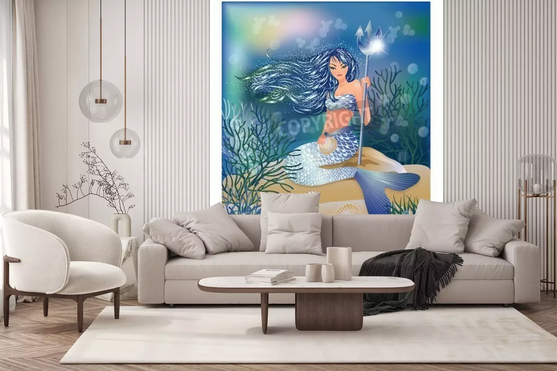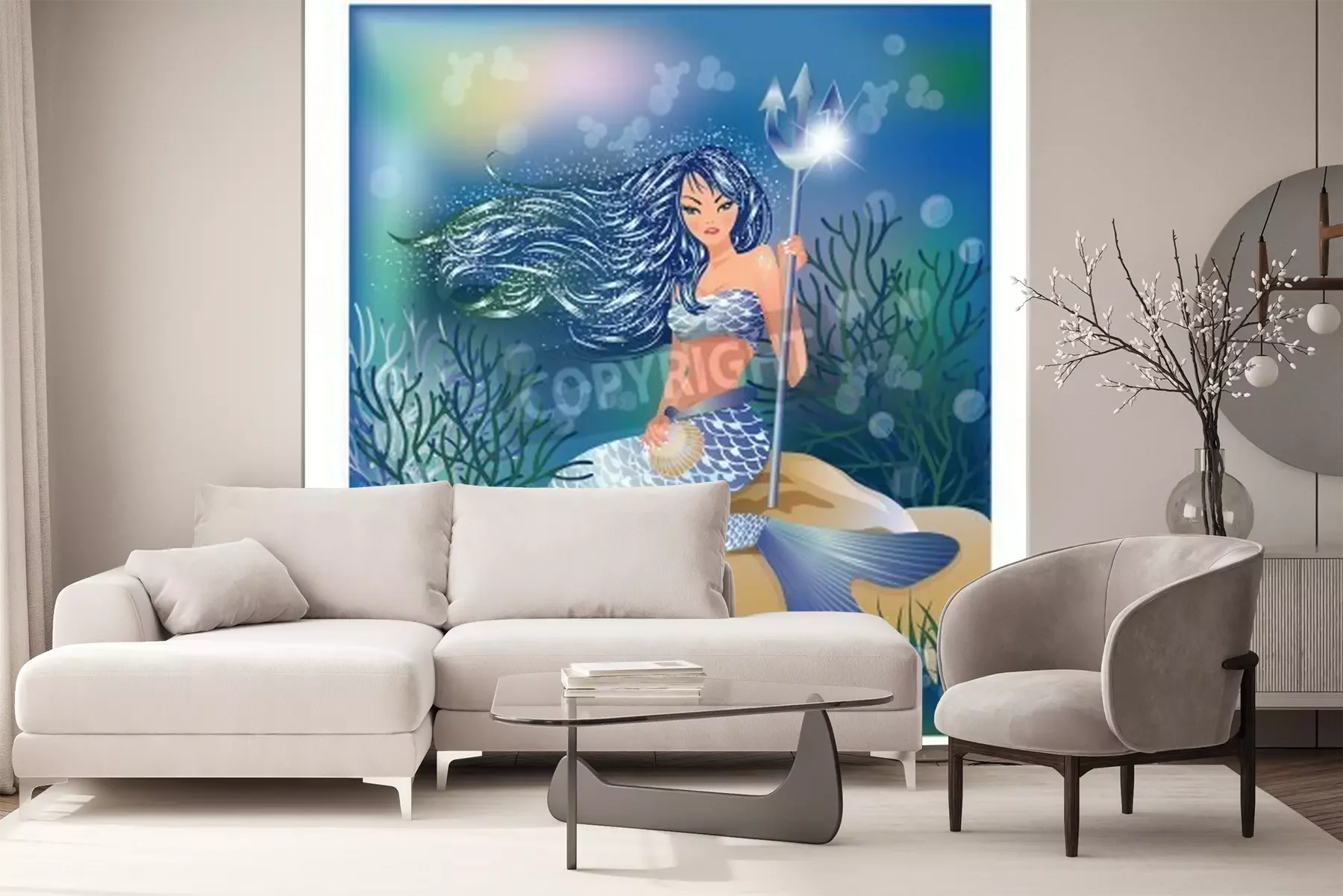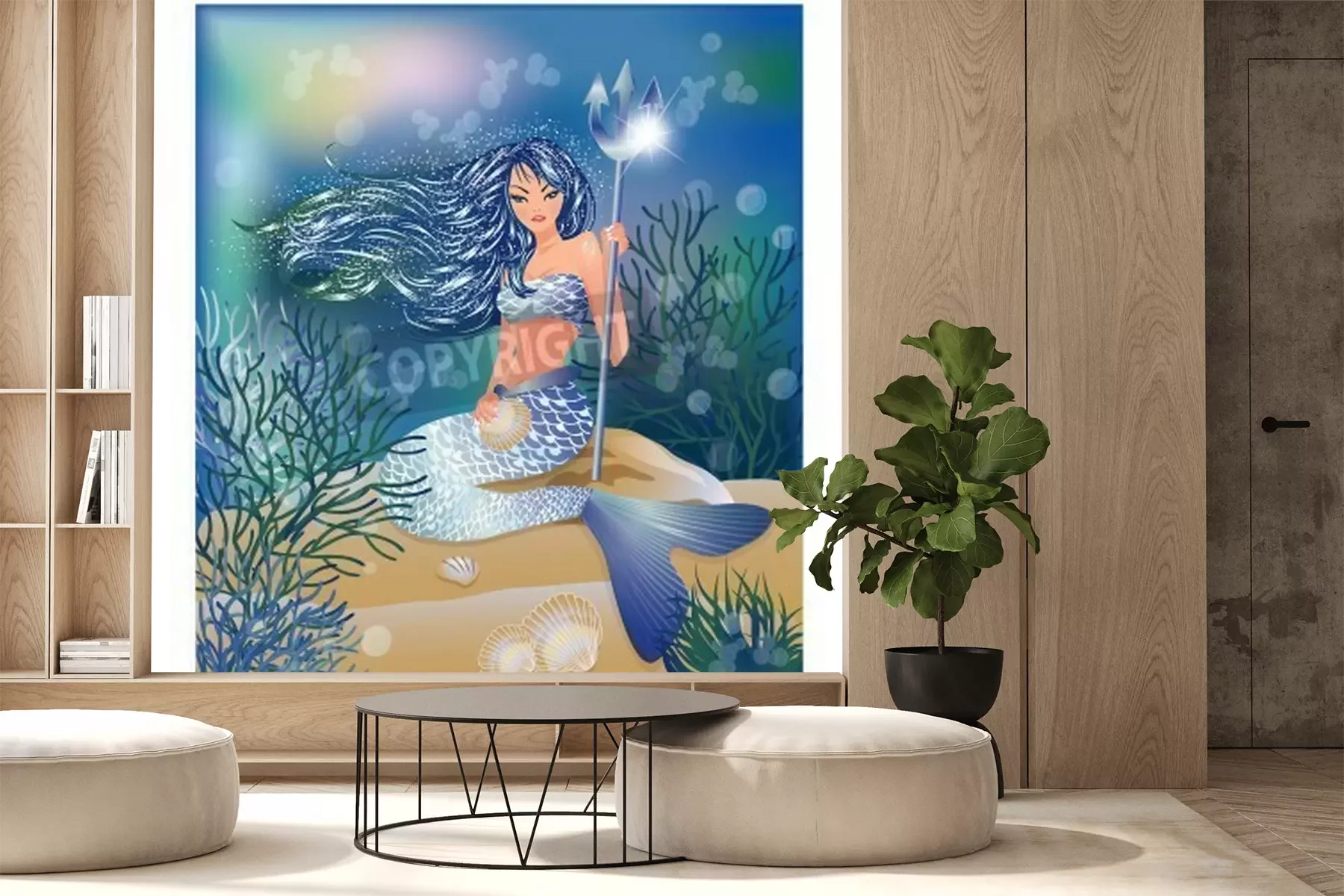 Fotobehang Zeemeermin met een drietand