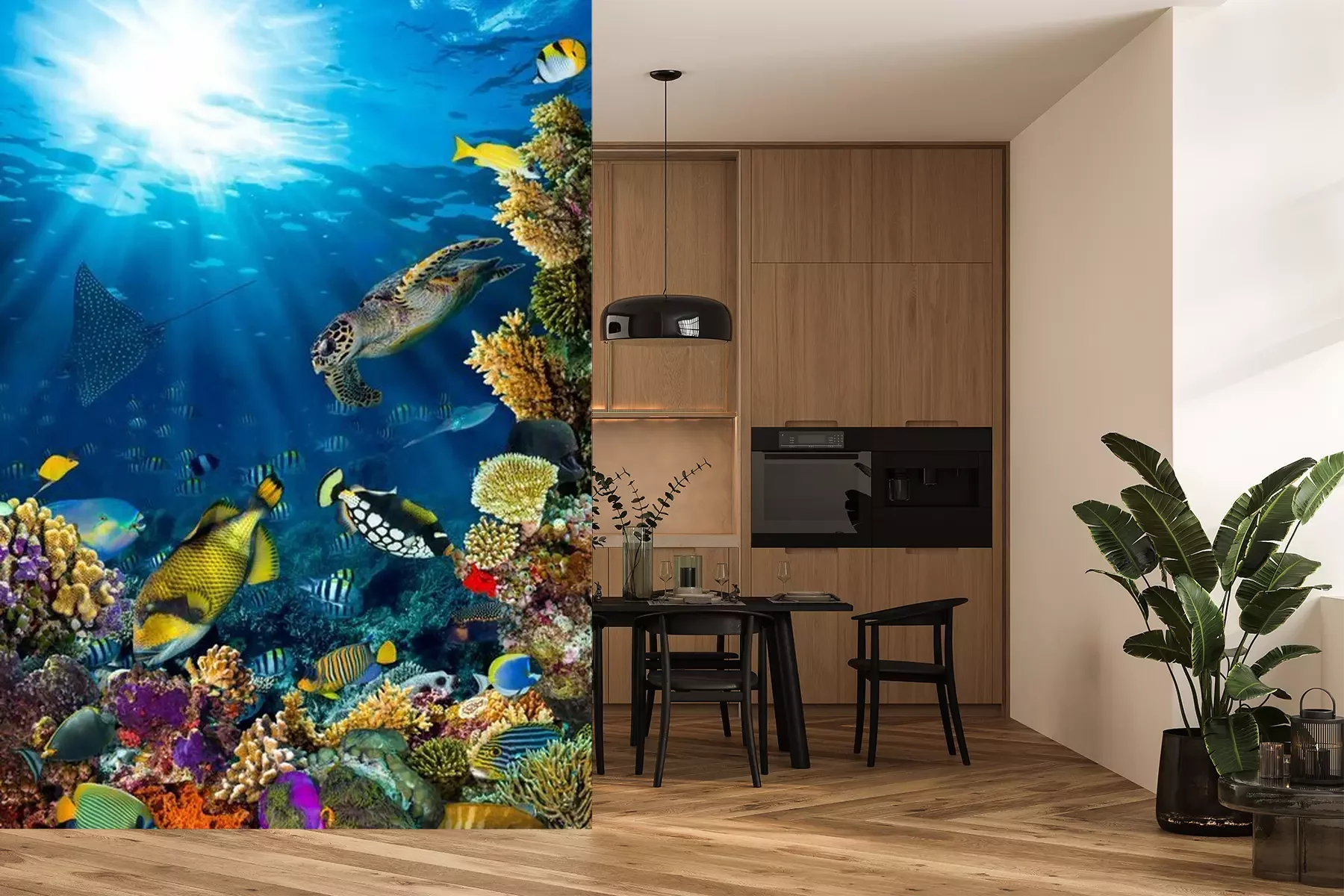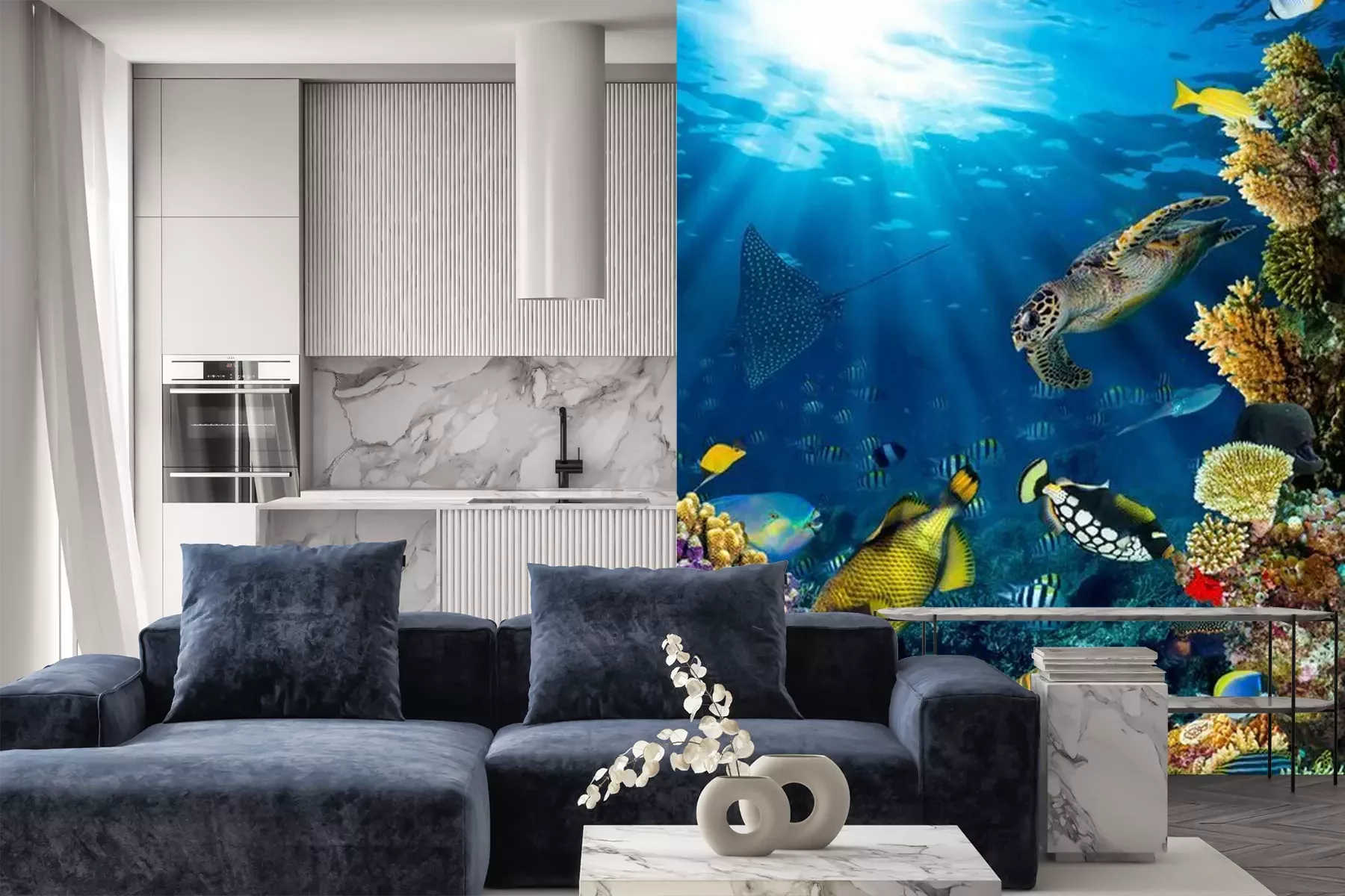 Panorama van koraalrif in de oceaanProbleemloze bezorging verzorgd door vertrouwde vervoerders