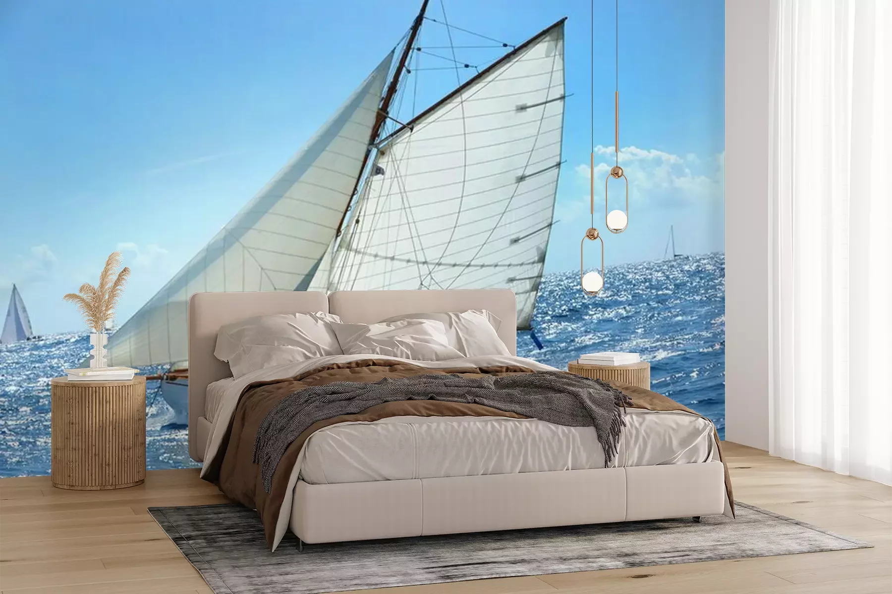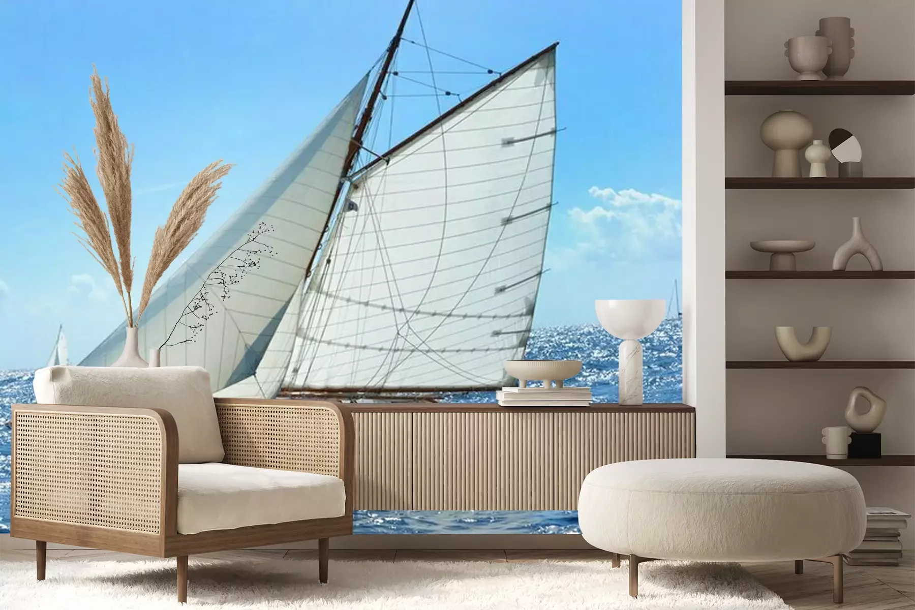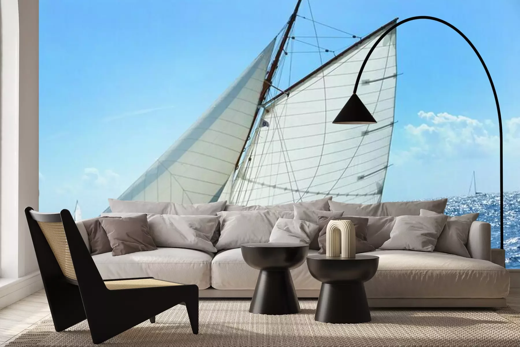 Een zeilboot die op het water manoeuvreert.Probleemloze bezorging verzorgd door vertrouwde vervoerders